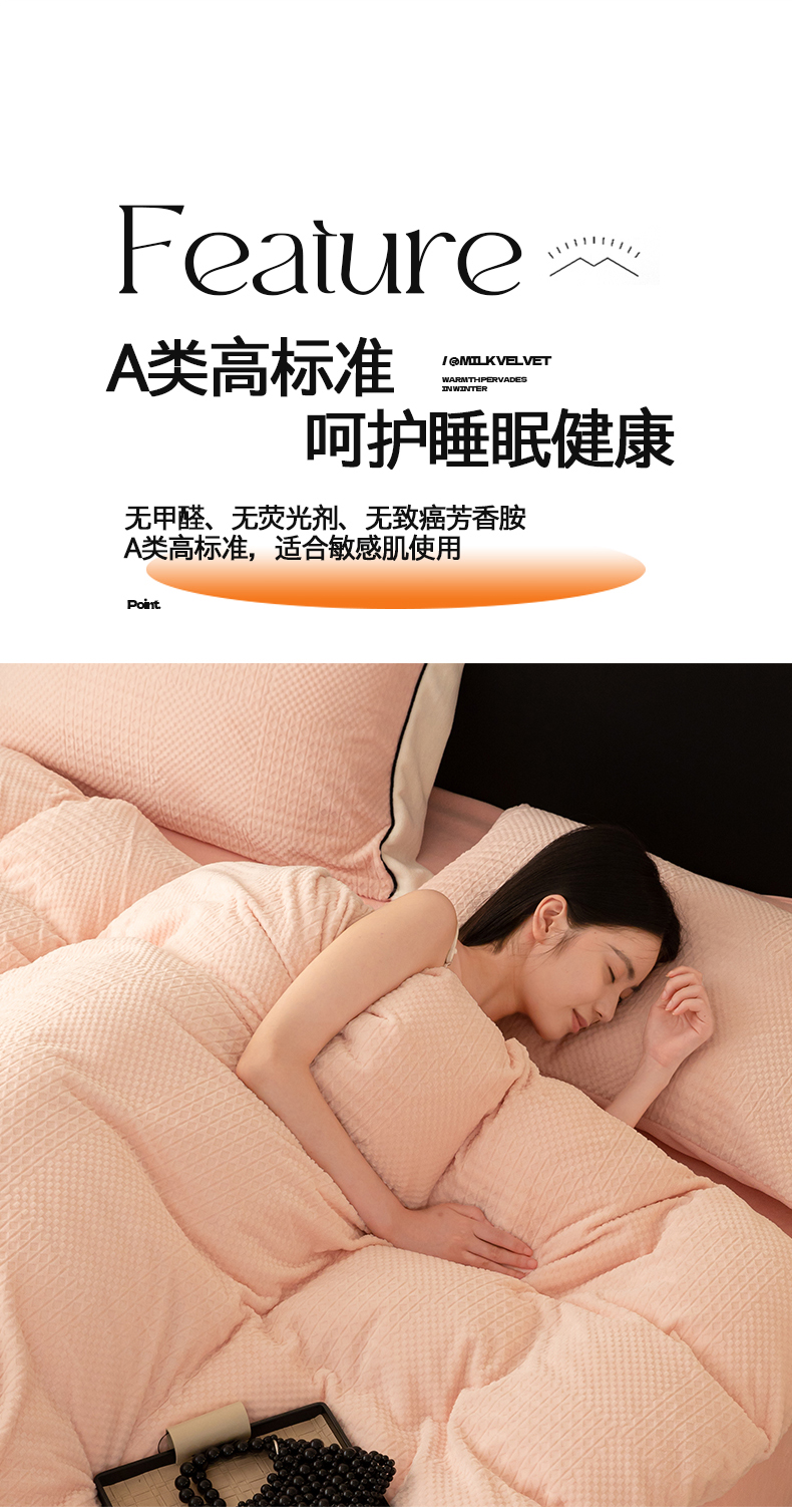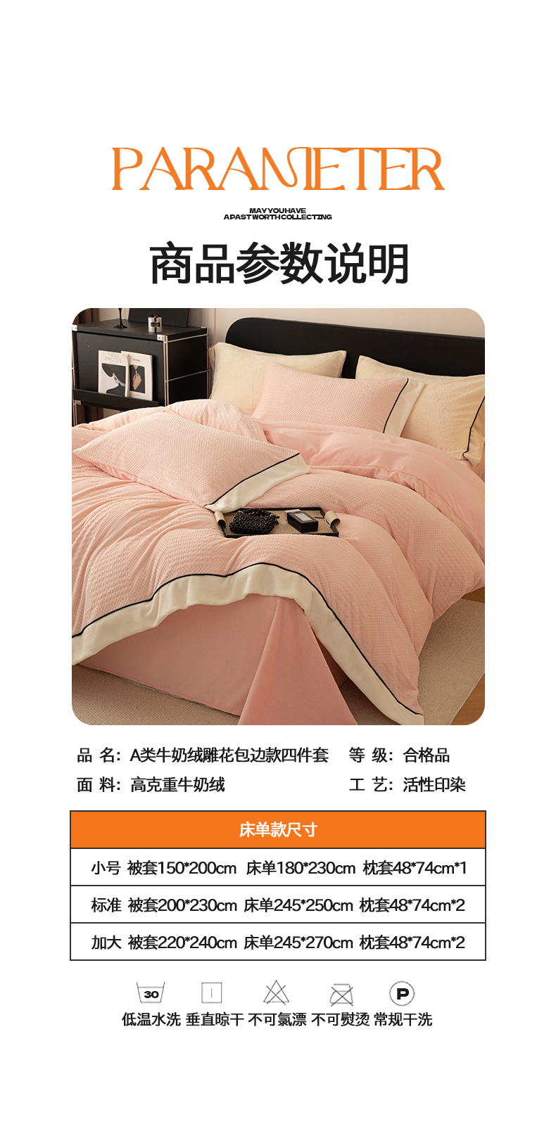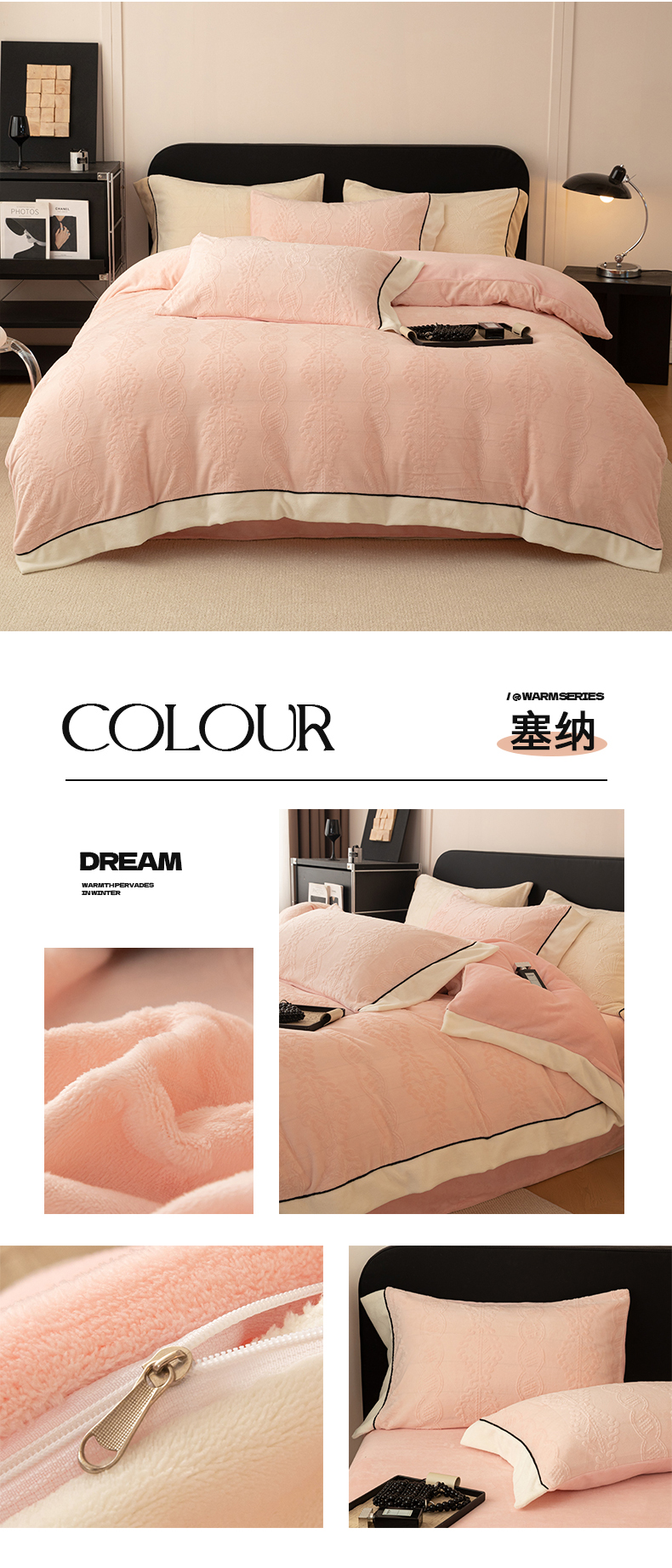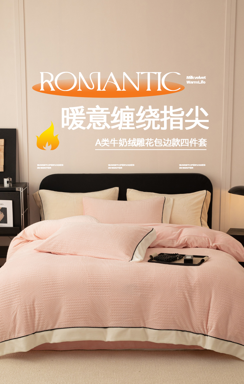 (总)懒猫家纺 2025新款亲肤舒适牛奶绒四件套-可可小姐系列,可可小姐-瓷白,可可小姐-水粉