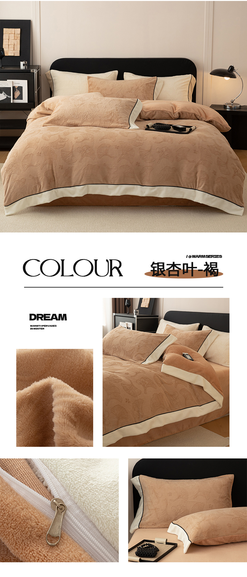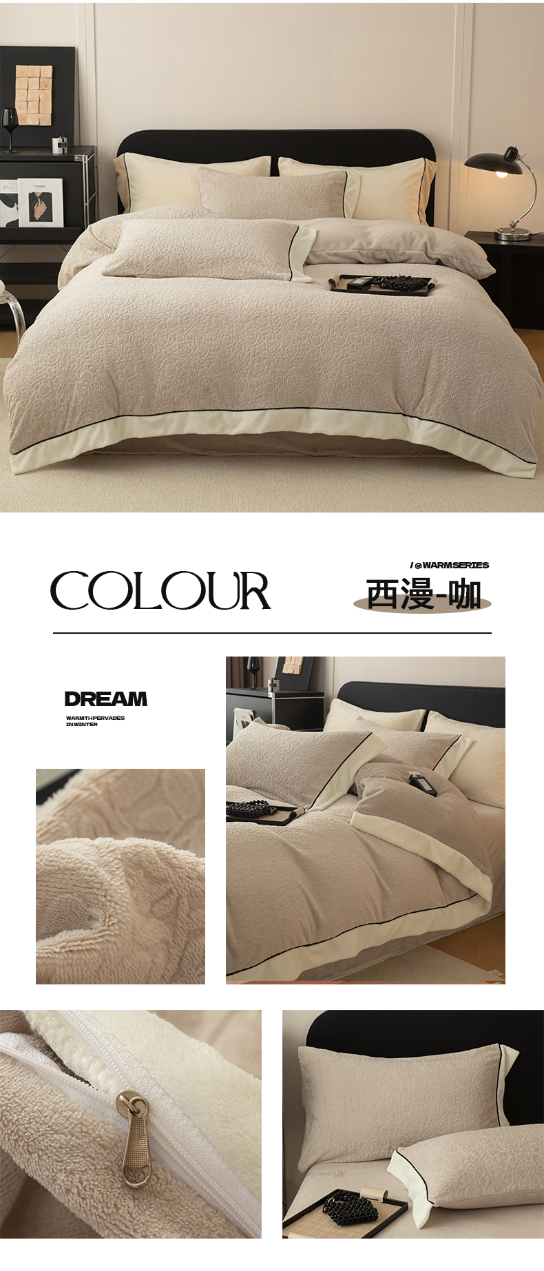 商品名称:懒猫家纺 2025新款纯色雕花牛奶绒四件套 西漫-咖