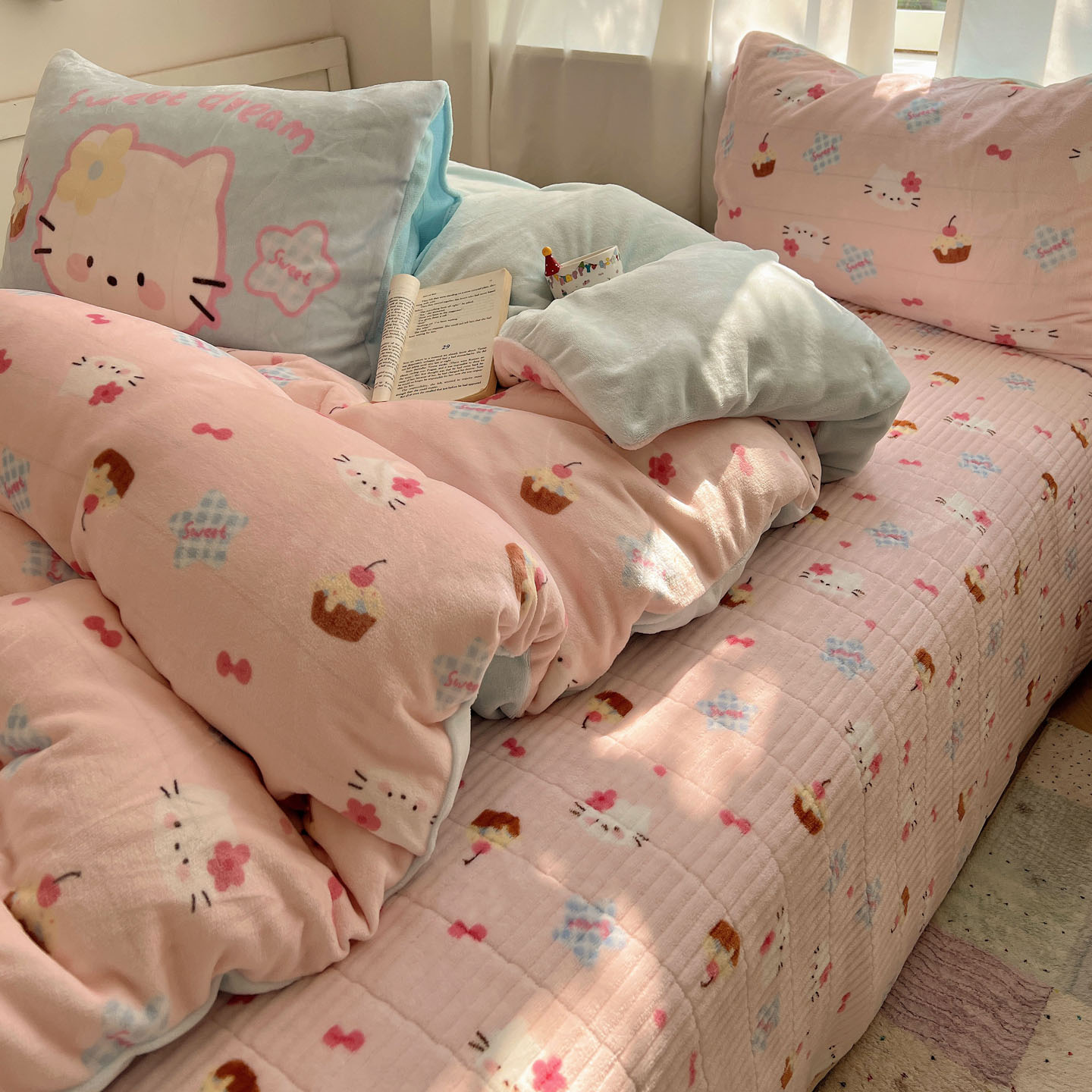 (总)桃喜 2026新款全棉混搭卡通印花学生三件套四件套,费尔岛蝴蝶结小狗,费尔岛小熊,可爱动物团,可爱小兔子,星星猫咪