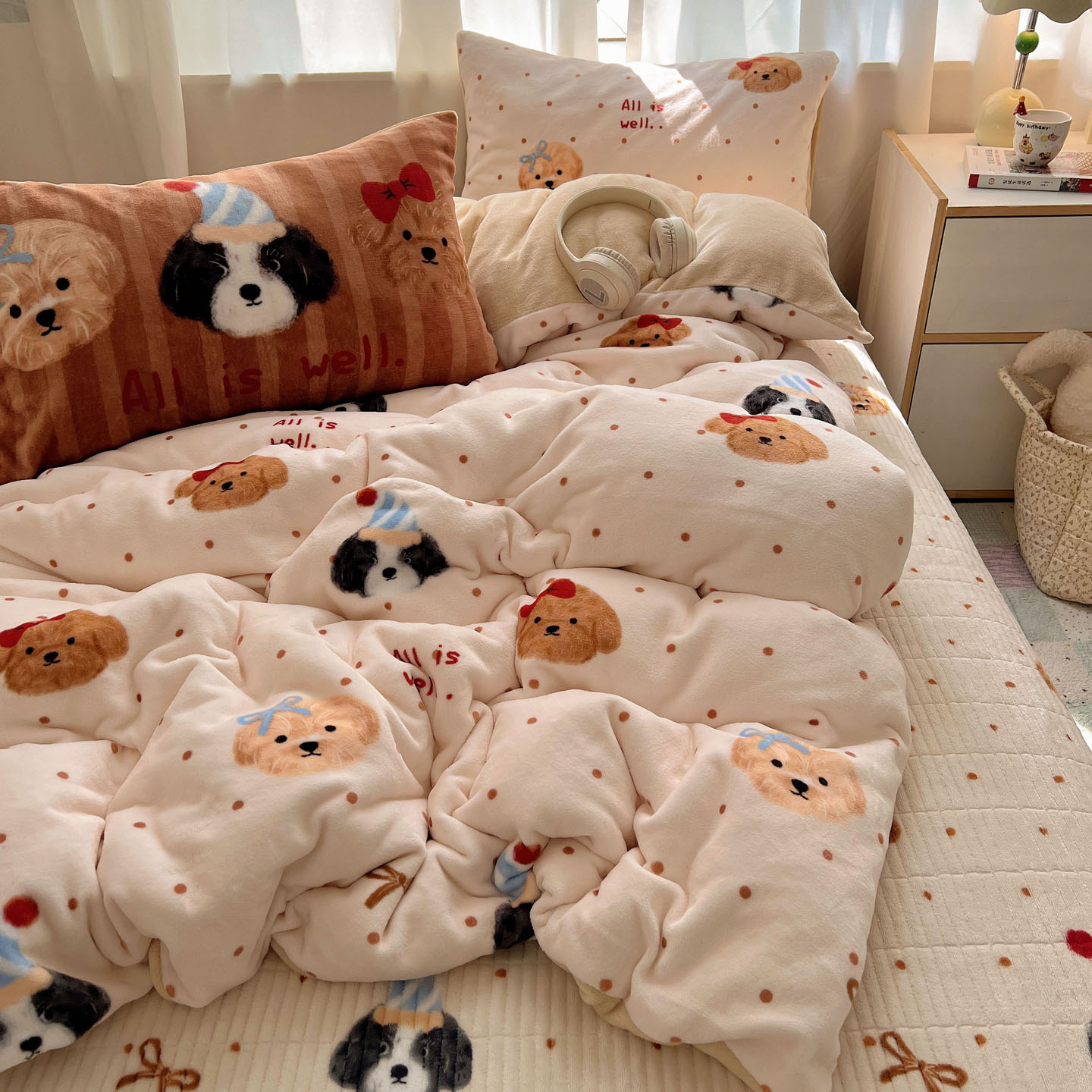 (总)桃喜 2024新款13372学生季全棉宿舍三件套,比熊小狗,波点动物园,波点西高地,狗狗家族,蝴蝶结小兔,蓝色小狗,喵星人,茉莉兔,潘多拉,晚安宝贝,小熊派对