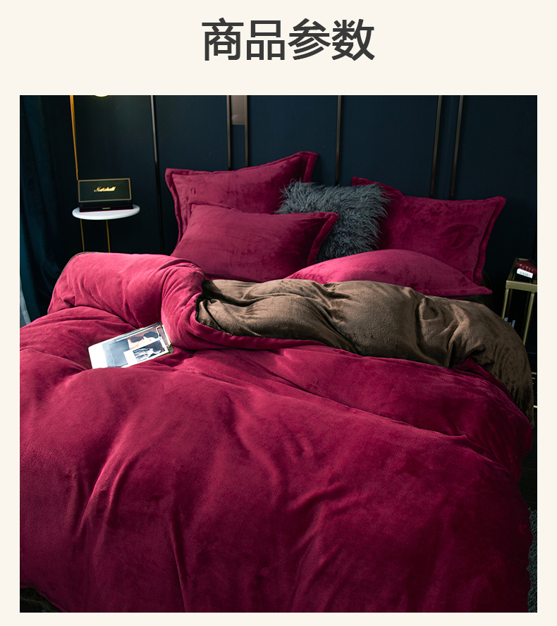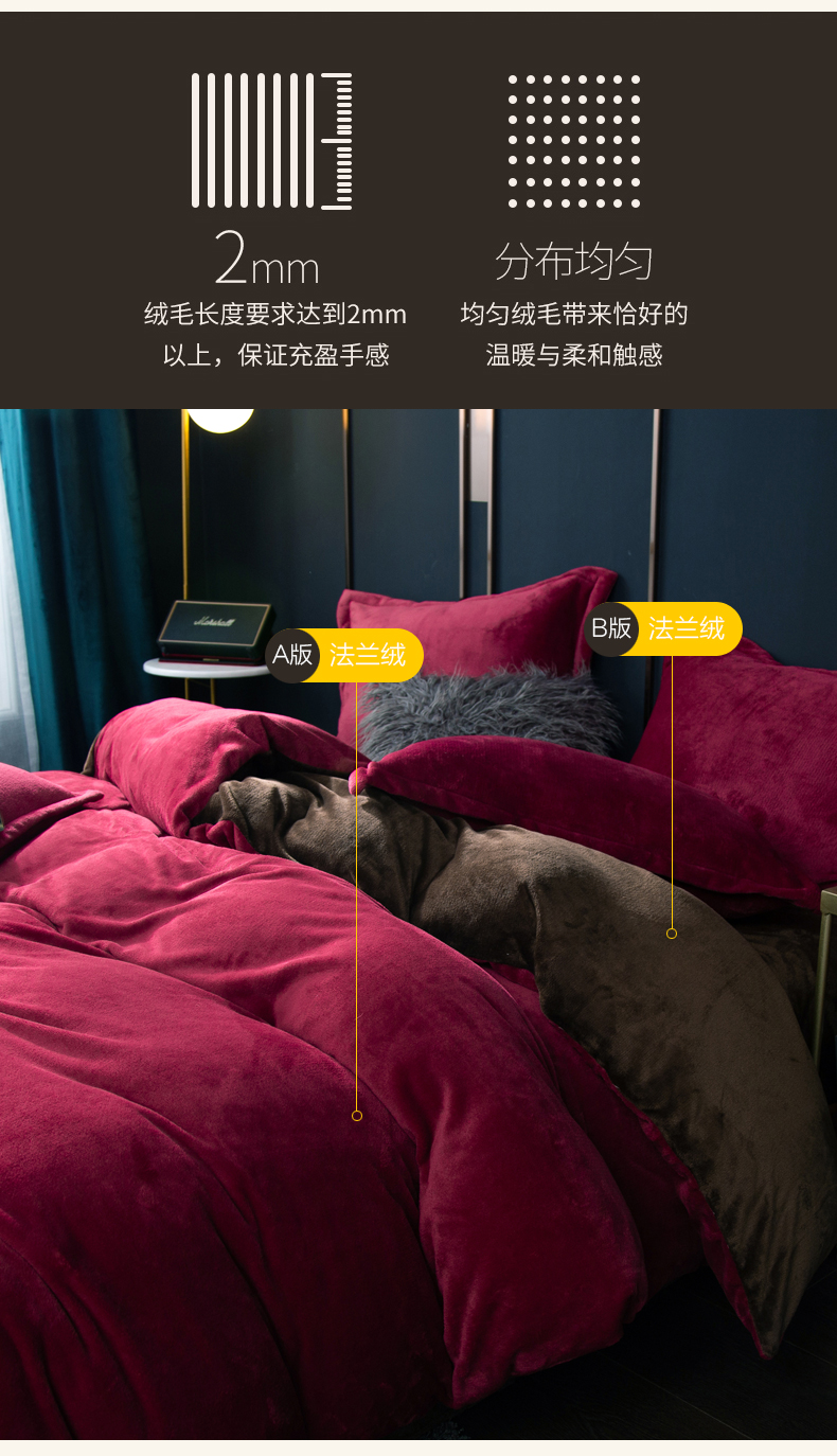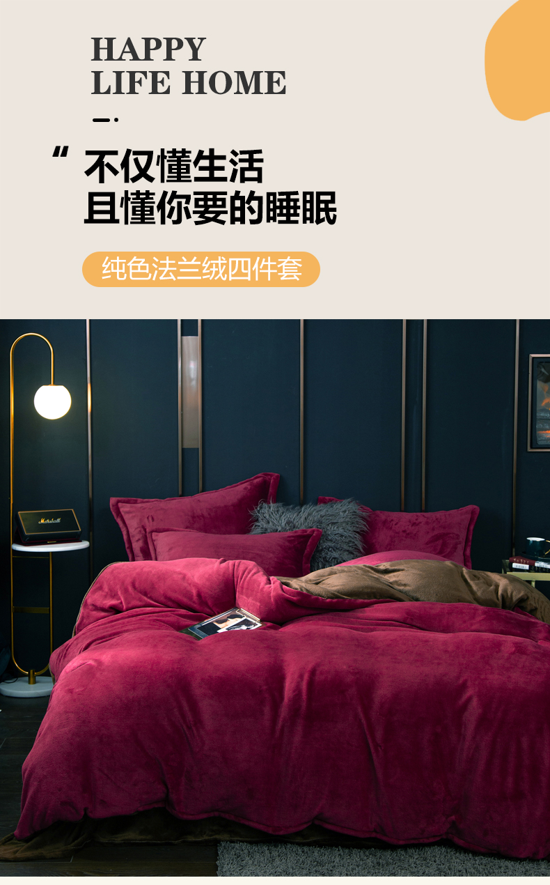 当前位置: 91家纺网 > 商品网购 > 床品套件 > 四件套 > 牛奶绒四件套 > 兰紫橙家纺 2025新款双面绒纯色双拼牛奶绒四件套 酒红+咖啡