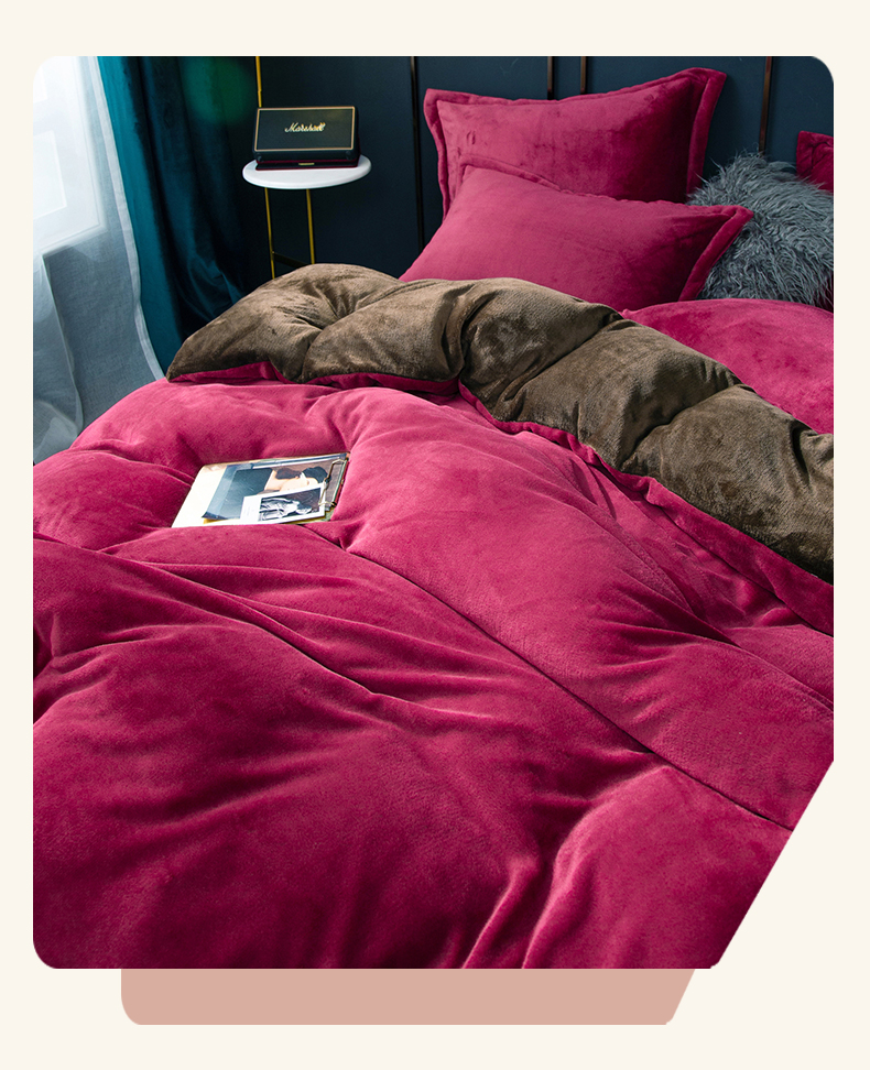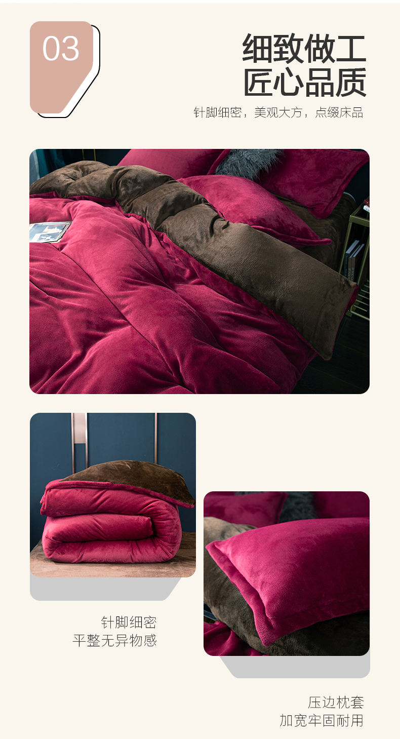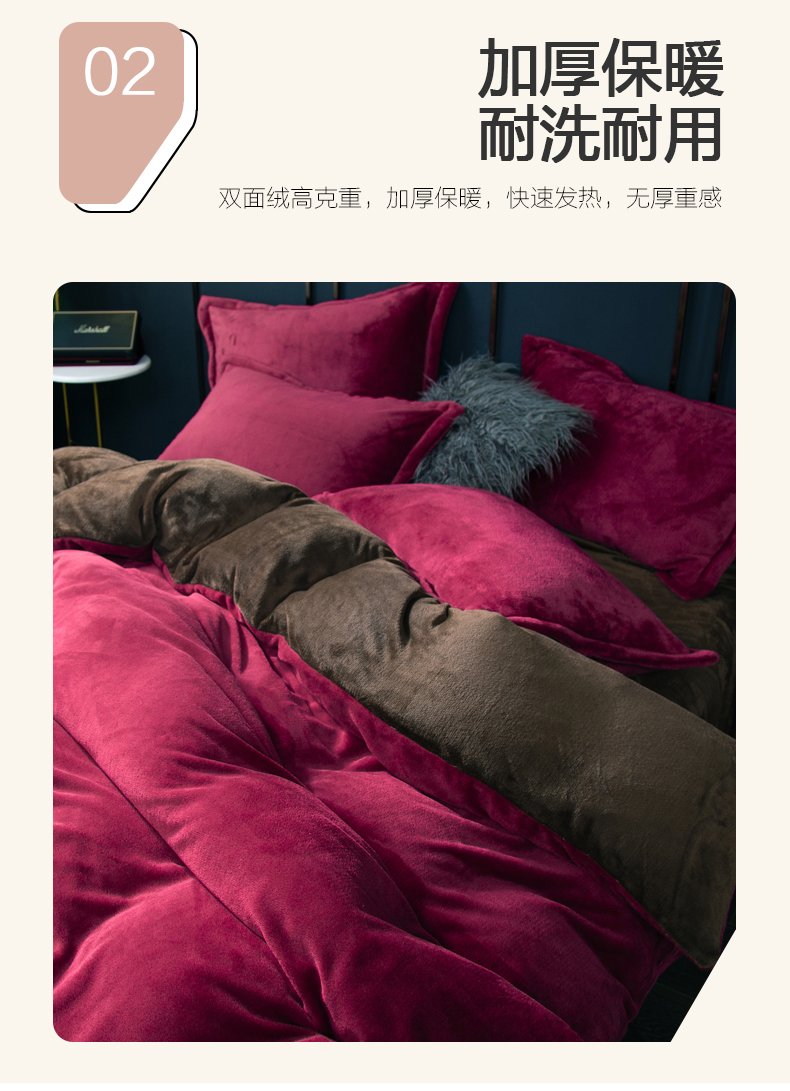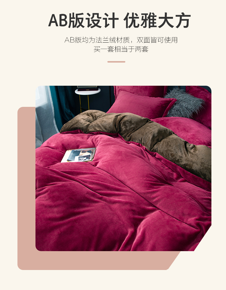 当前位置: 91家纺网 > 商品网购 > 床品套件 > 四件套 > 牛奶绒四件套 > 兰紫橙家纺 2025新款双面绒纯色双拼牛奶绒四件套 酒红+咖啡