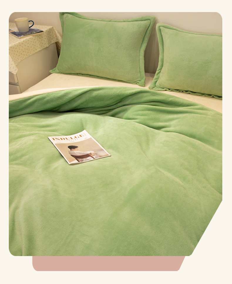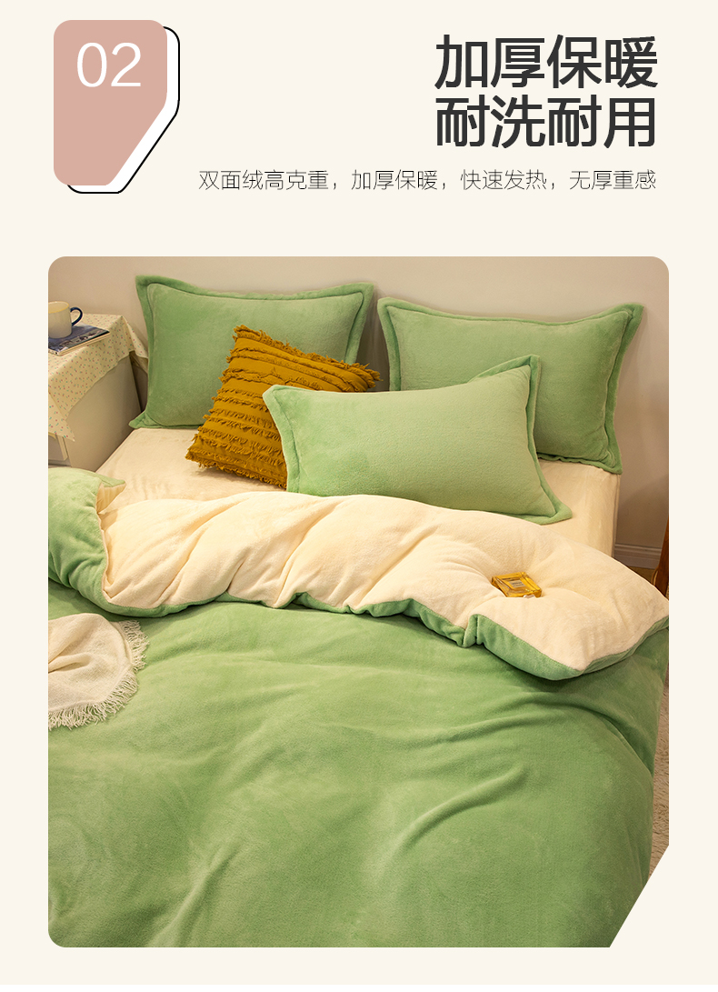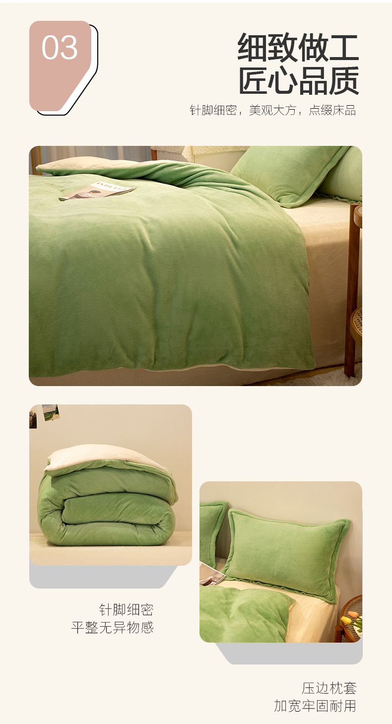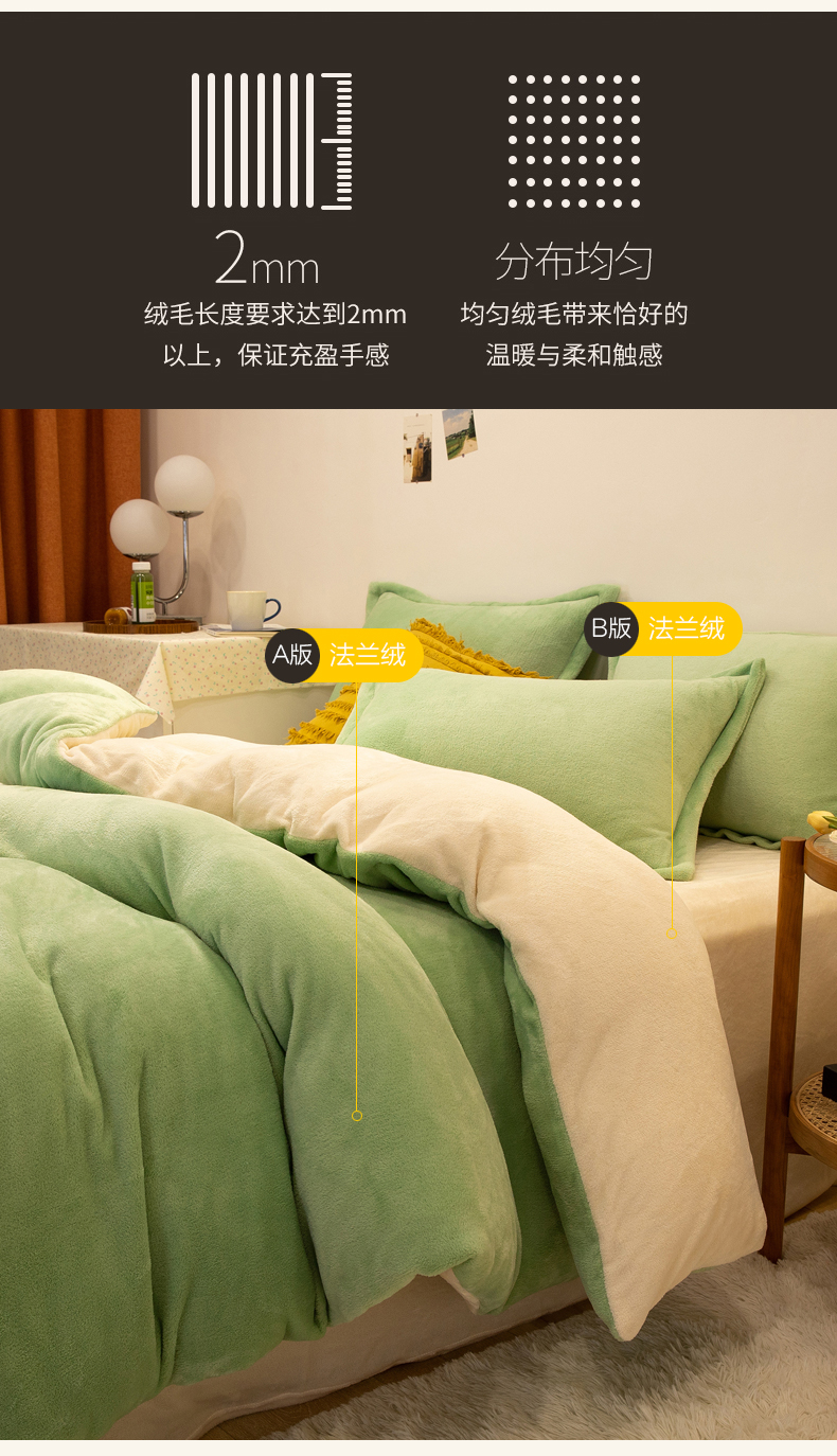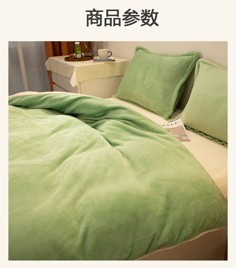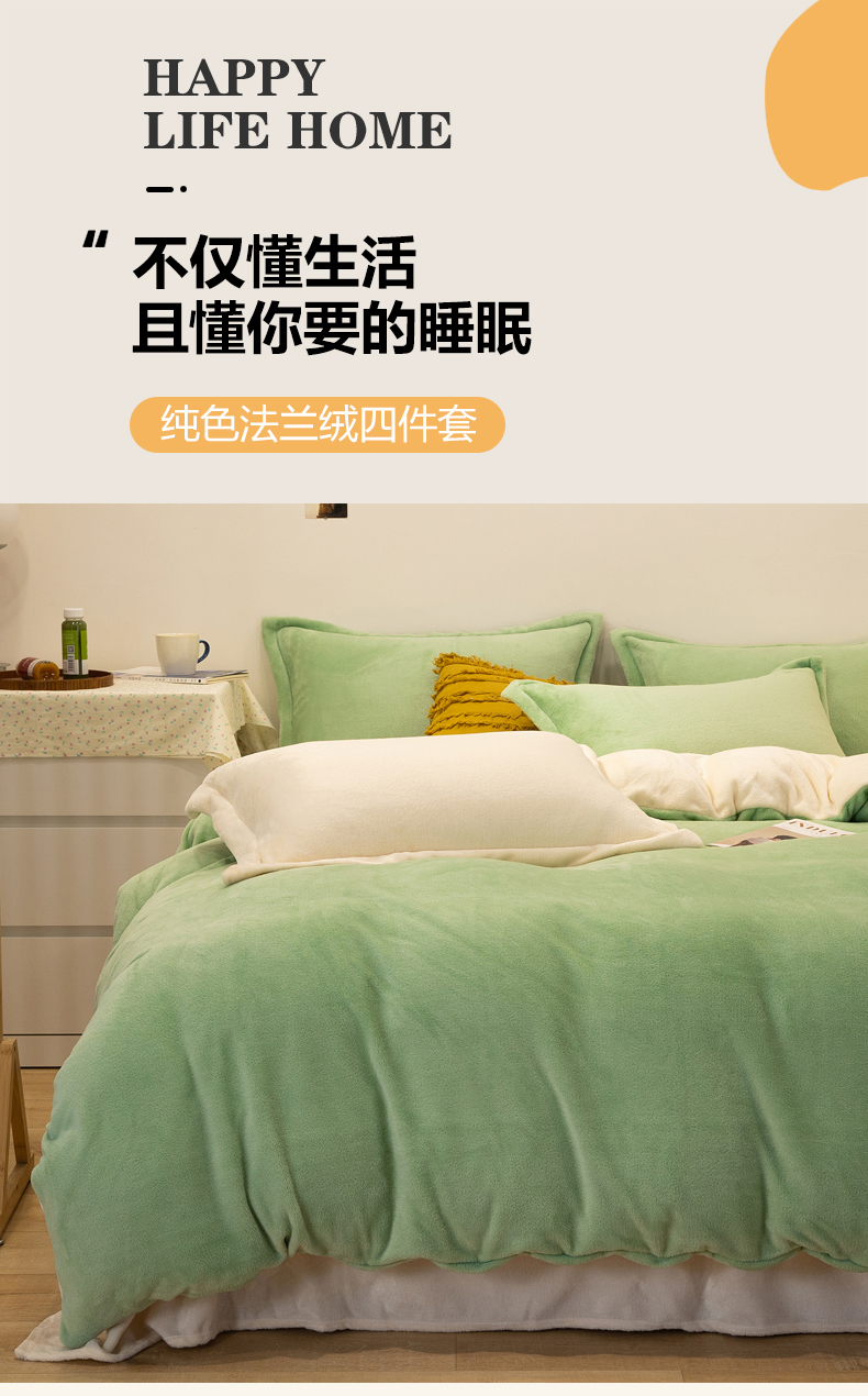 当前位置: 91家纺网 > 商品网购 > 床品套件 > 四件套 > 牛奶绒四件套 > 兰紫橙家纺 2025新款双面绒纯色双拼牛奶绒四件套 浅绿+米白