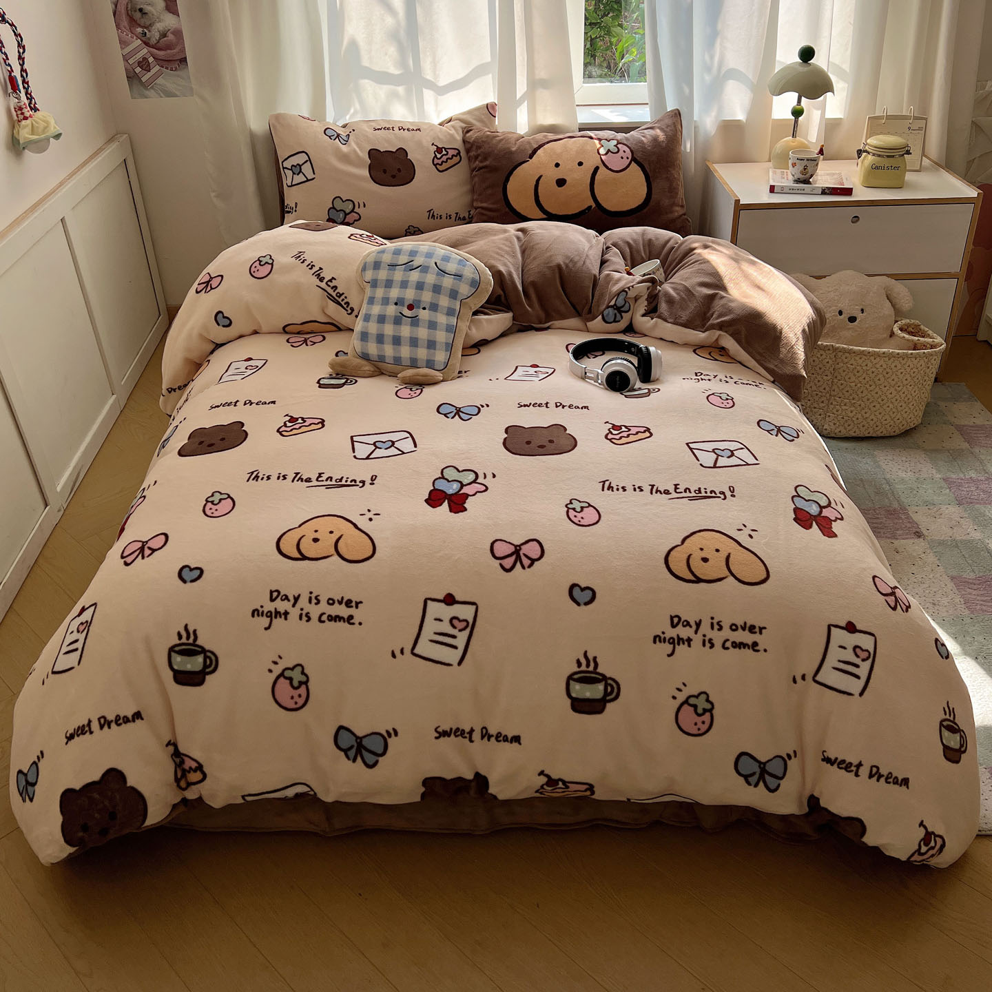 商品名称:桃喜 2025新款A类200g牛奶绒(含导电丝)印花床单款四件套 幸运狗狗