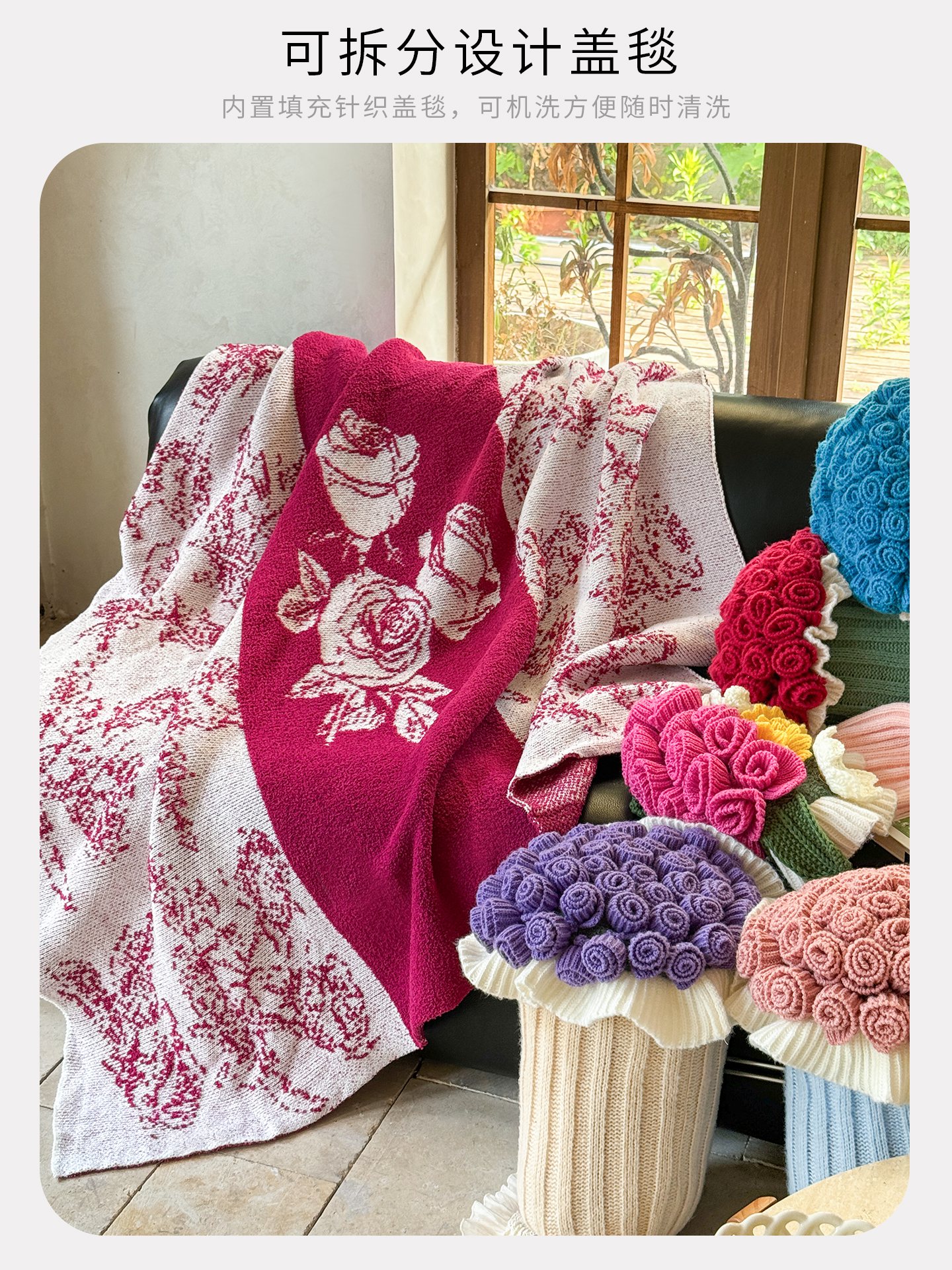 商品名称:梵克保罗 2025新款网红直播热款多功能玫瑰花束抱枕卧室沙发靠枕半边绒针织礼品毯毛毯 星穹粉