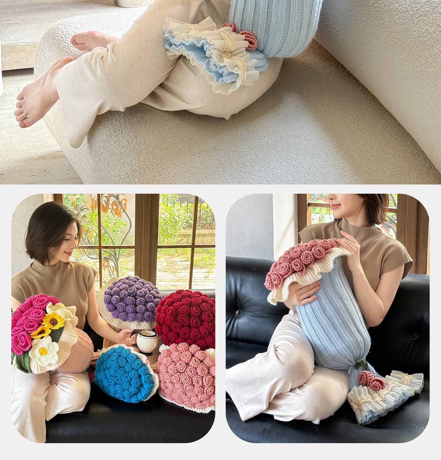 梵克保罗 2025新款网红直播热款多功能玫瑰花束抱枕卧室沙发靠枕半边绒针织礼品毯毛毯 星穹粉