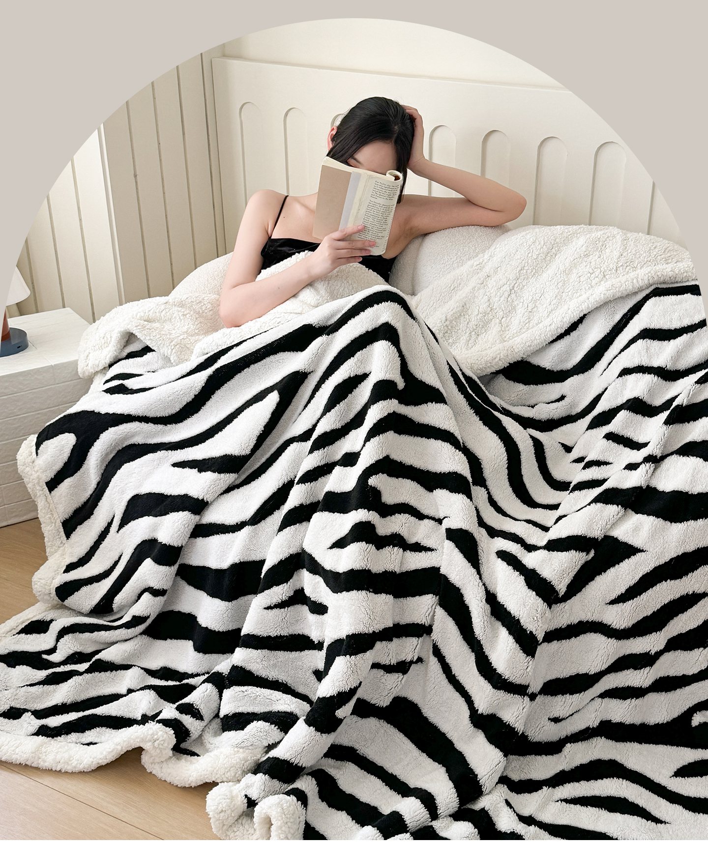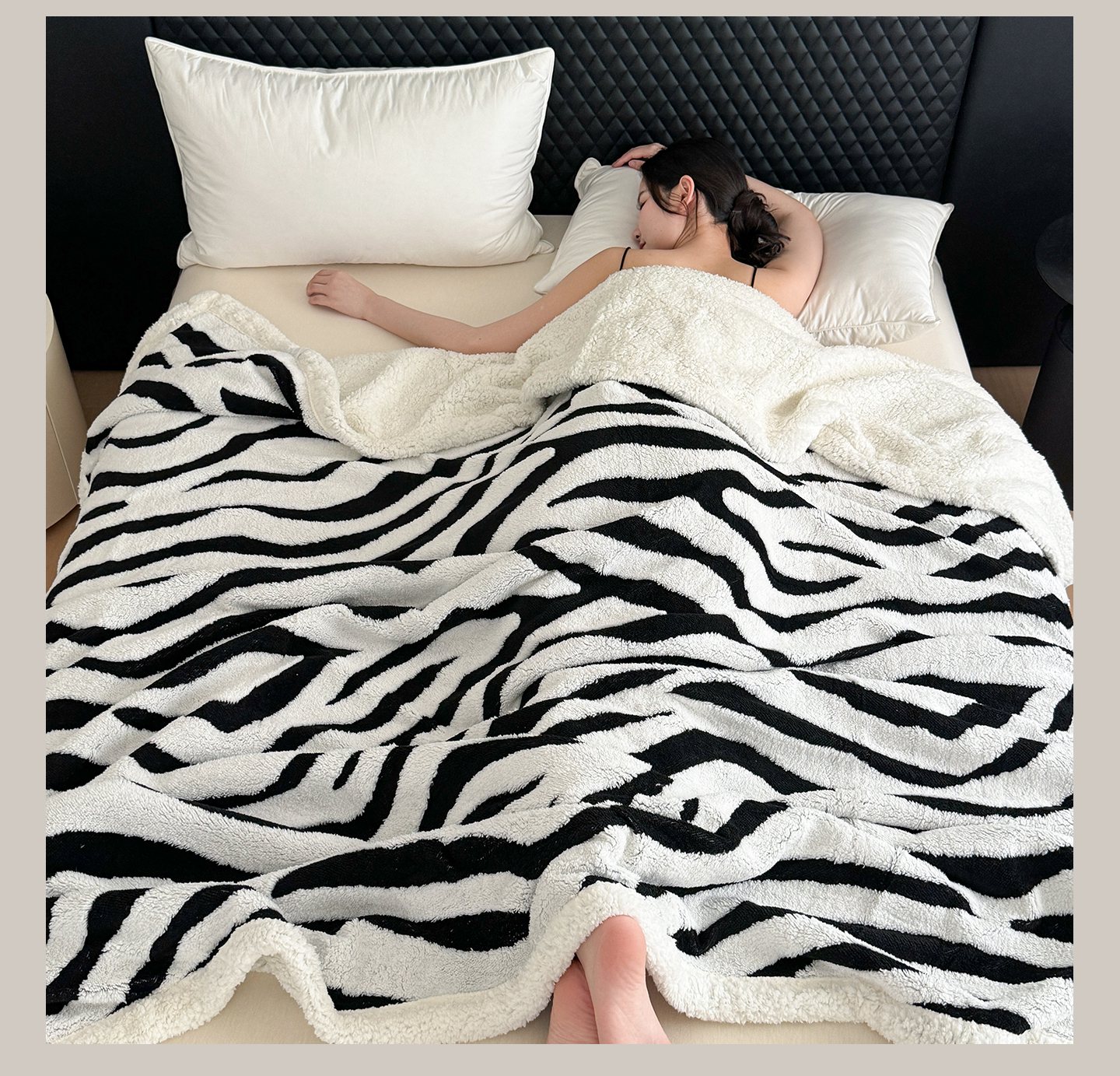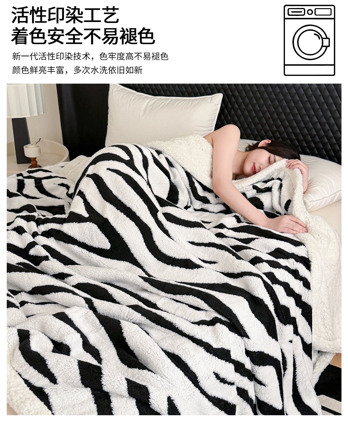 商品名称:梵克保罗 2025新款双层色织阳离子斑马纹提花塔芙绒羊羔绒跨境双层毛毯盖毯毯子 白斑马纹