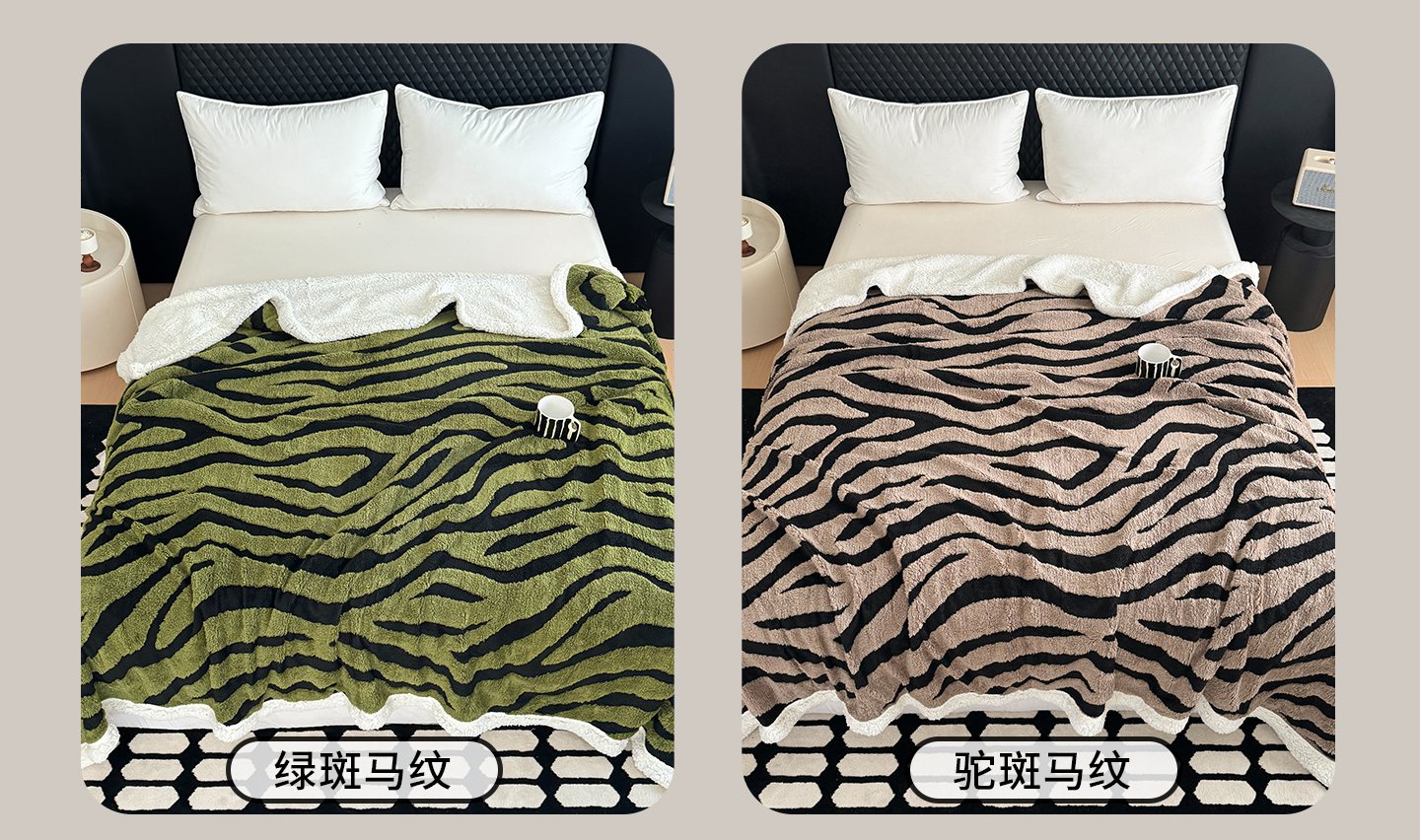 梵克保罗 2025新款双层色织阳离子斑马纹提花塔芙绒羊羔绒跨境双层毛毯盖毯毯子 白斑马纹