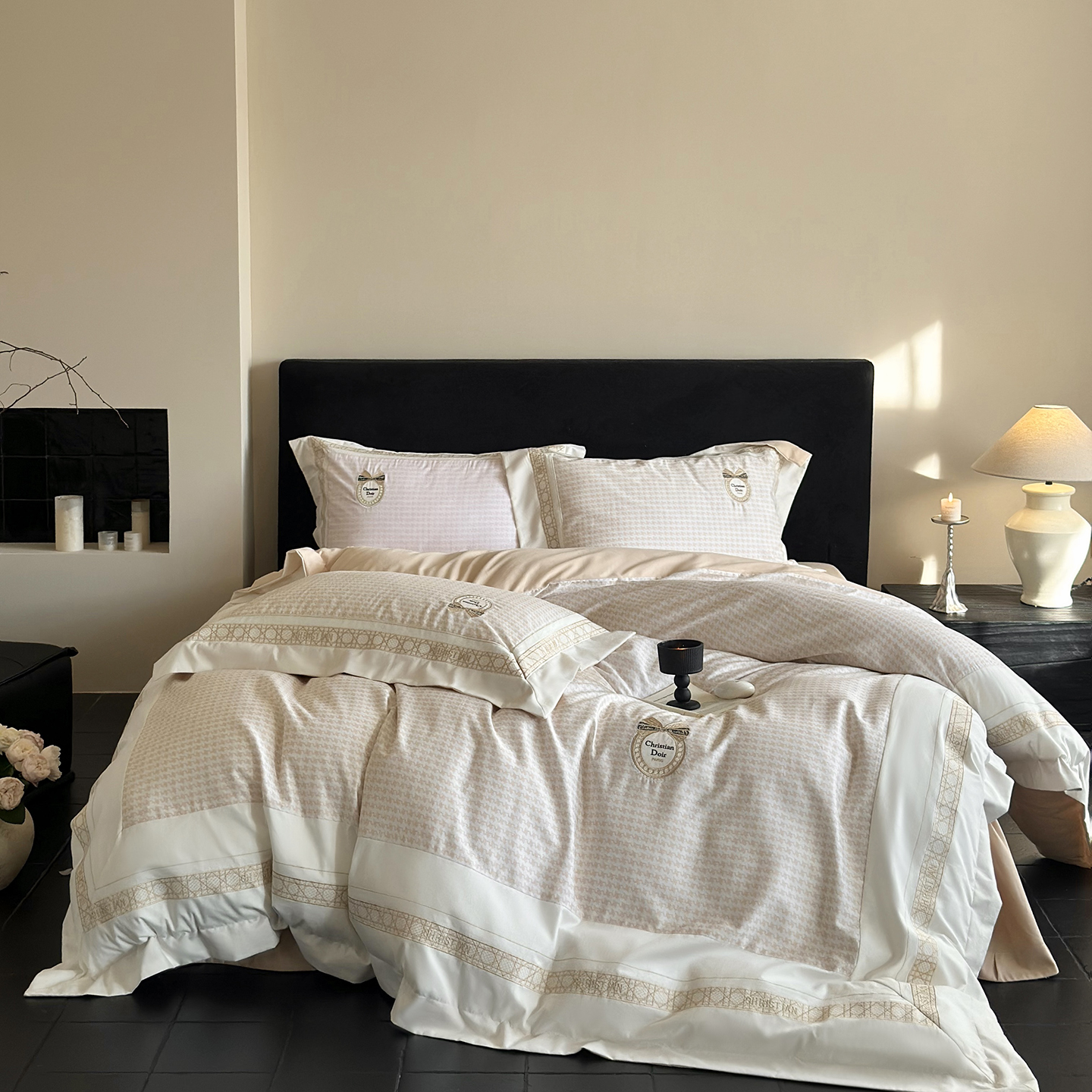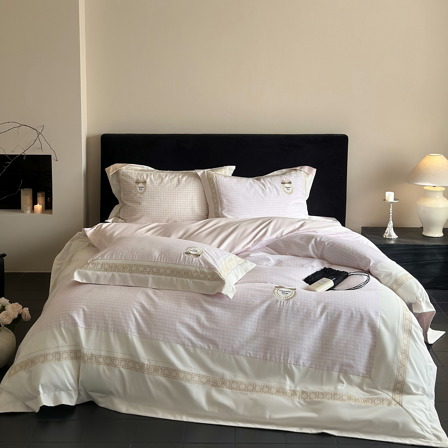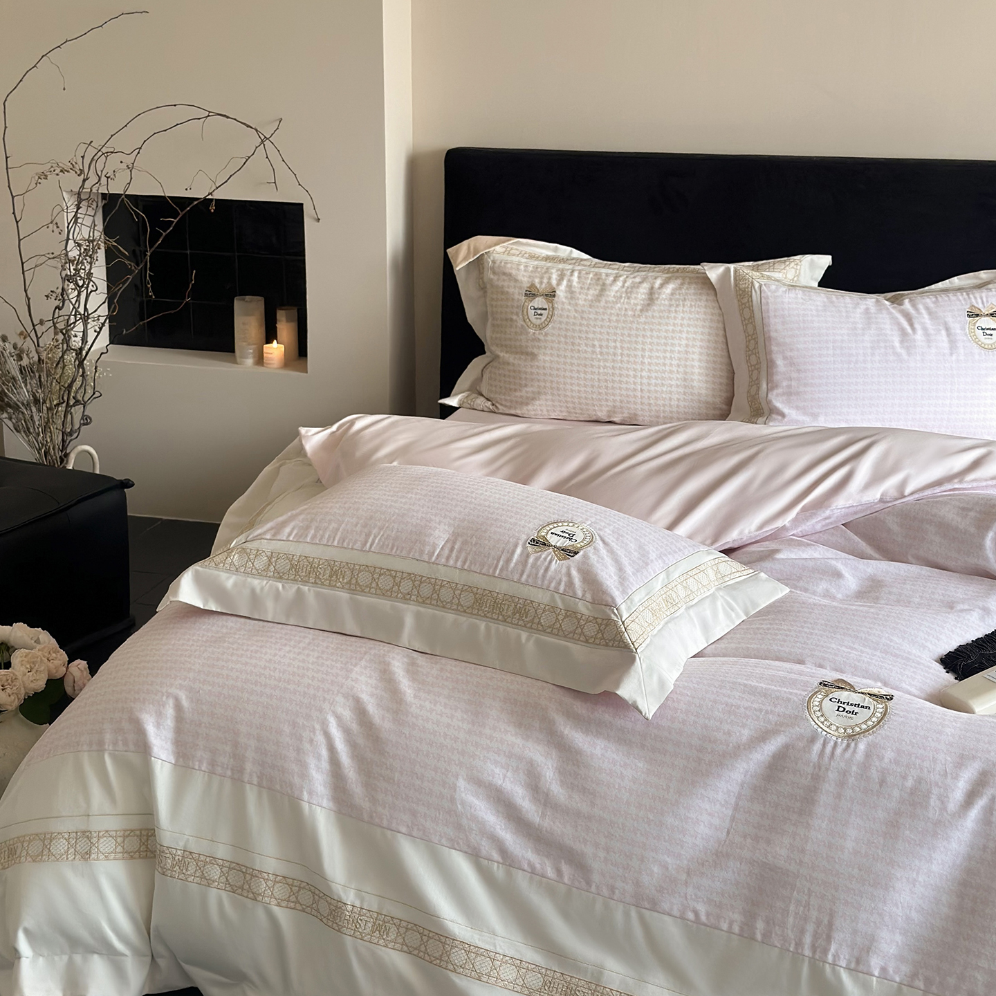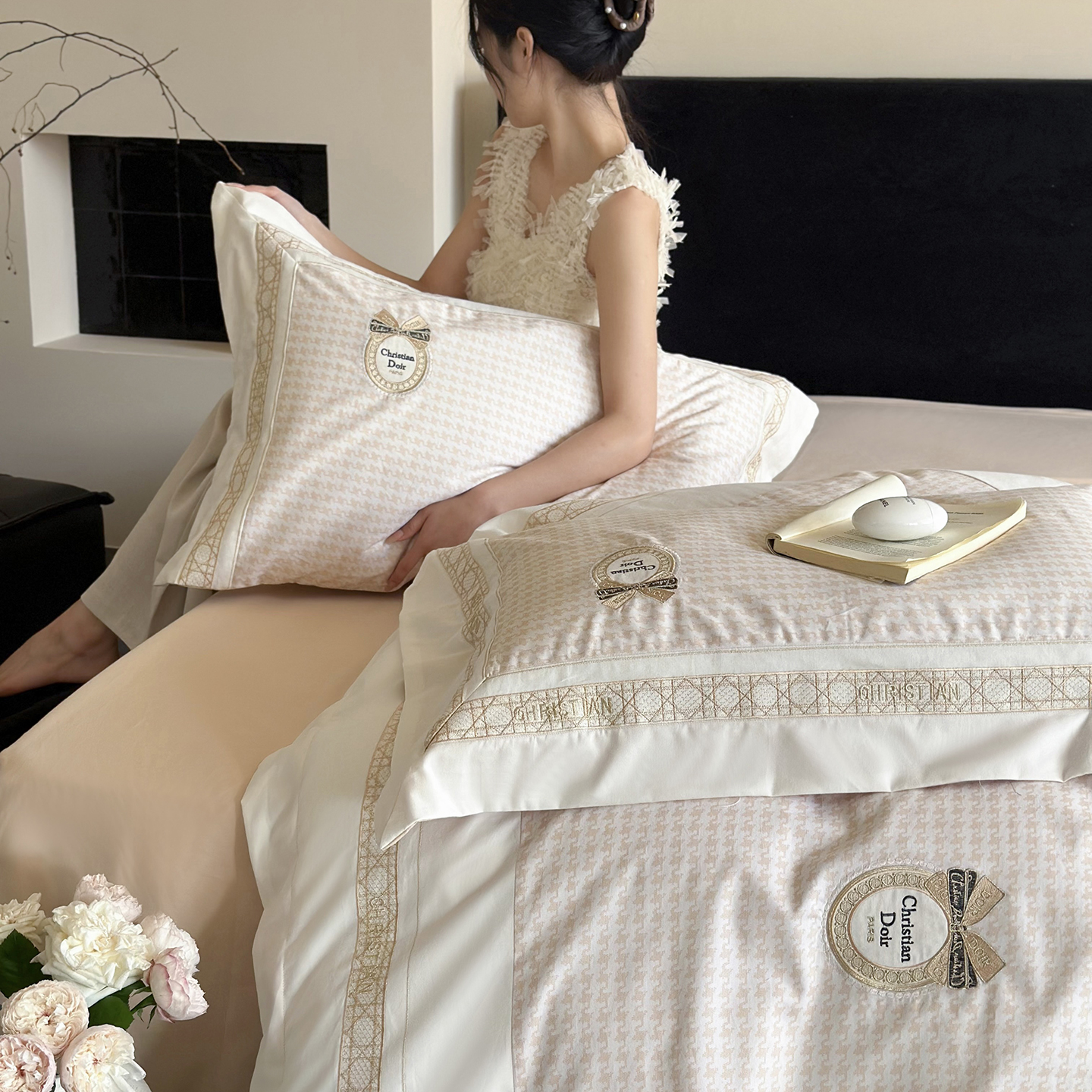 (总)MIU缪家居 2025新新款云锦绒牛奶绒四件套-赫妍,鎏金白,丝绒粉