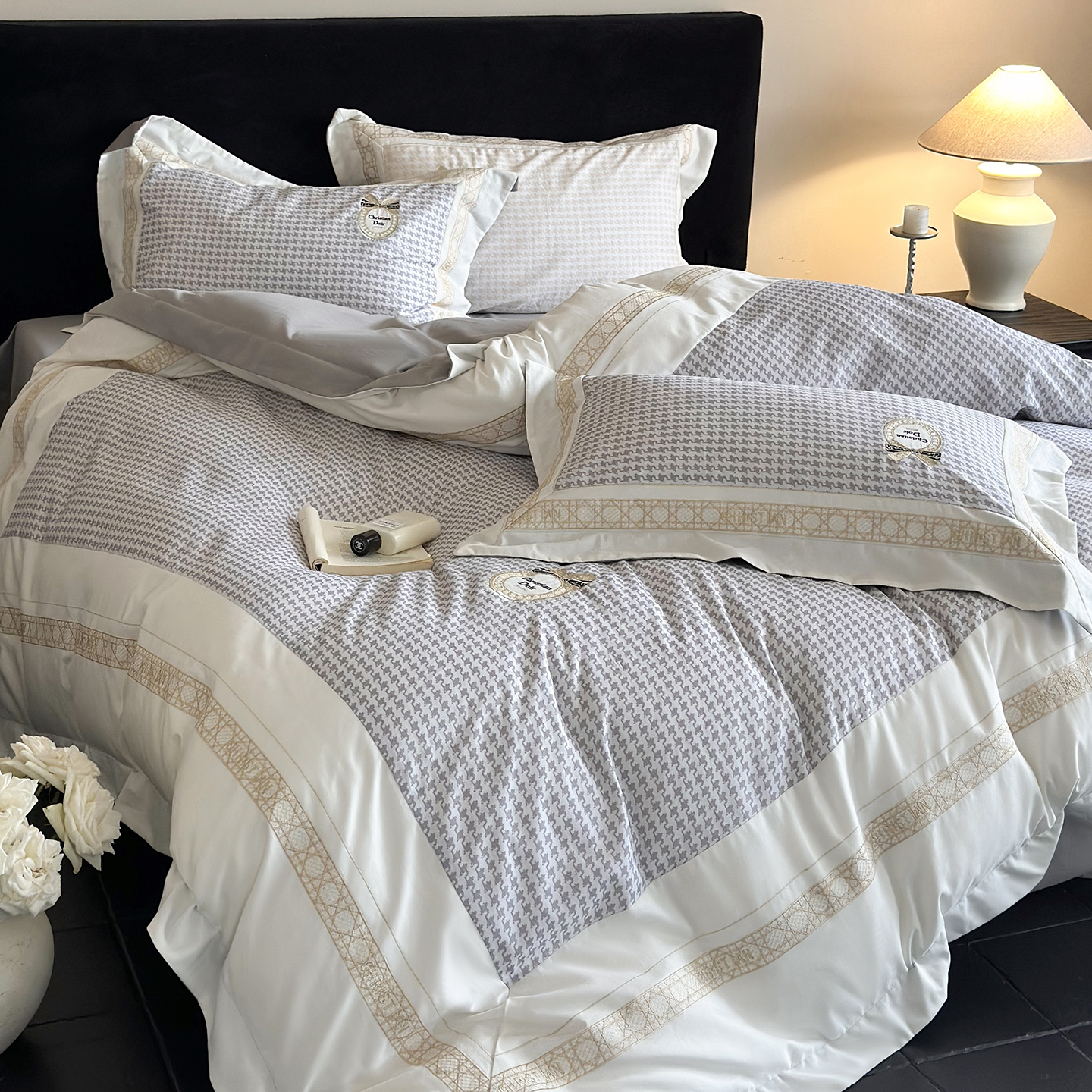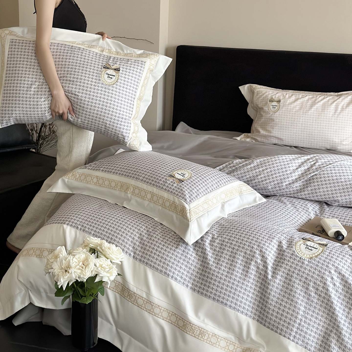 MIU缪家居 2025新款100支全棉磨毛四件套-莫妮卡 莫妮卡-浅灰