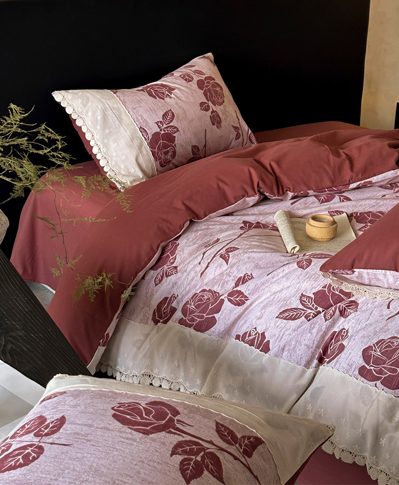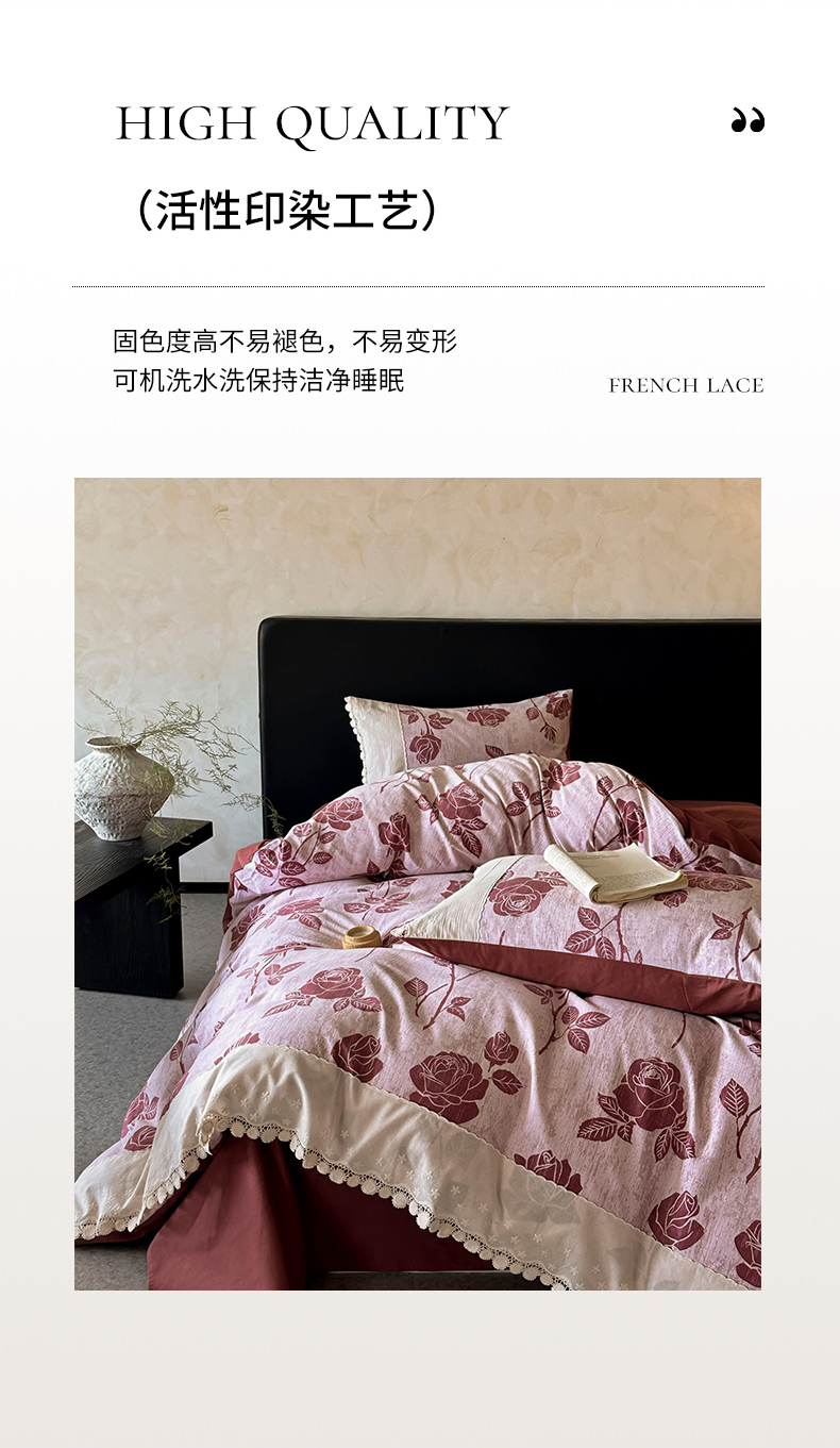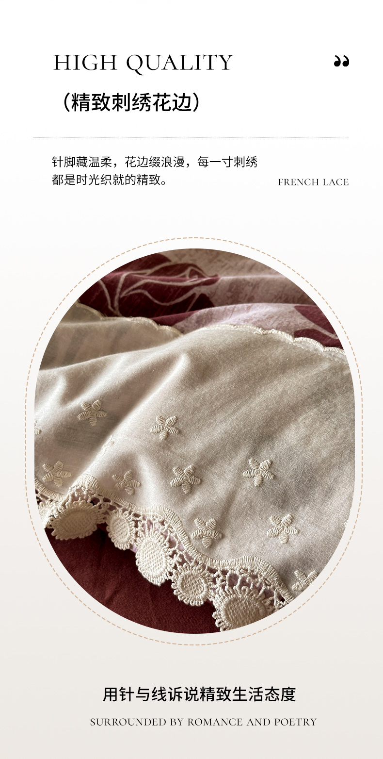 宜代光年 2025新款全棉磨毛花边四件套 岁月留声~红