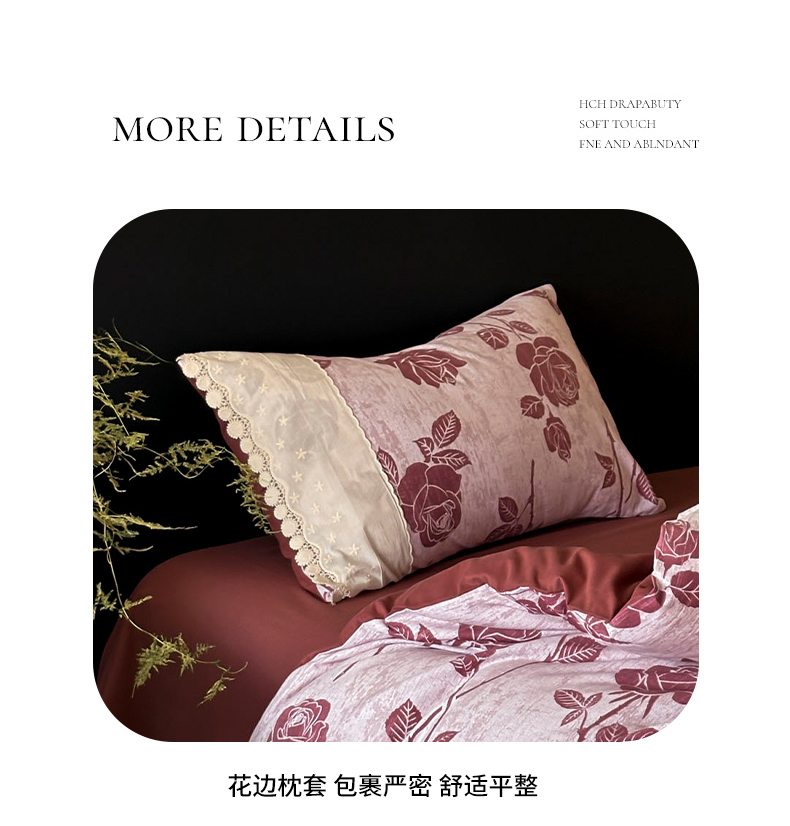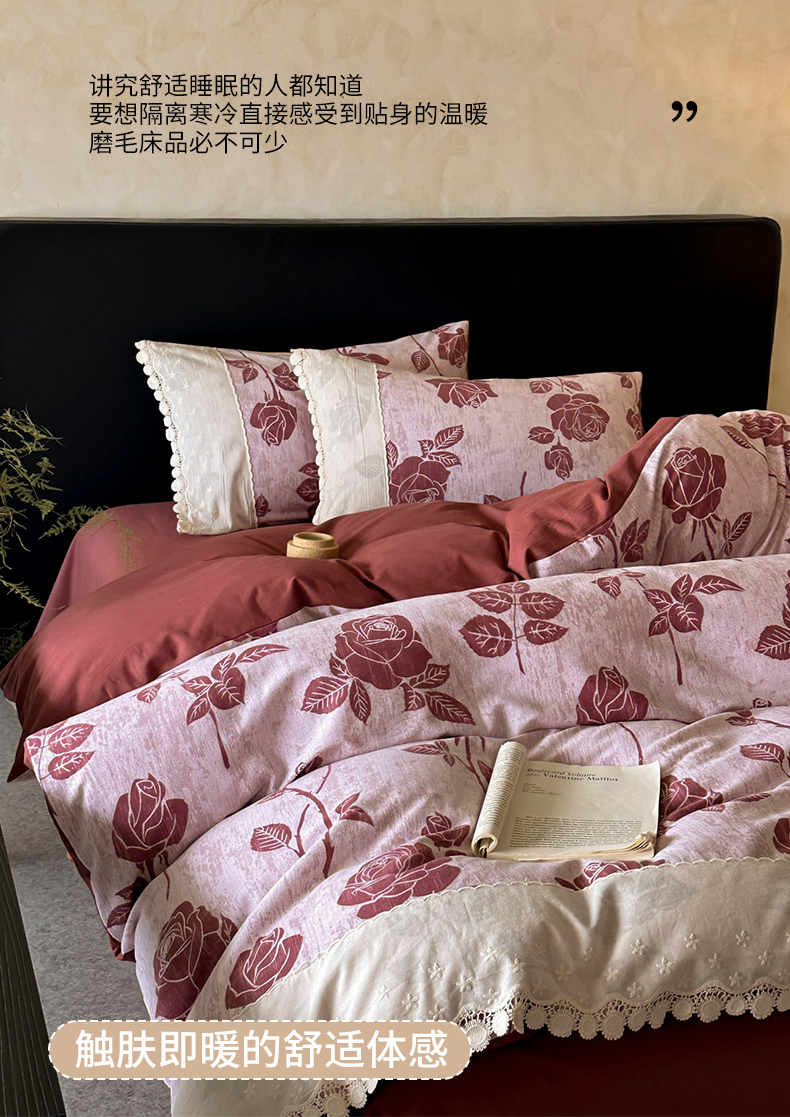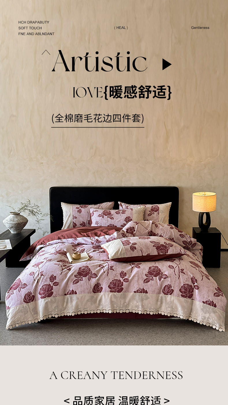 商品名称:宜代光年 2025新款全棉磨毛花边四件套 岁月留声~红