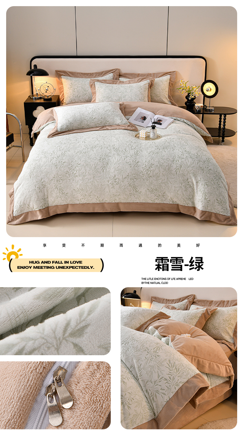 湘雪家居 2025新款高克重雕花牛奶绒四件套 霜雪款-青竹绿