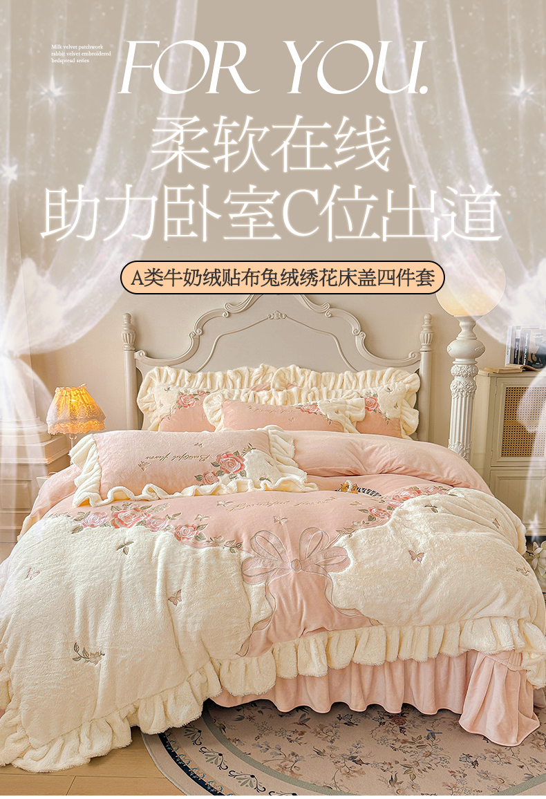 (总)宜凡家纺 2025新款兔绒提花牛奶绒夹棉床盖四件套,爱心 粉紫,爱心 少女粉,爱心 驼色,蝶舞 大红,蝶舞 米色,蝶舞 浅紫,蝶舞 玉色,简爱 苍青,简爱 豆沙紫,简爱 玉色,樱桃 苍青,樱桃 豆沙紫,樱桃 奶油白
