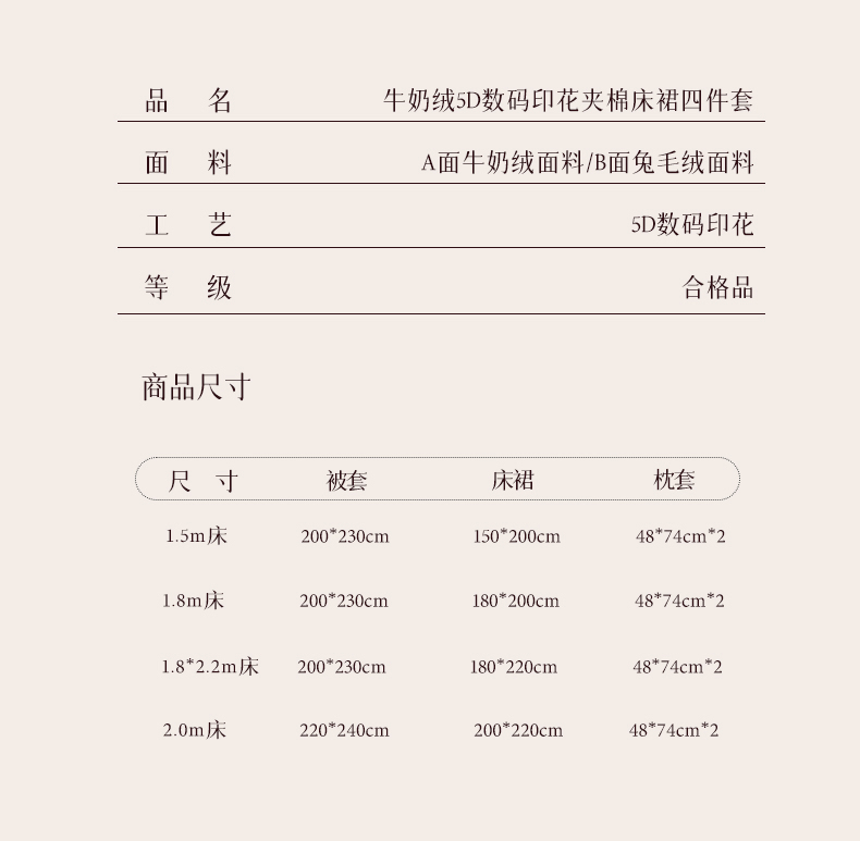 商品名称:宜凡家纺 2025新款牛奶绒5D数码印花夹棉床裙四件套 邂逅 紫