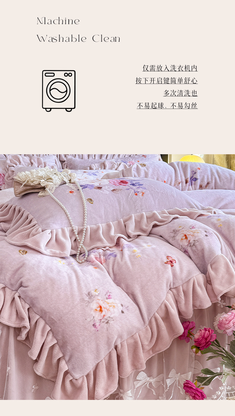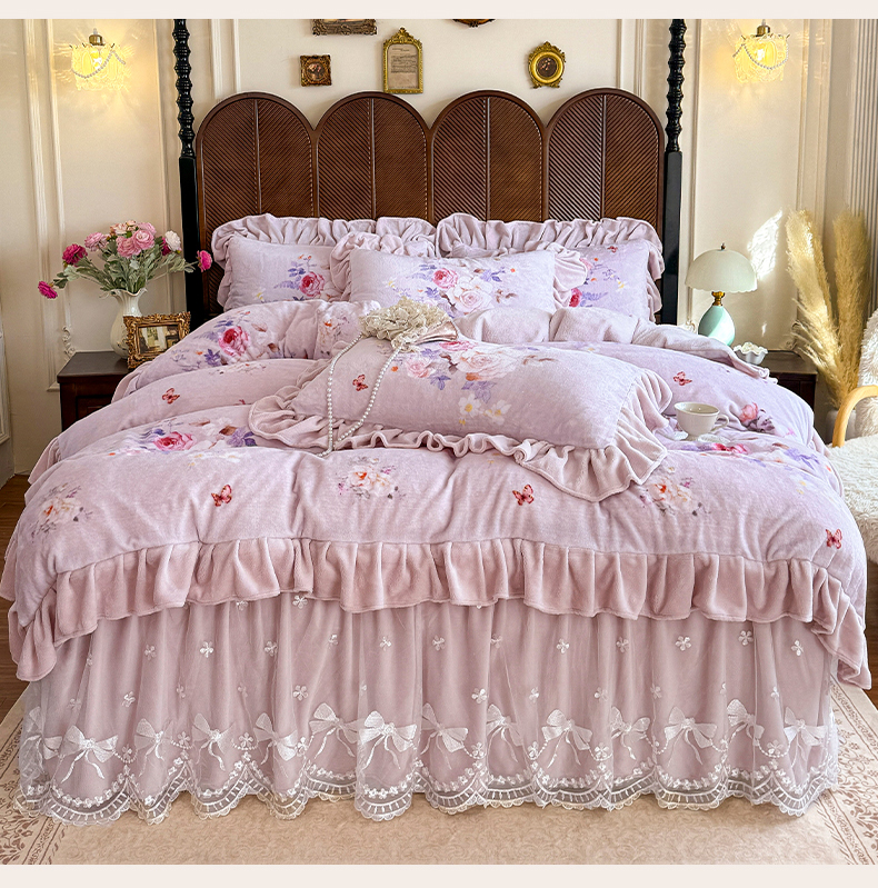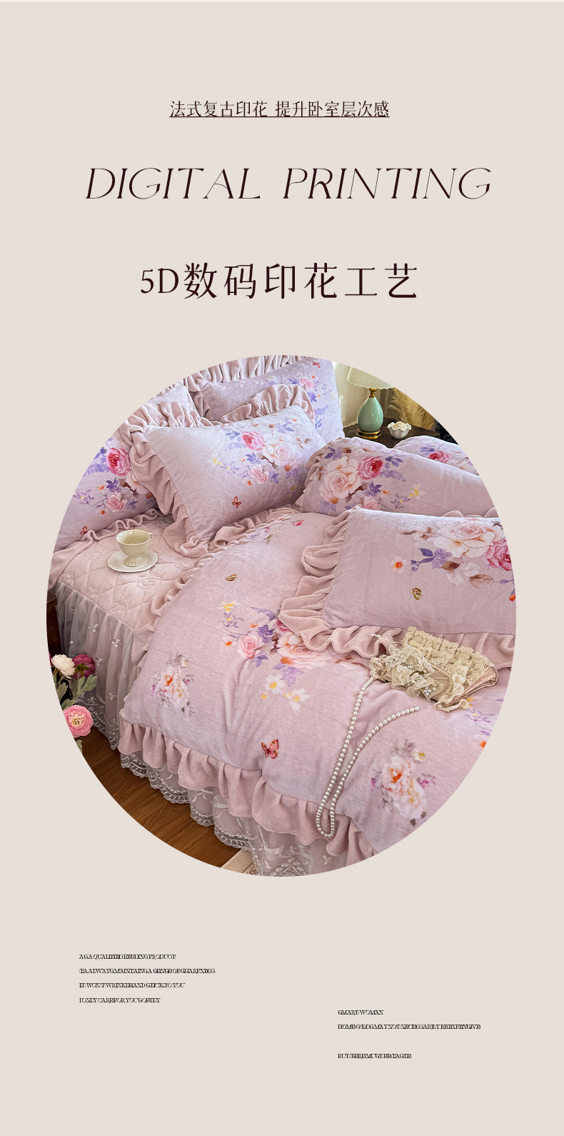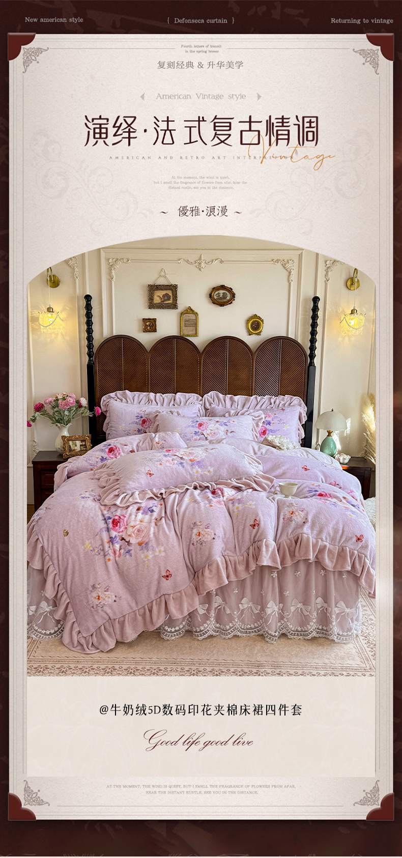 宜凡家纺 2025新款牛奶绒5D数码印花夹棉床裙四件套 邂逅 紫