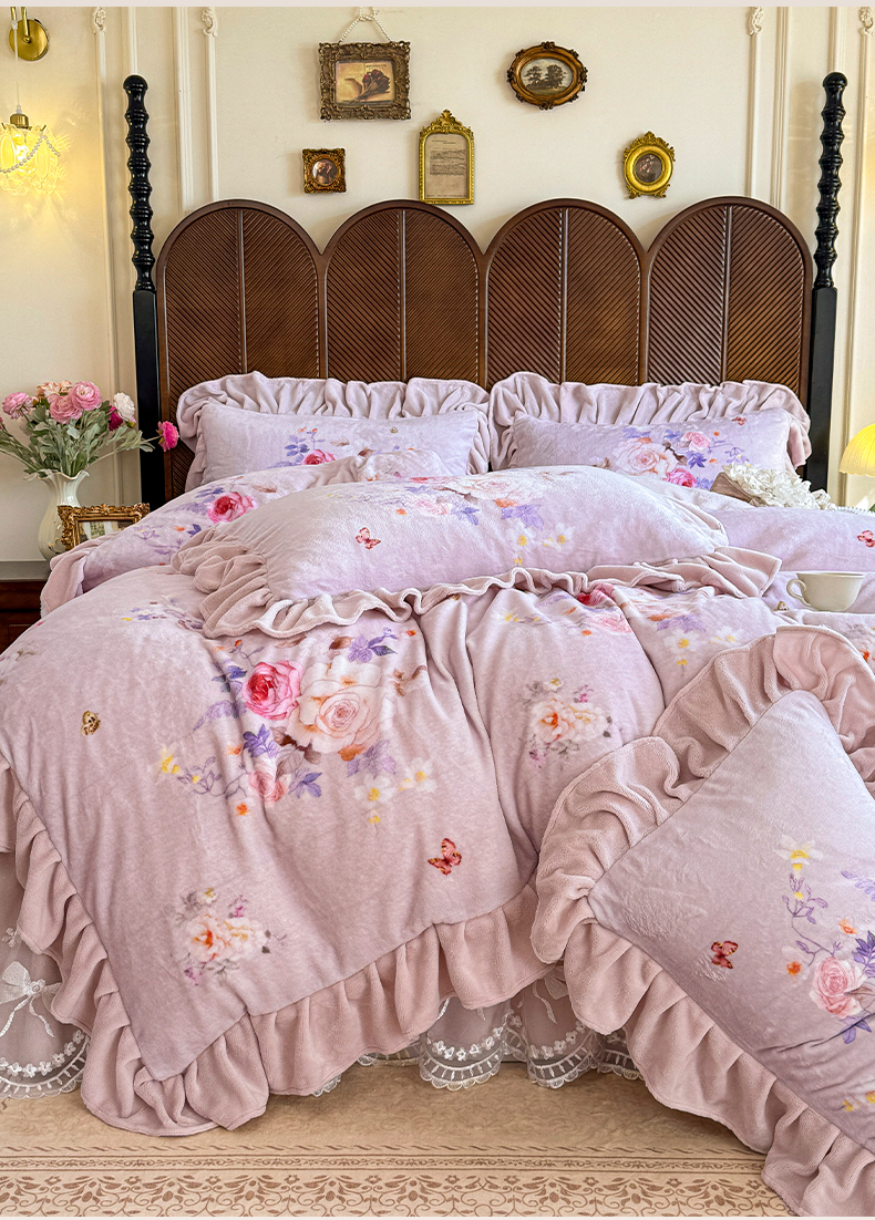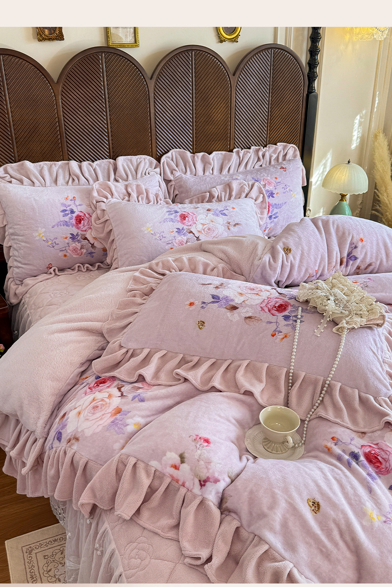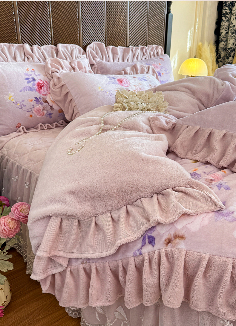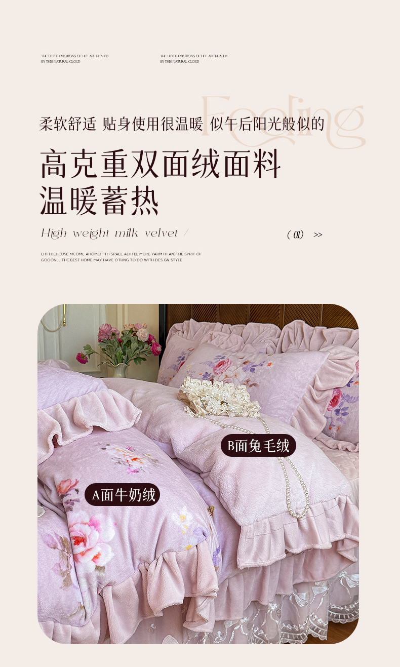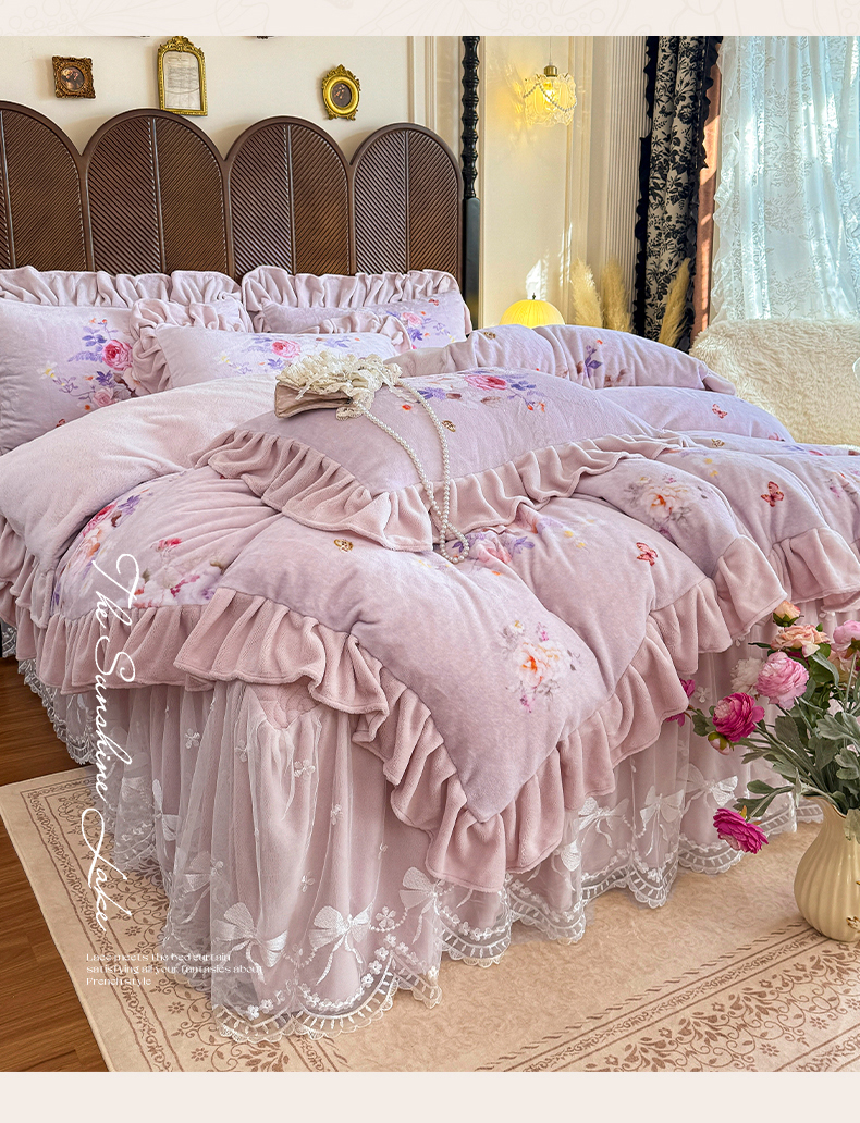宜凡家纺 2025新款牛奶绒5D数码印花夹棉床裙四件套 邂逅 紫