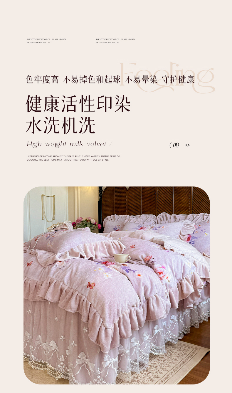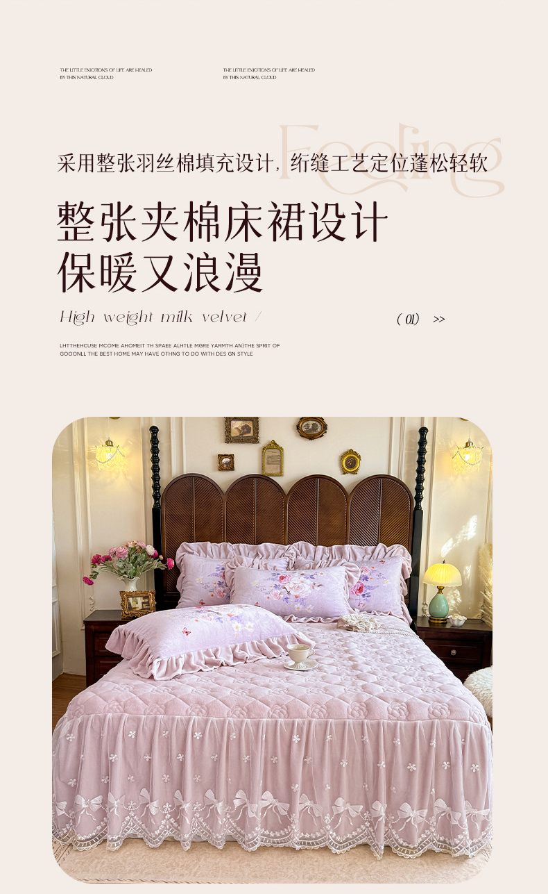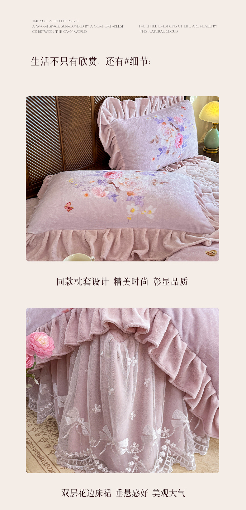 (总)宜凡家纺 2025新款兔绒提花牛奶绒夹棉床裙四件套,爱心 少女粉,爱心 粉紫,爱心 驼色,蝶舞 大红,蝶舞 米色,蝶舞 浅紫,蝶舞 玉色,简爱 苍青,简爱 豆沙紫,简爱 玉色,樱桃 苍青,樱桃 豆沙紫,樱桃 奶油白