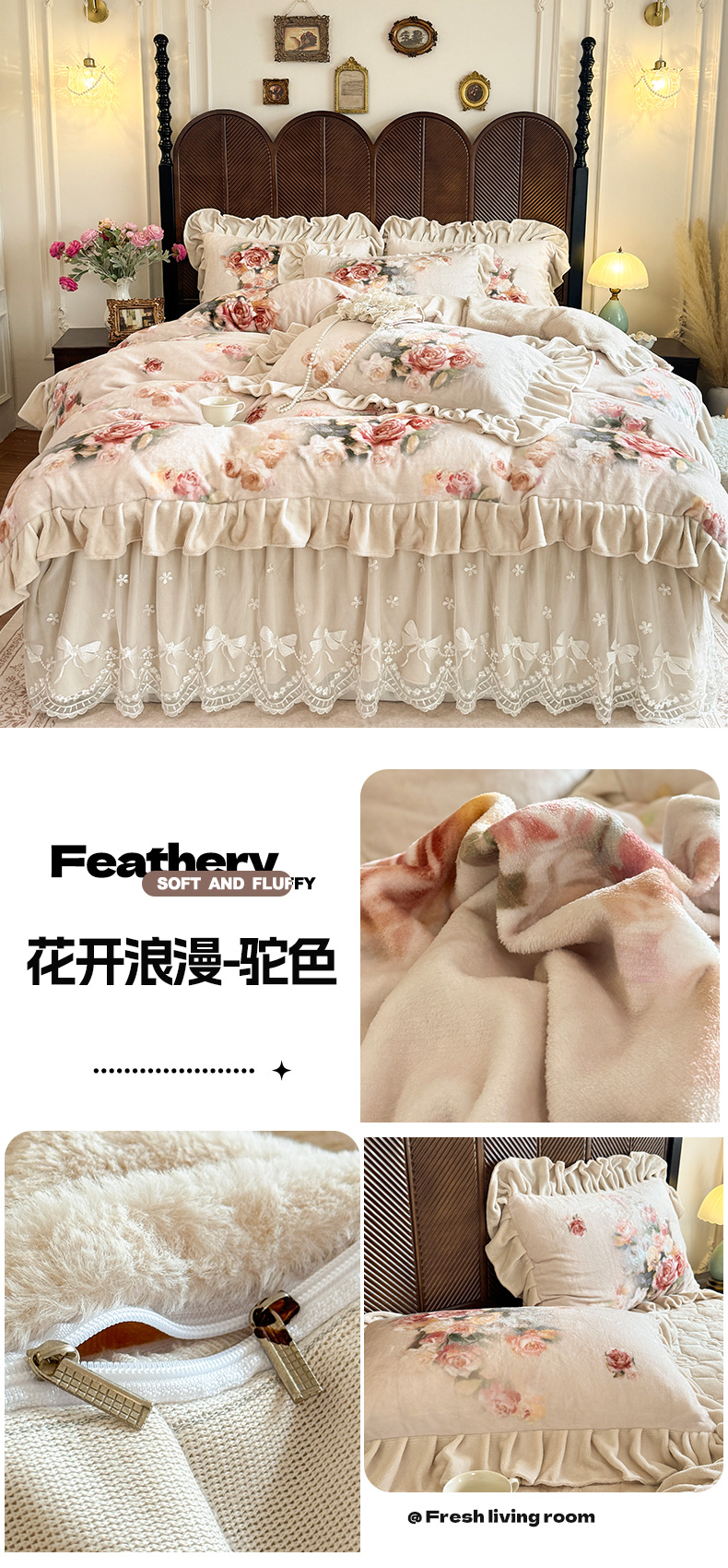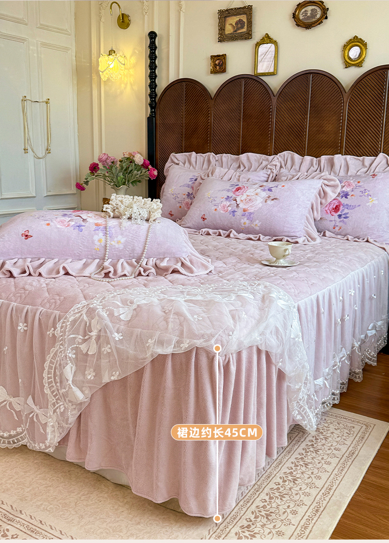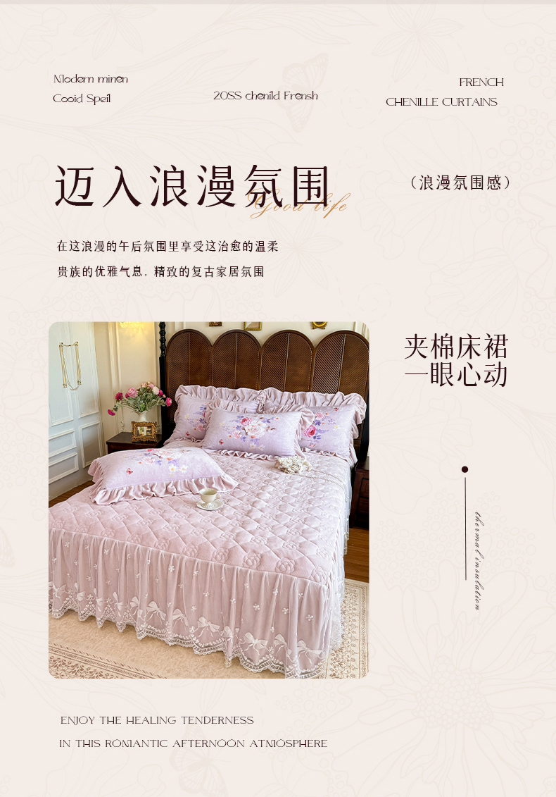 (总)宜凡家纺 2025新款兔绒提花牛奶绒夹棉床裙四件套,爱心 少女粉,爱心 粉紫,爱心 驼色,蝶舞 大红,蝶舞 米色,蝶舞 浅紫,蝶舞 玉色,简爱 苍青,简爱 豆沙紫,简爱 玉色,樱桃 苍青,樱桃 豆沙紫,樱桃 奶油白