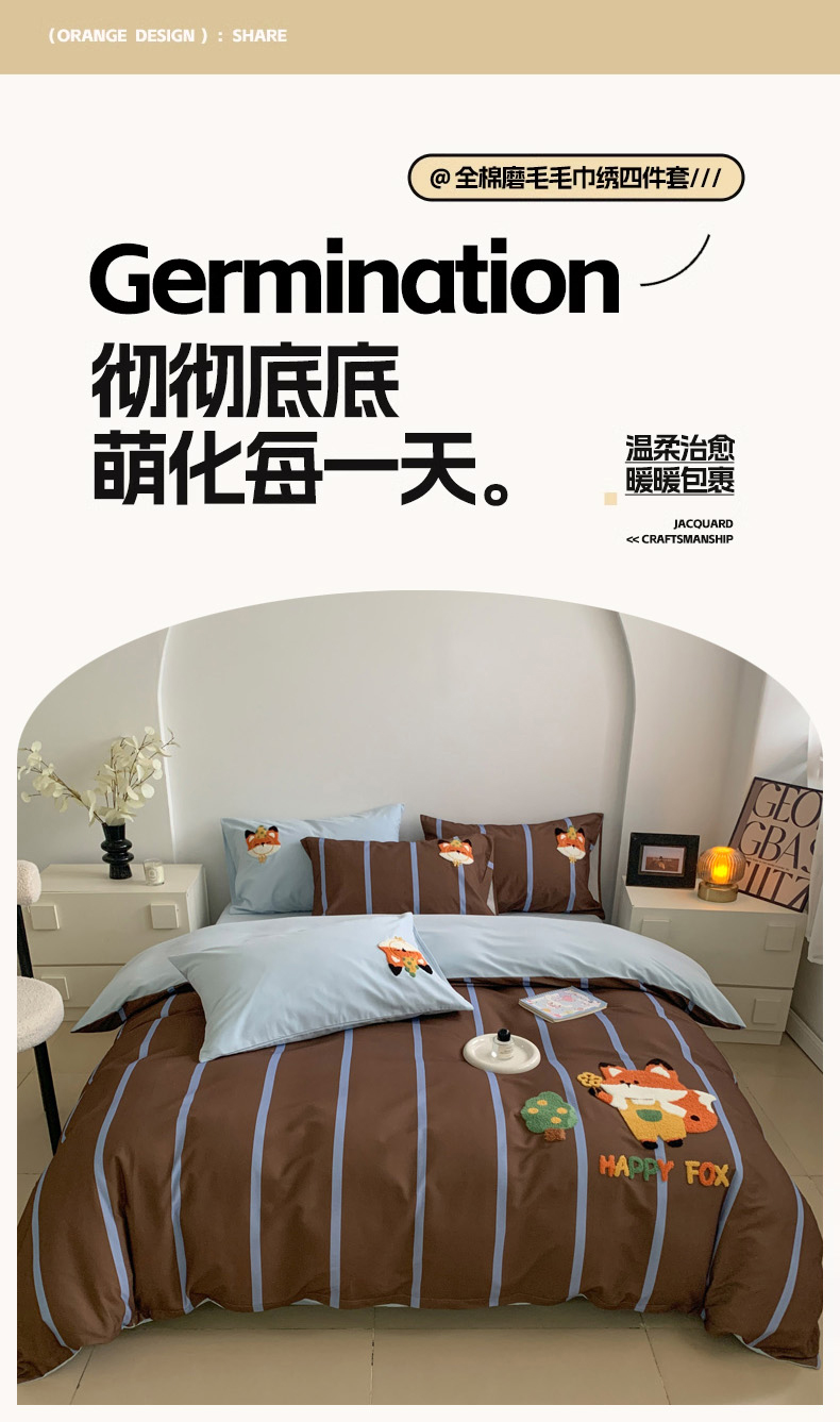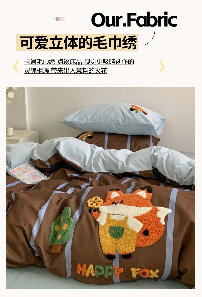 当前位置: 91家纺网 > 商品网购 > 床品套件 > 四件套 > 普通磨毛四件套 > 如意朵 2025新款全棉加厚磨毛毛巾绣四件套(专版花型) 小狐狸