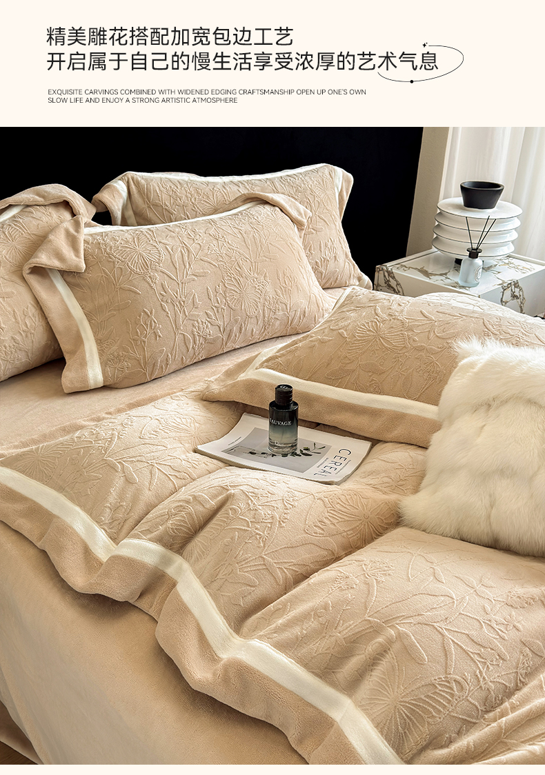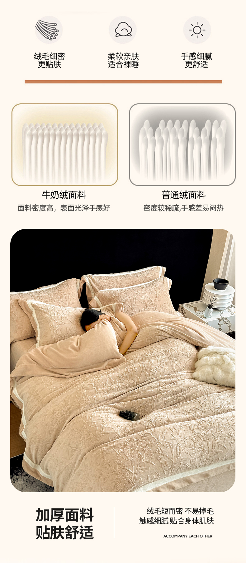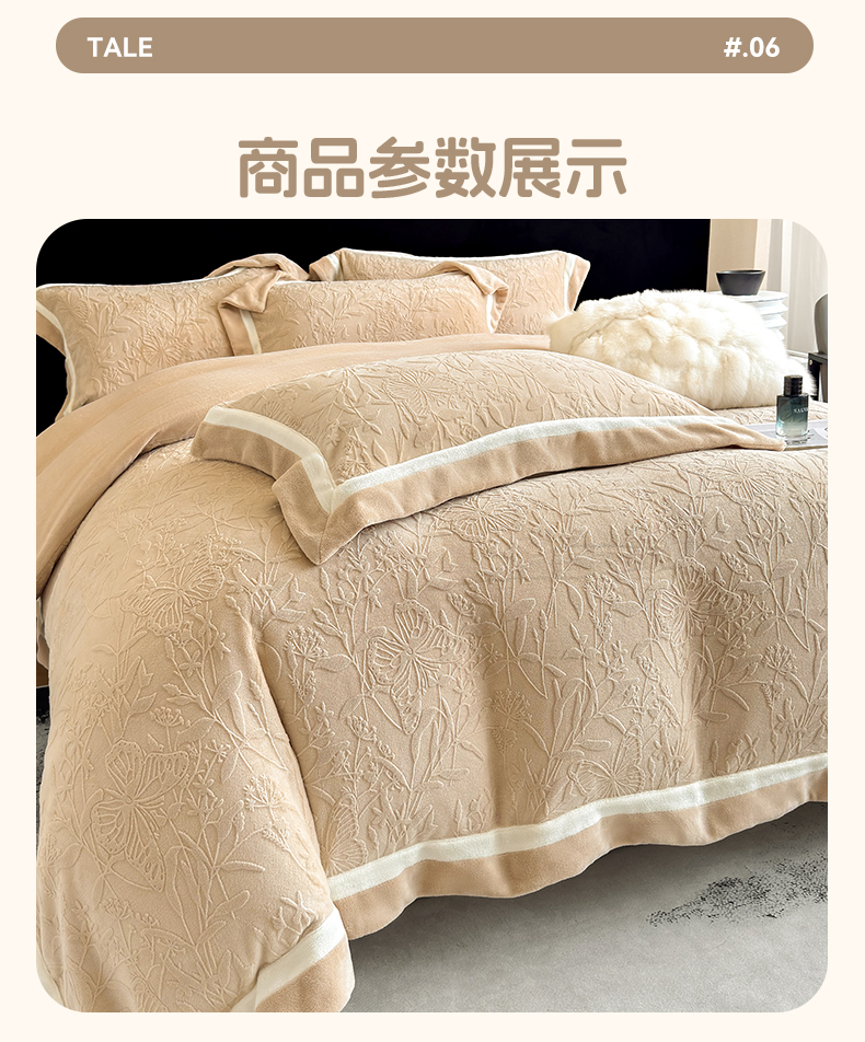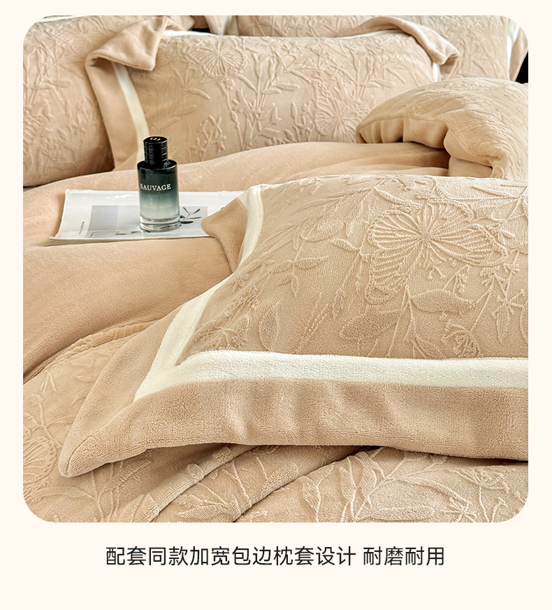 商品名称:家居1号家纺 2025新款230克全消光牛奶绒四件套-梦蝶 梦蝶-卡其