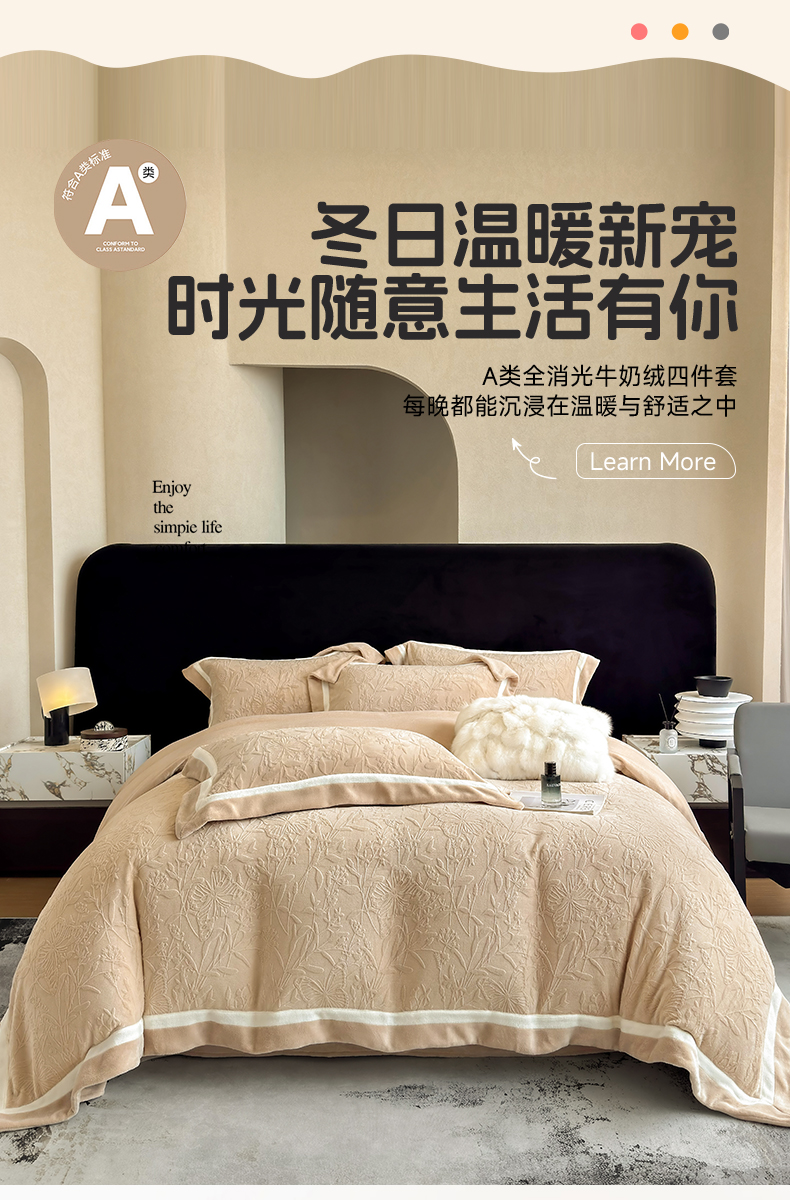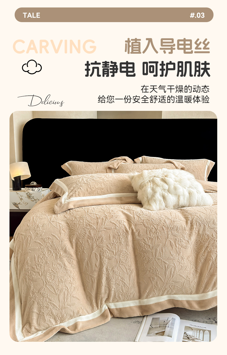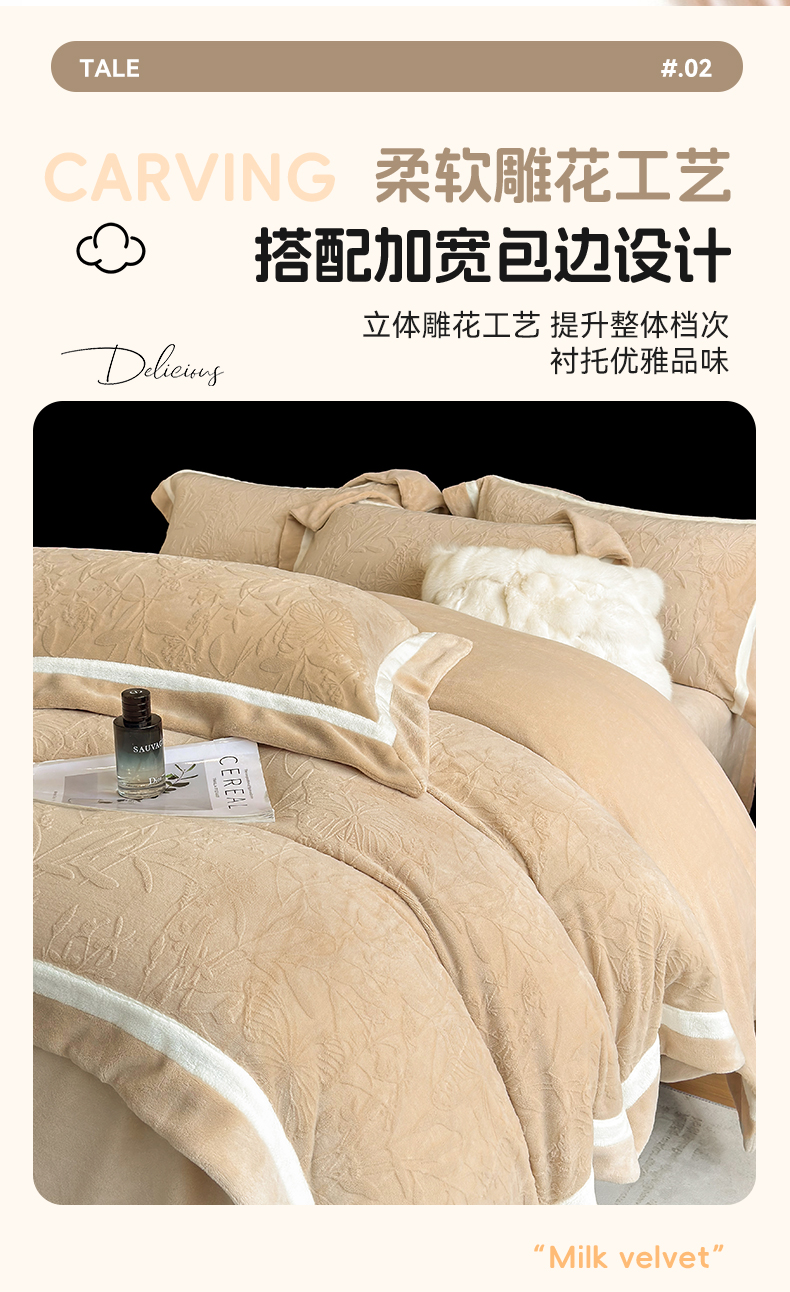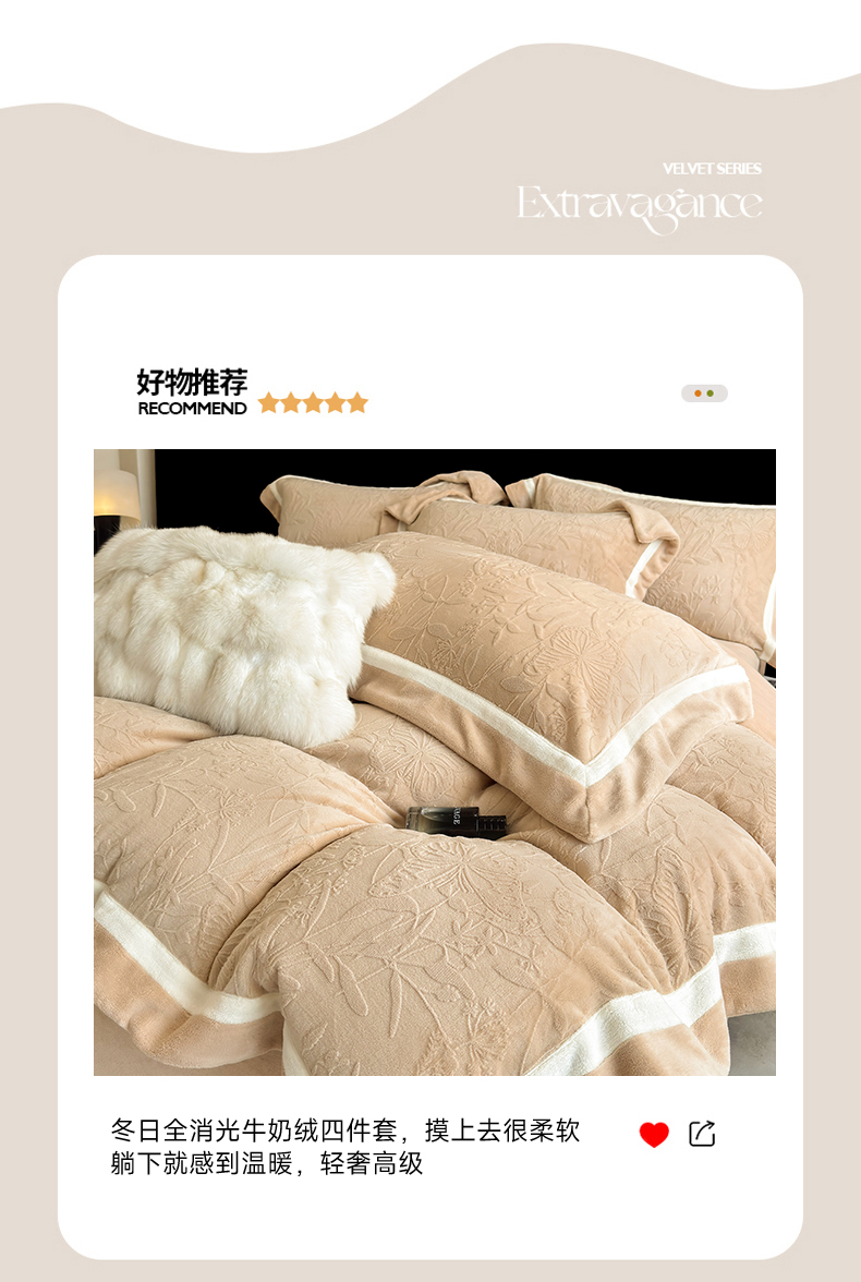 商品名称:家居1号家纺 2025新款230克全消光牛奶绒四件套-梦蝶 梦蝶-卡其