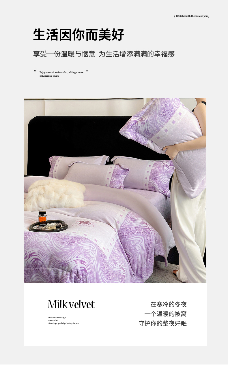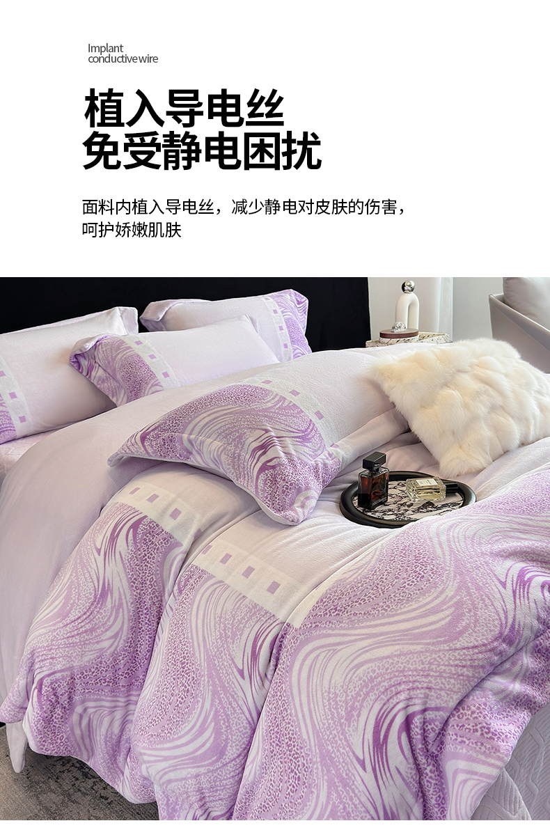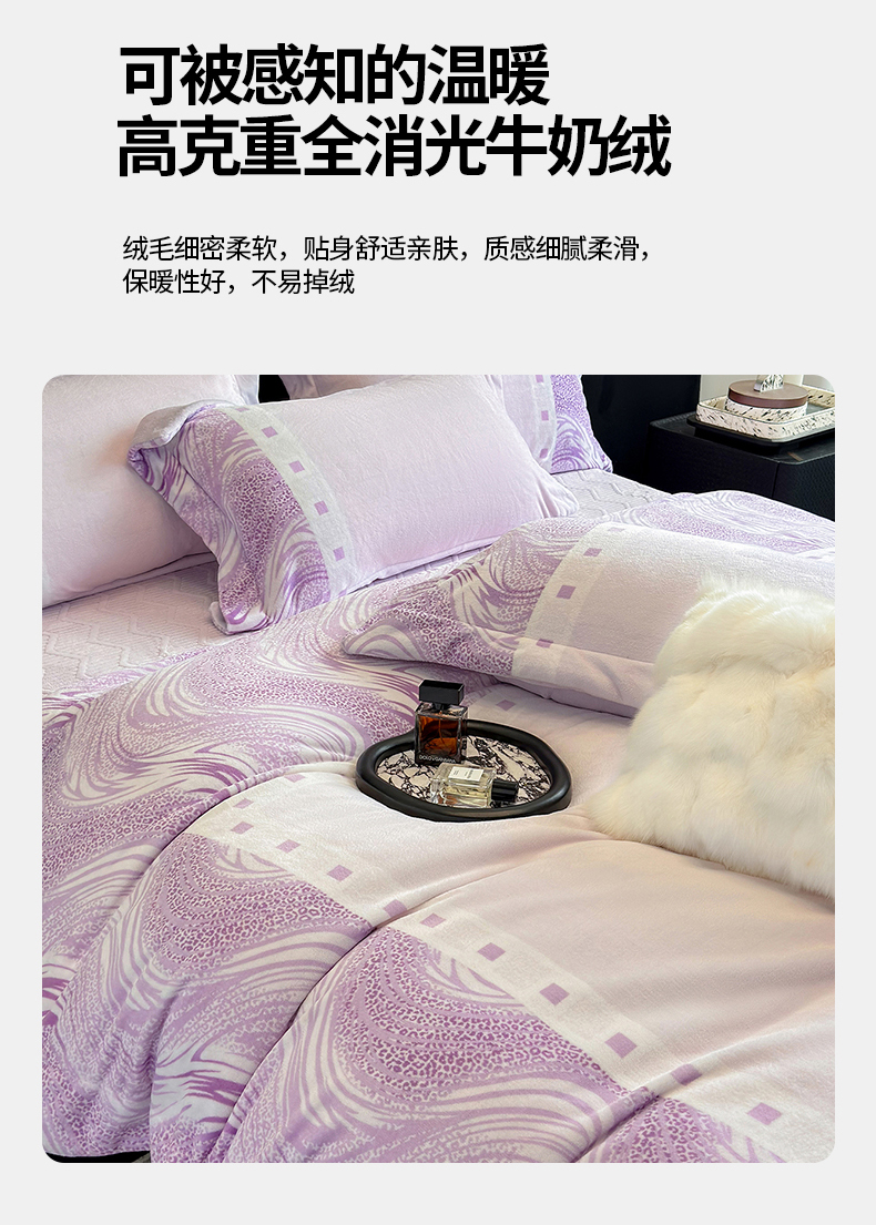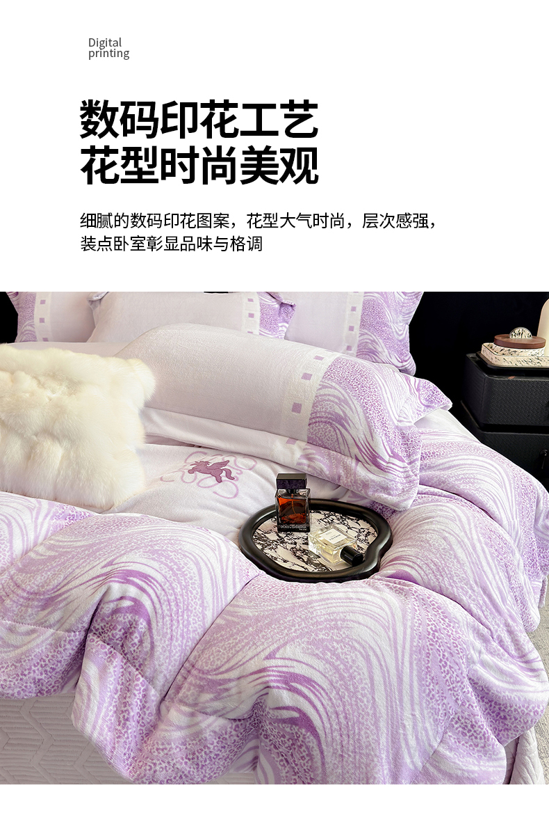 商品名称:新方向 2025年新款全消光A类数码印花牛奶绒四件套-贝斯 贝斯-魅紫