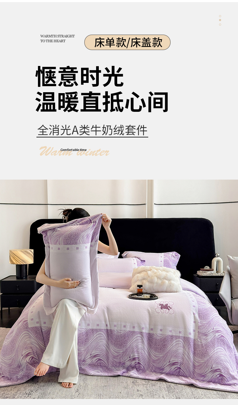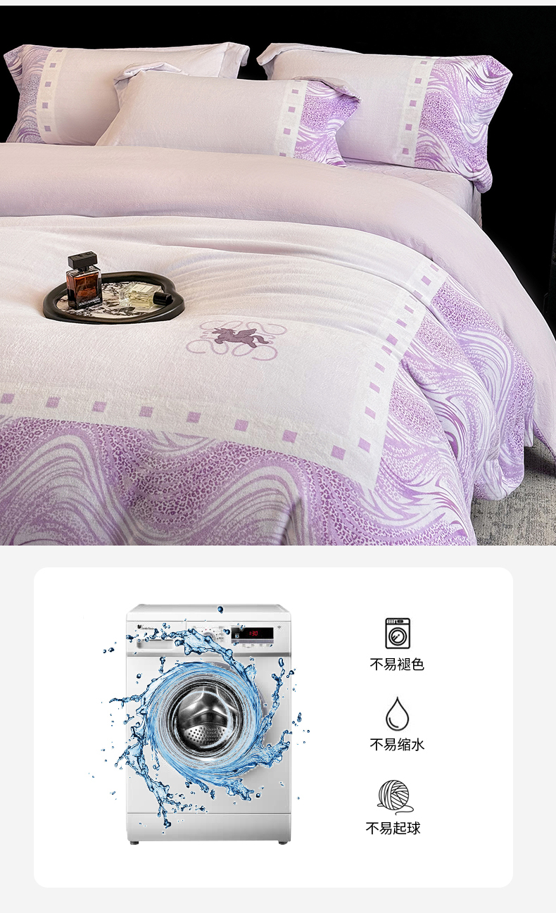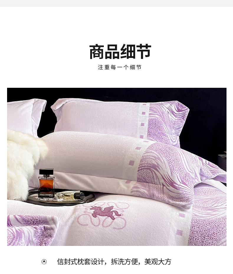商品名称:新方向 2025年新款全消光A类数码印花牛奶绒四件套-贝斯 贝斯-魅紫