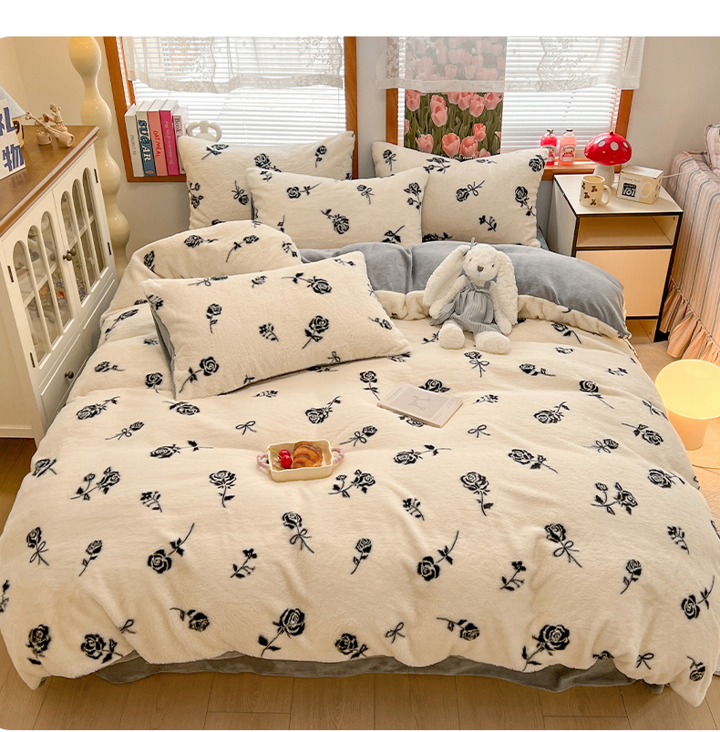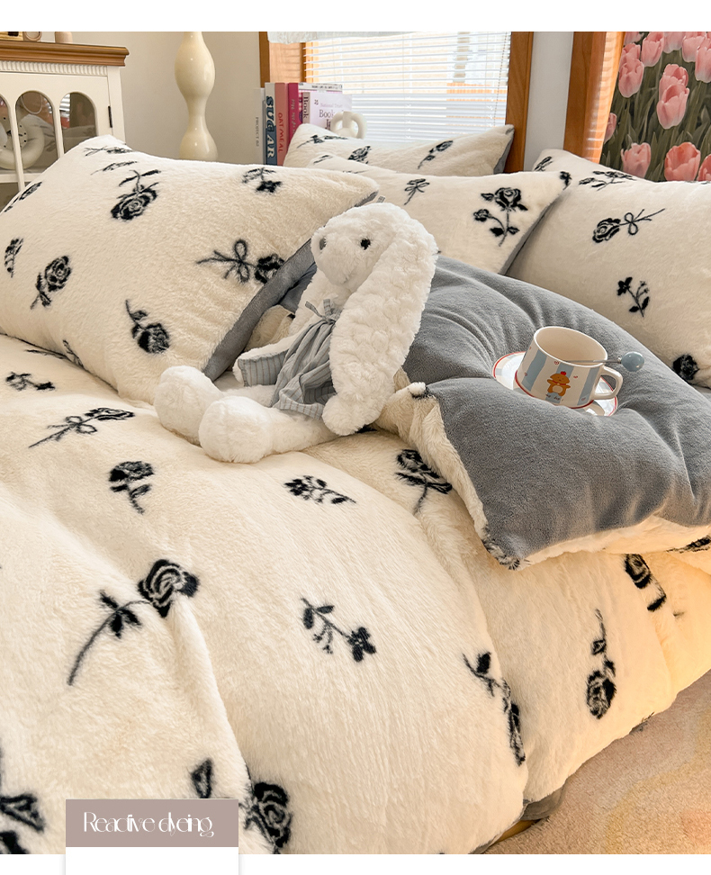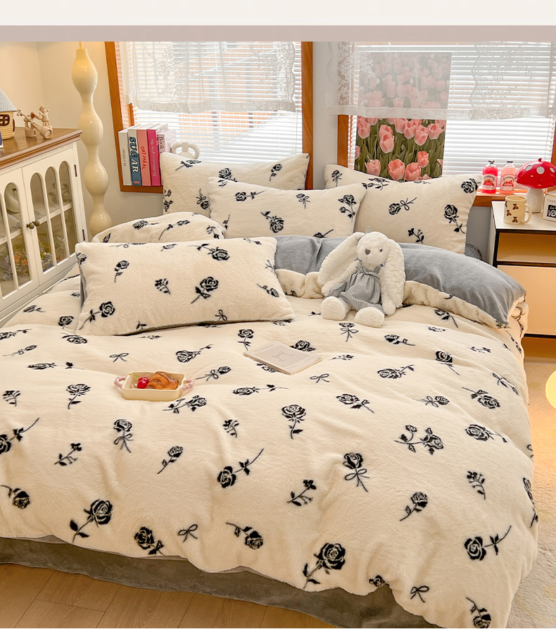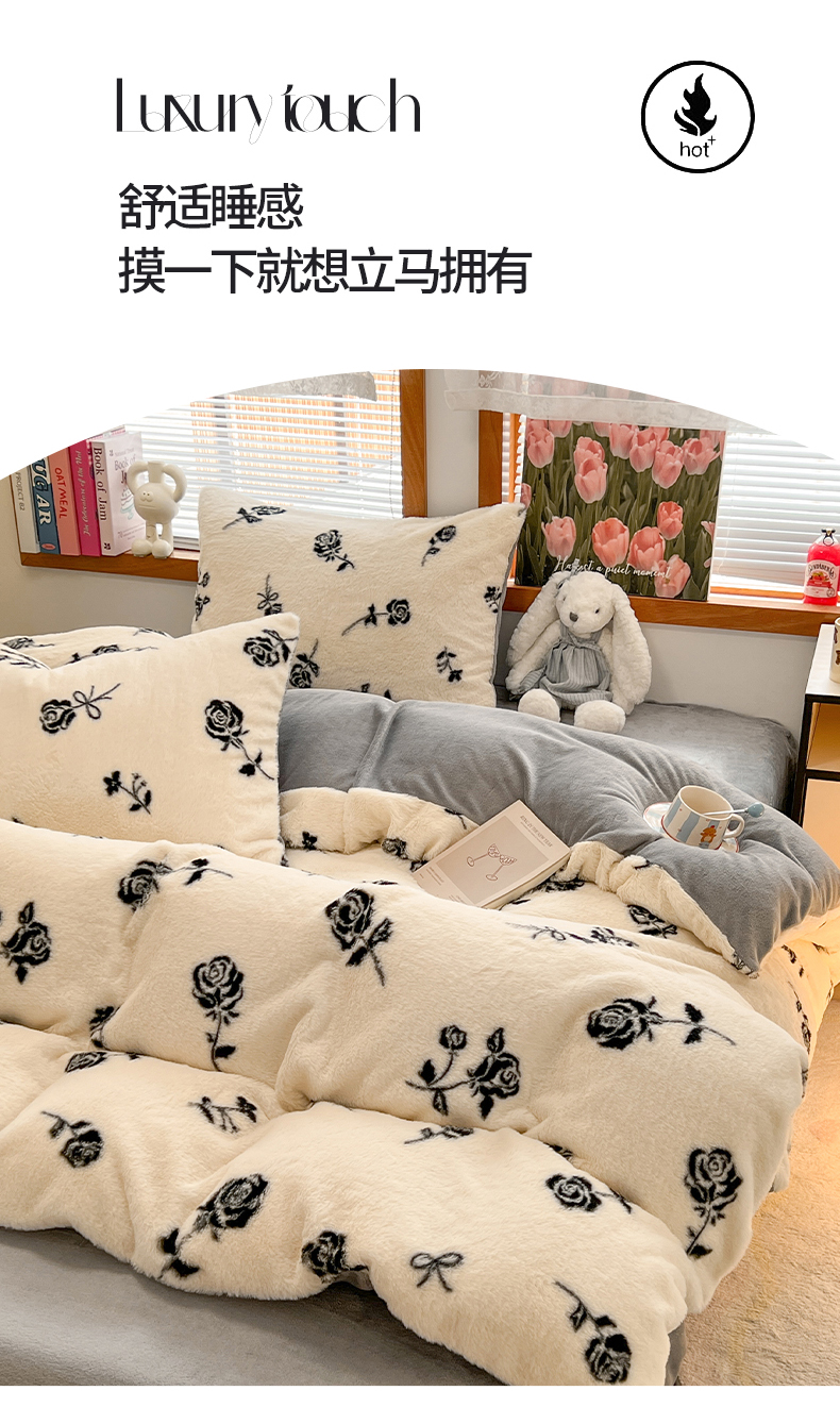 当前位置: 91家纺网 > 商品网购 > 床品套件 > 四件套 > 其它四件套 > 妖妖家纺 2025新款加厚印花兔毛绒保暖四件套 手捧玫瑰