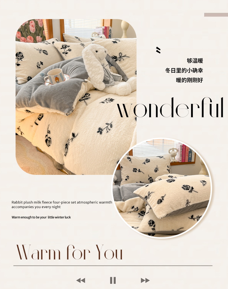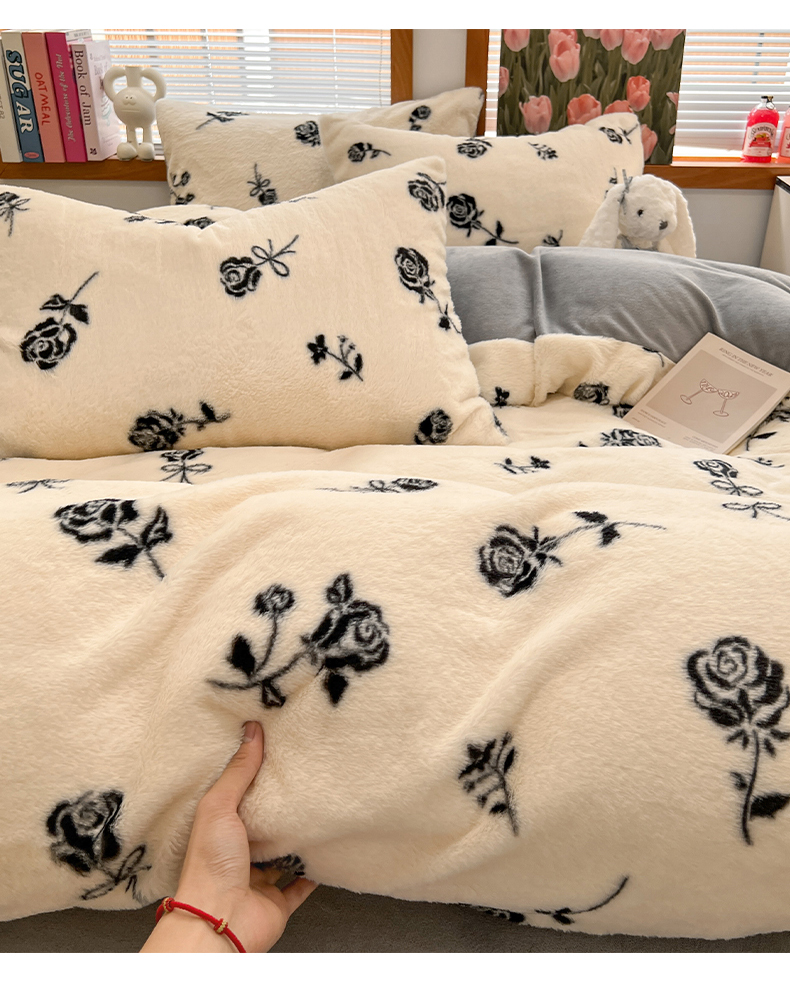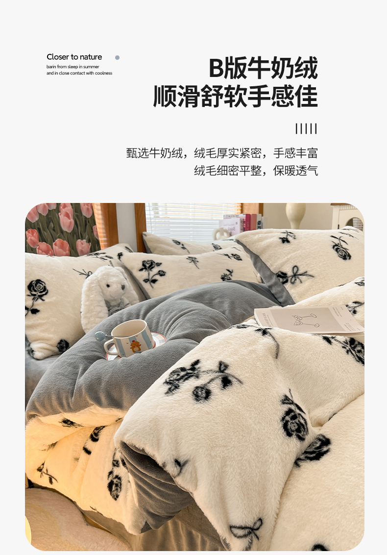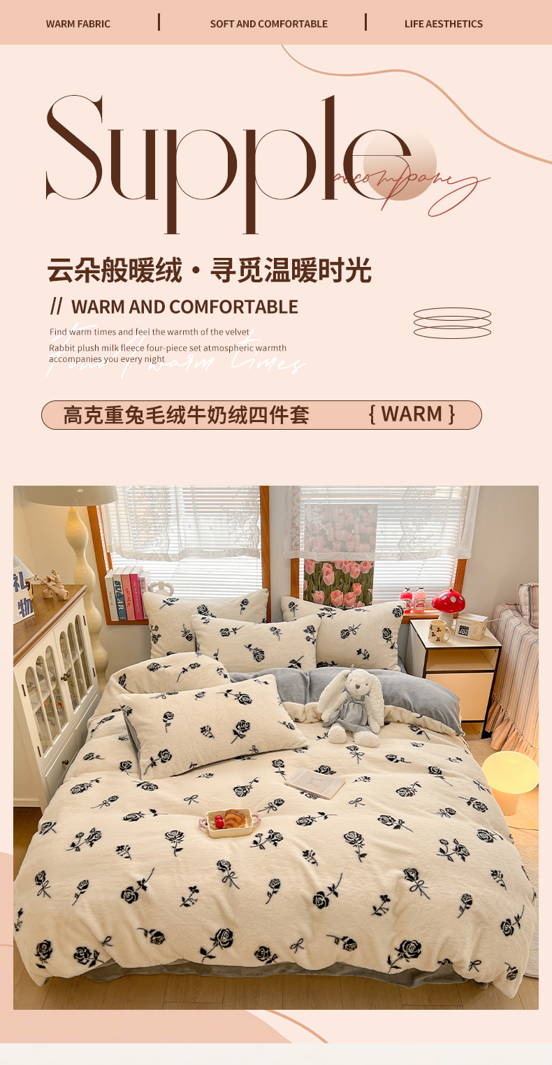 当前位置: 91家纺网 > 商品网购 > 床品套件 > 四件套 > 其它四件套 > 妖妖家纺 2025新款加厚印花兔毛绒保暖四件套 手捧玫瑰