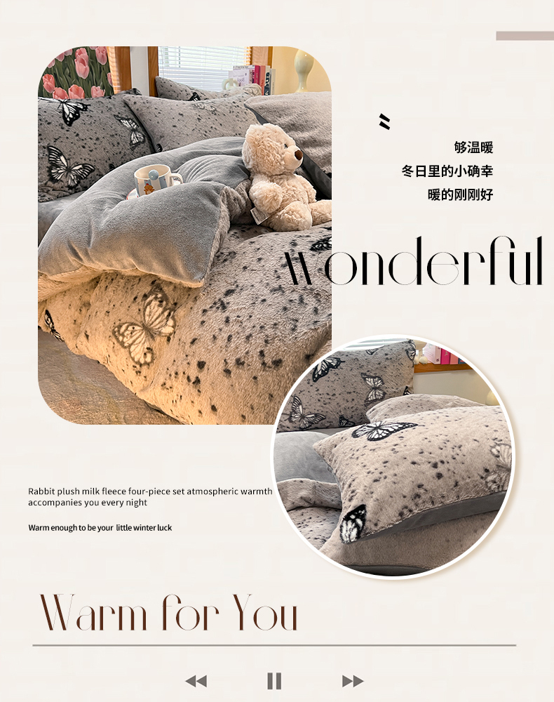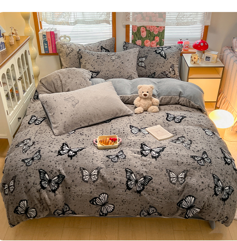 当前位置: 91家纺网 > 商品网购 > 床品套件 > 四件套 > 其它四件套 > 妖妖家纺 2025新款加厚印花兔毛绒保暖四件套 夏夜梦蝶