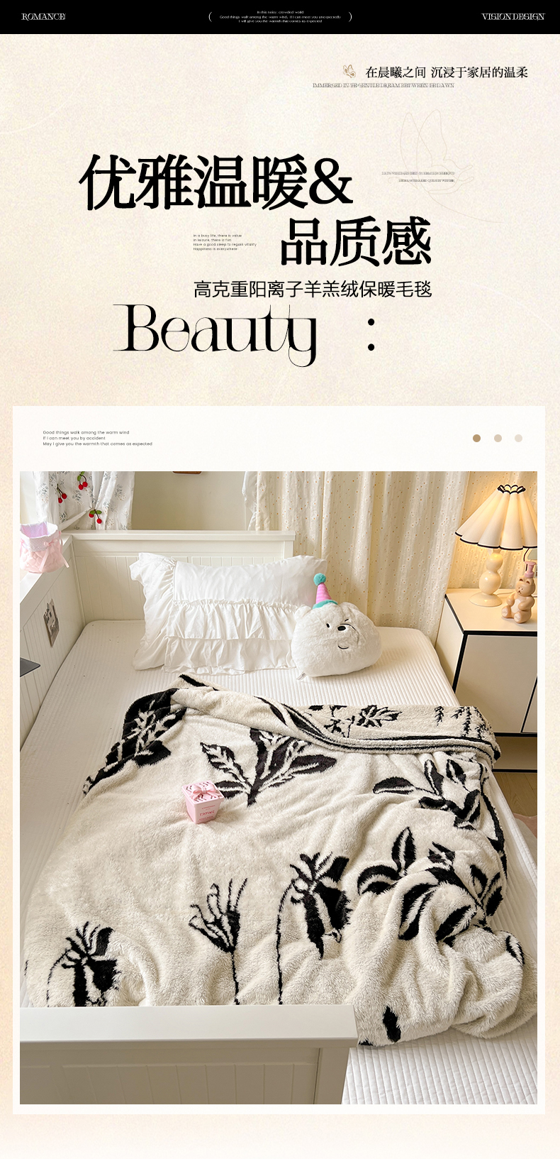 商品名称:妖妖家纺 2025新款高克重阳离子羊羔绒保暖双面毛毯 蕊间织梦
