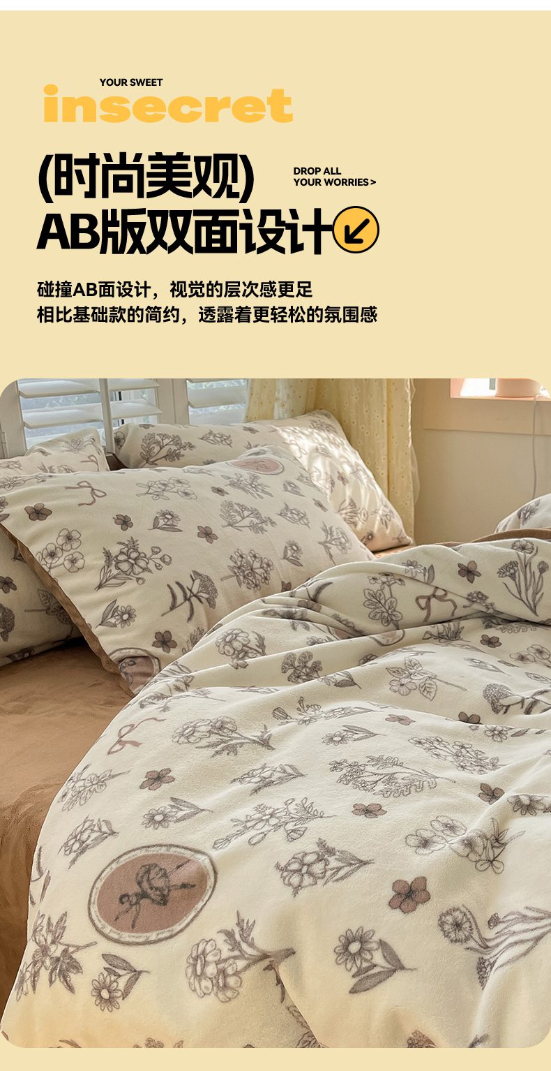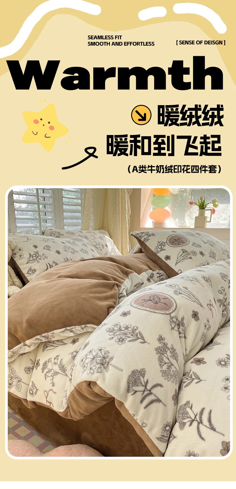 如约 2025新款印花牛奶绒四件套 芭提雅
