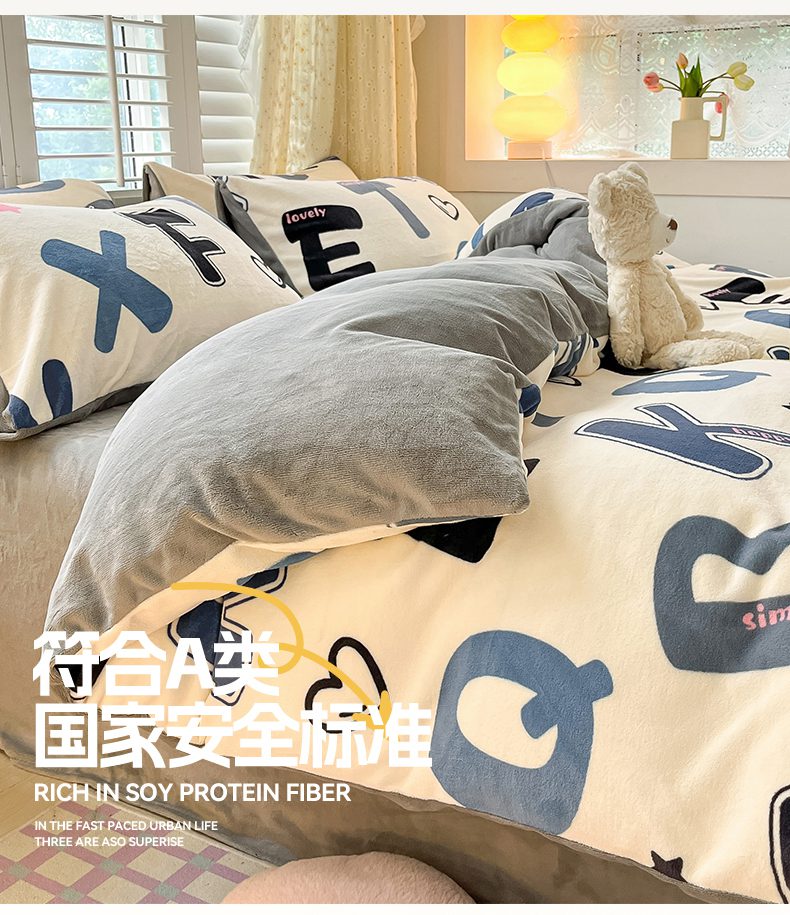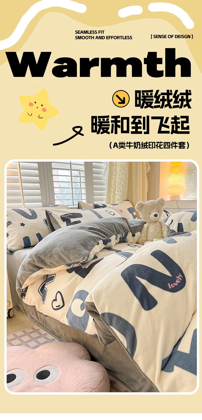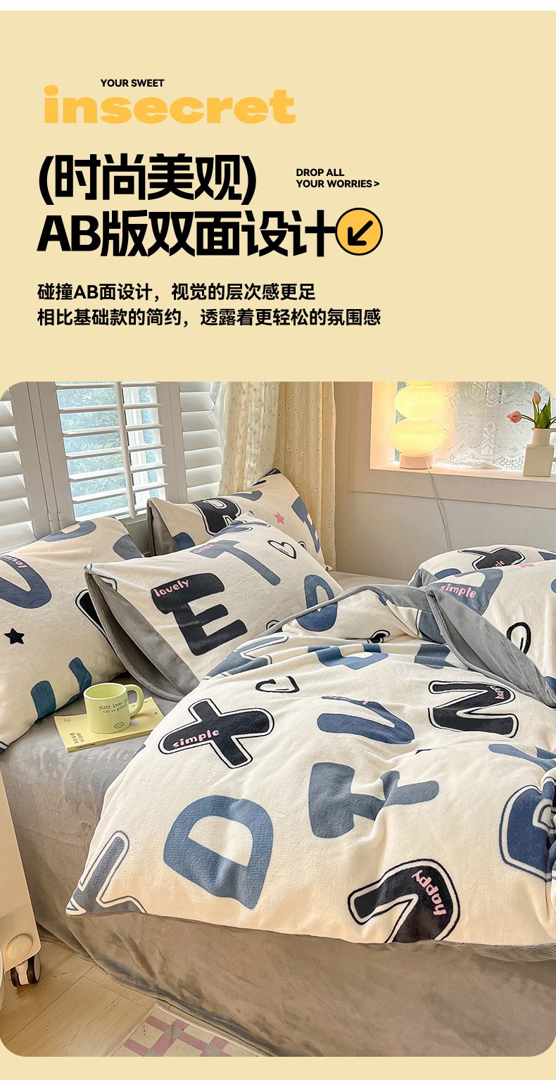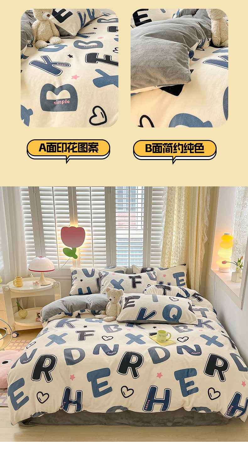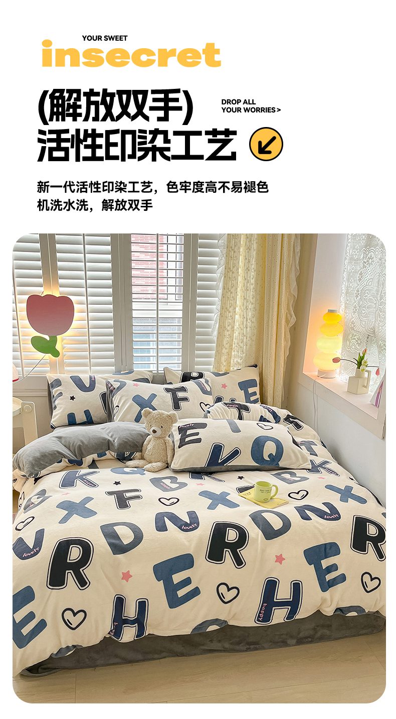 如约 2025新款印花牛奶绒四件套 字母组合-绒