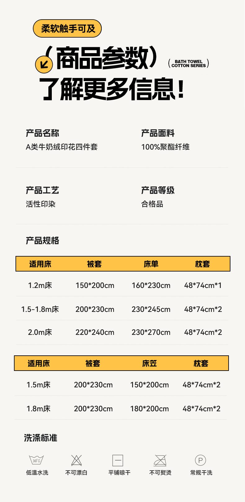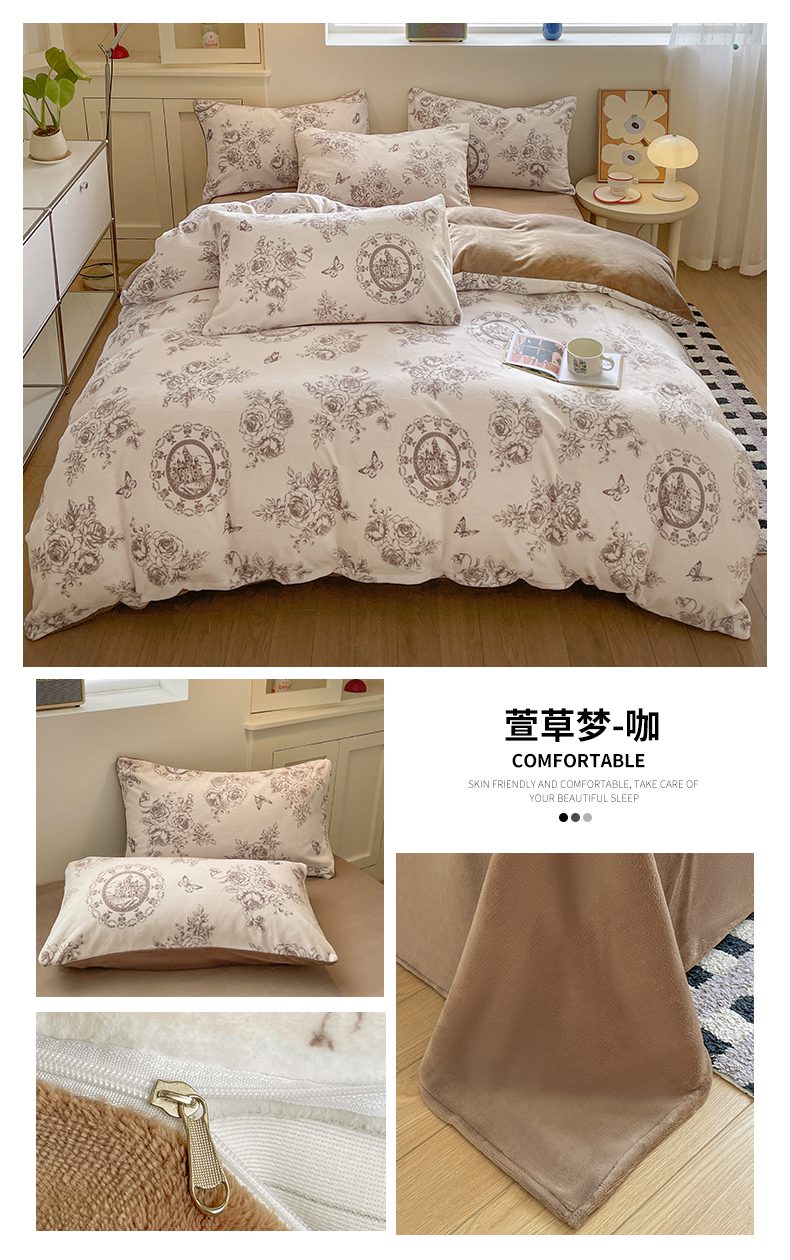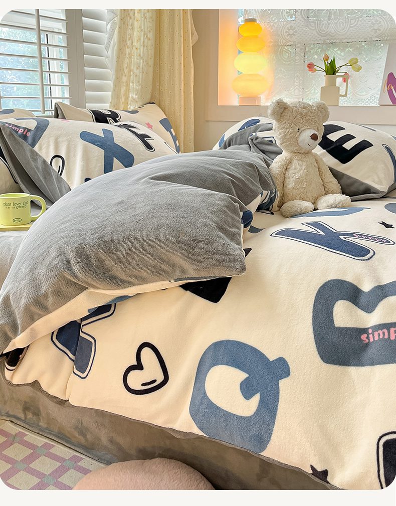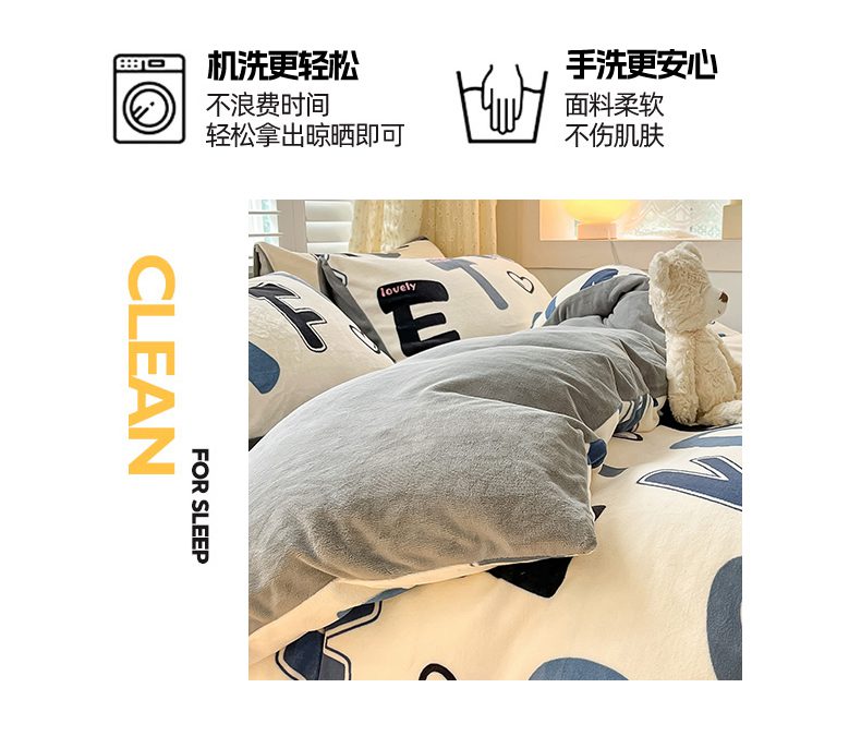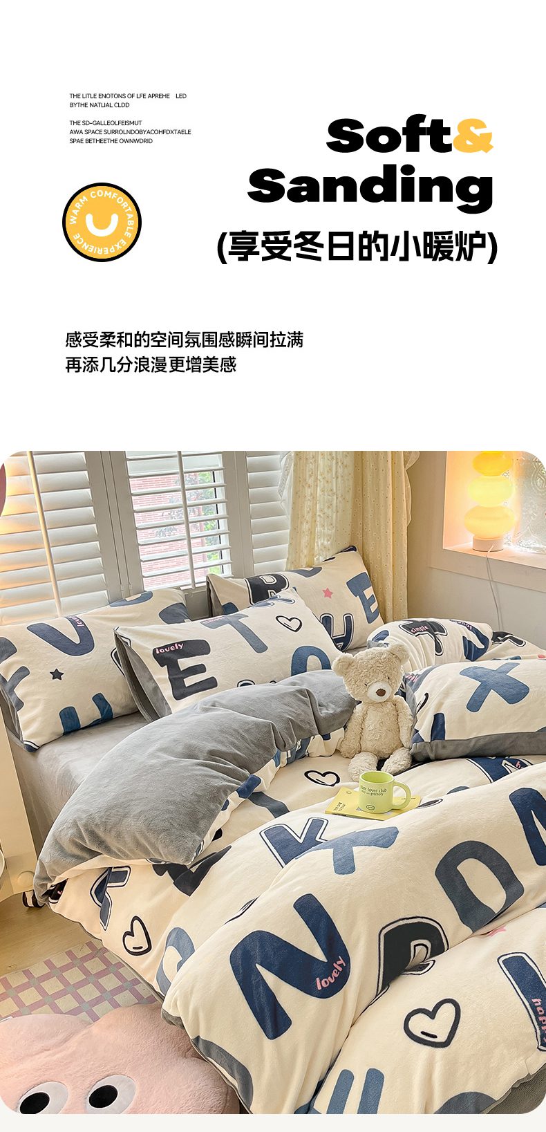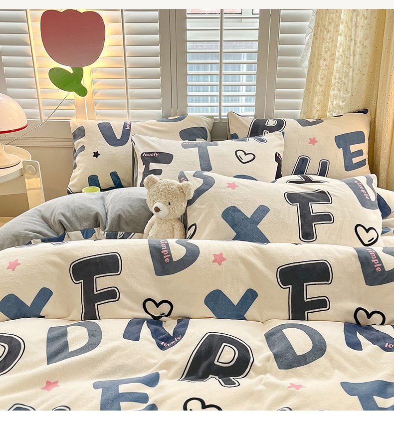 如约 2025新款印花牛奶绒四件套 字母组合-绒