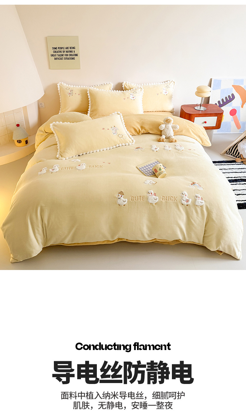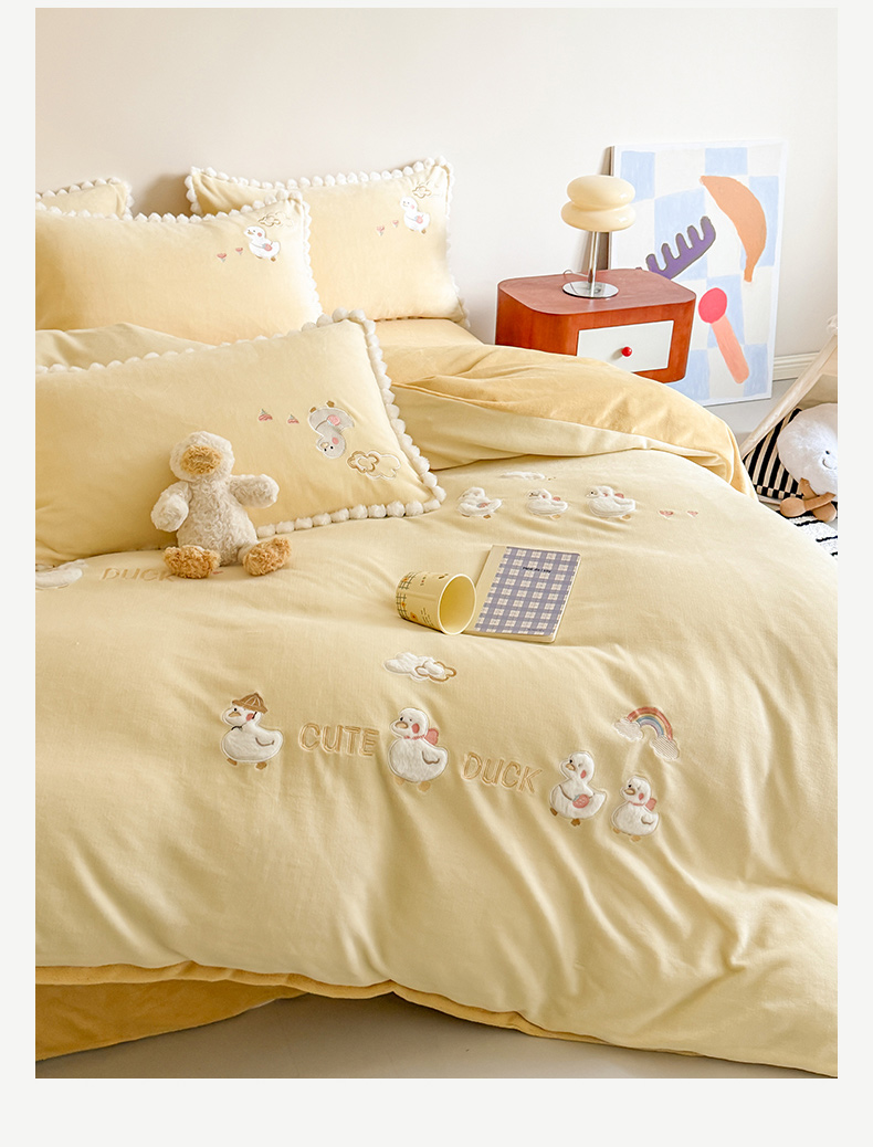 当前位置: 91家纺网 > 商品网购 > 床品套件 > 四件套 > 牛奶绒四件套 > (总)蜜柚 2025新款秋冬高克重全消光牛奶绒小清新卡通贴布四件套