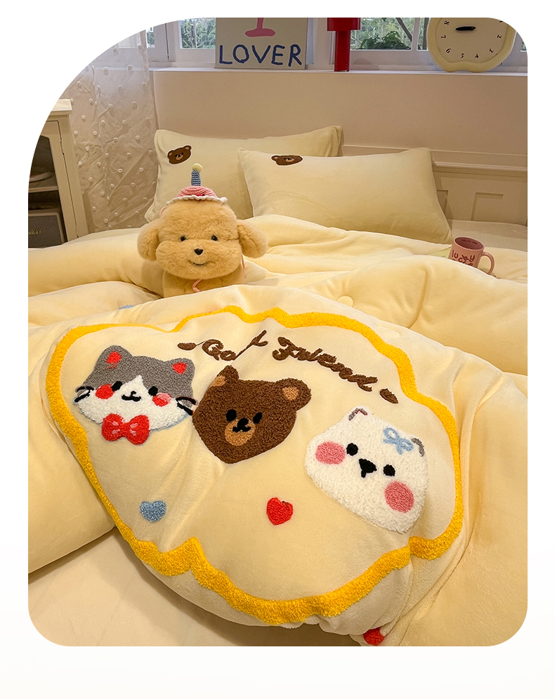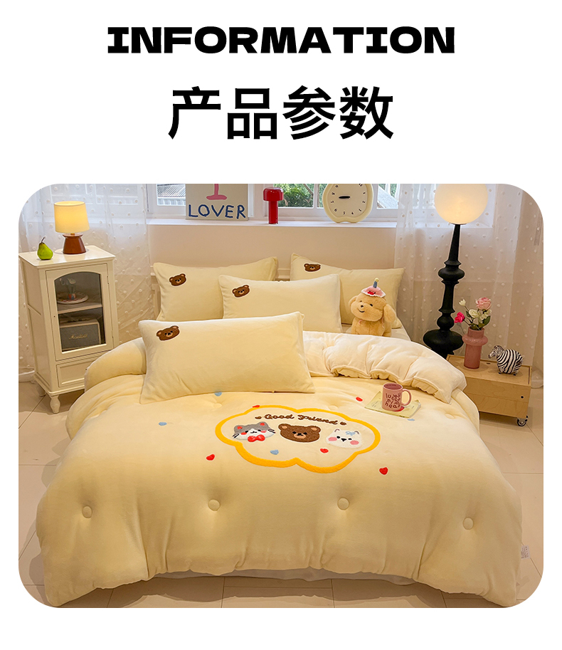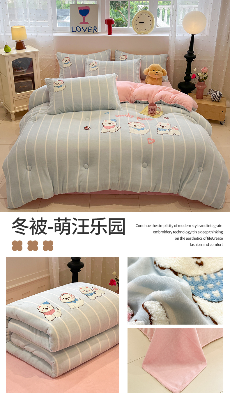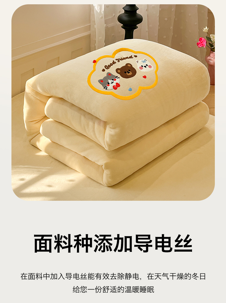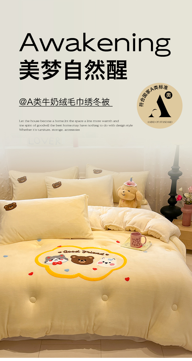 商品名称:星座家纺 2025新品牛奶绒毛巾绣冬被 被子被芯 冬被-萌宠奶油