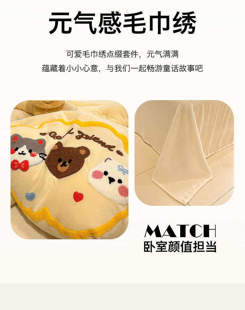 (总)星座家纺 2025新款A类卡通200g牛奶绒毛巾绣四件套,萌汪乐园,彩虹梦乡,春日漫游,粉糯猫咪,粉甜喵语,煤球精灵,萌宠奶油,企鹅伙伴,森林派对,甜心莓果,小狗暖居,小兔花漾