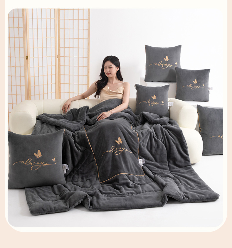 居家日用 > 靠垫/抱枕 > 照世家纺 2025新款蝶影相随牛奶绒多功能抱枕被(控价:不能低于以下:小79,中号99,大139,加大169,超大219.低于零售价的链接,一经发现直接投诉下架,感谢大家的支持) 蝶影相随-深灰