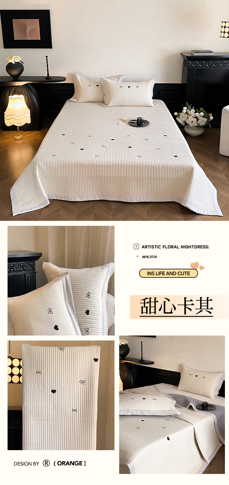 (总)由有家居 2025新品A类50S双股全棉磨毛绣花床盖三件套,樱桃丸子白,甜心灰,甜心卡其,晚意粉,晚意蓝,组合图,樱桃丸子米黄