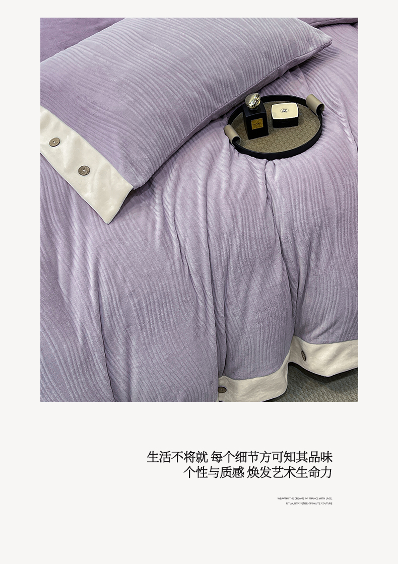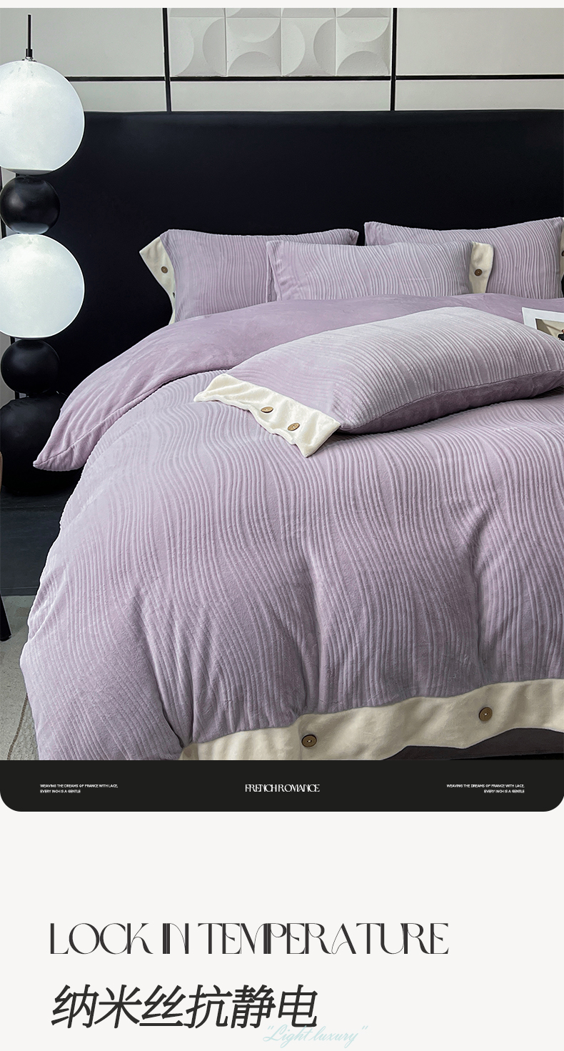当前位置: 91家纺网 > 商品网购 > 床品套件 > 四件套 > 牛奶绒四件套 > 锦彩家居 2025新款亲肤舒适高克重牛奶绒纽扣款四件套-简爱 纽扣款-罗兰紫