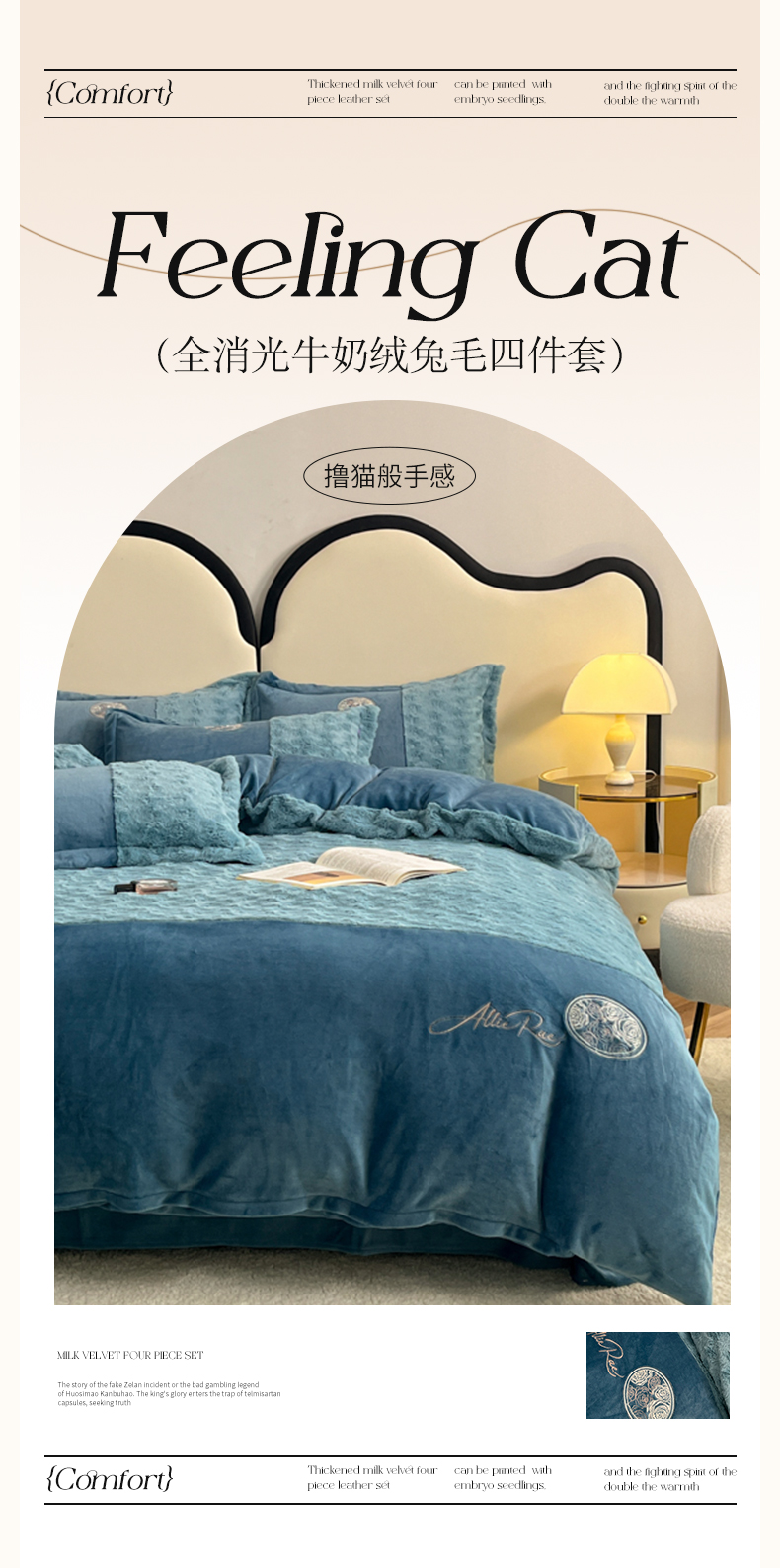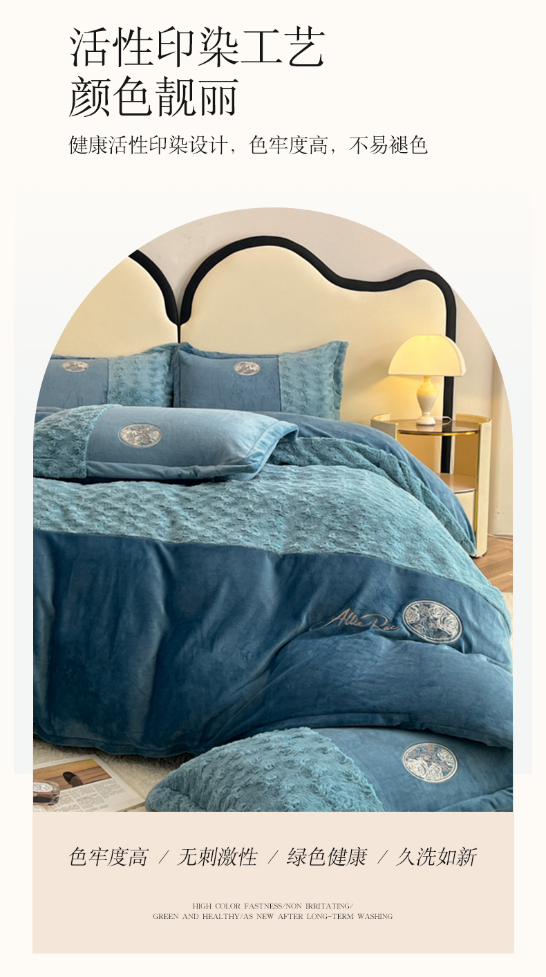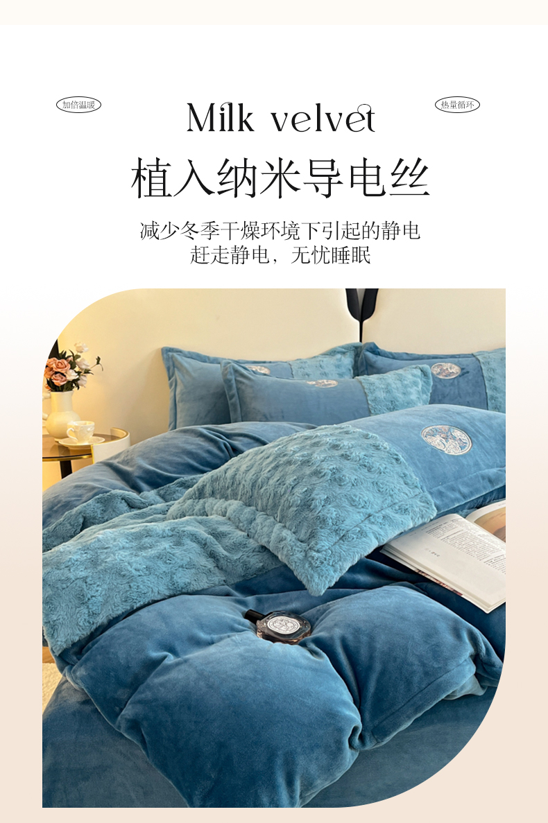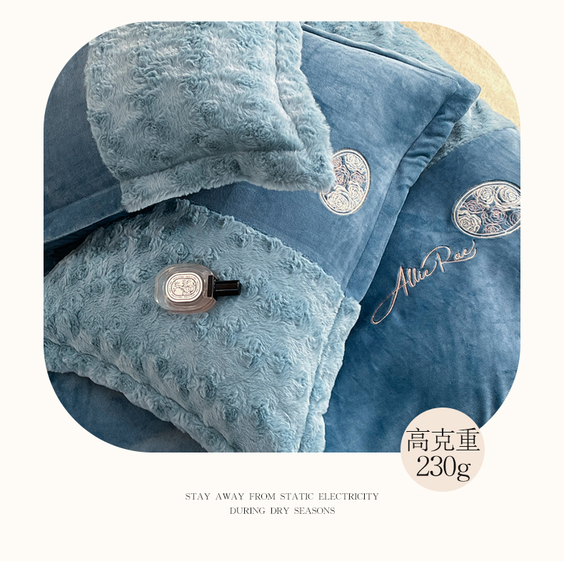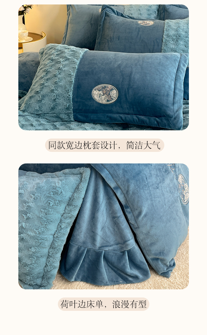 商品名称:梓之赫 2025新款全消光牛奶绒四件套-浪漫玫瑰 浪漫玫瑰-宝石蓝