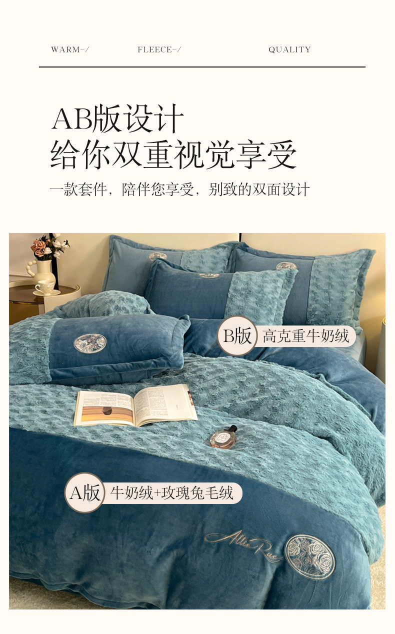 (总)梓之赫 2025新款保暖舒适牛奶绒印花夹棉床盖四件套,爱恋,豹纹,花盏-白,花盏-黑,眷恋,如约,心愿,约定