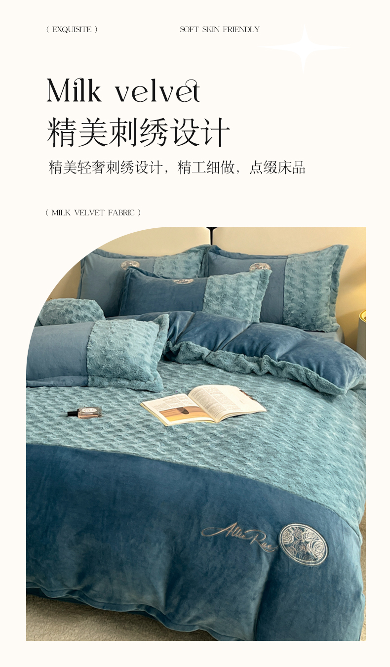 梓之赫 2025新款全消光牛奶绒四件套-浪漫玫瑰 浪漫玫瑰-宝石蓝