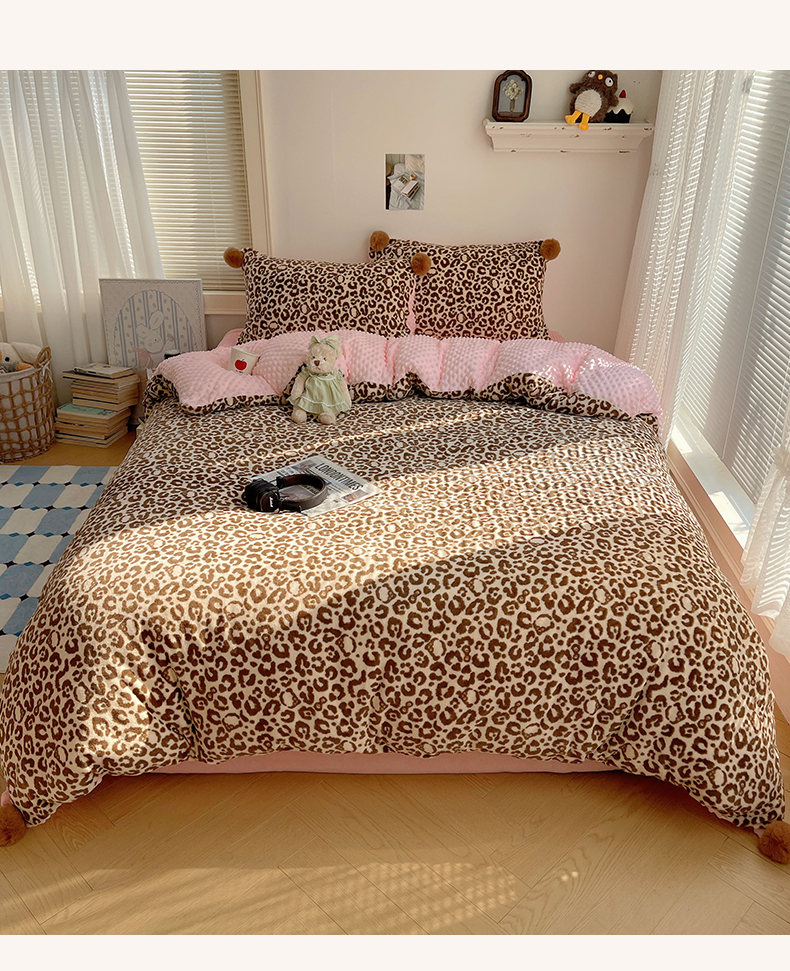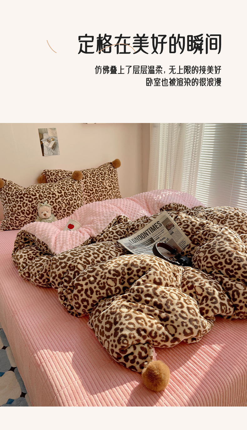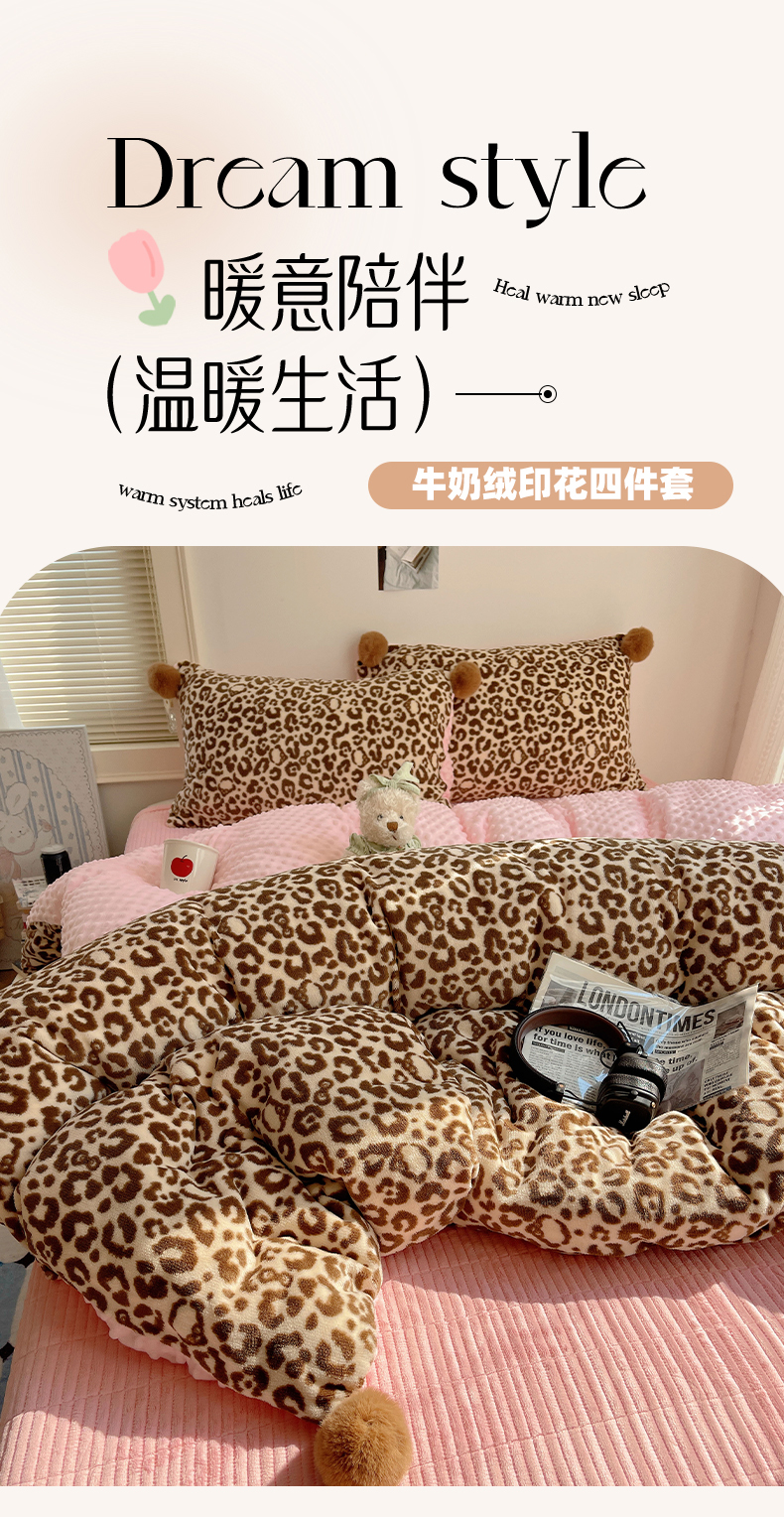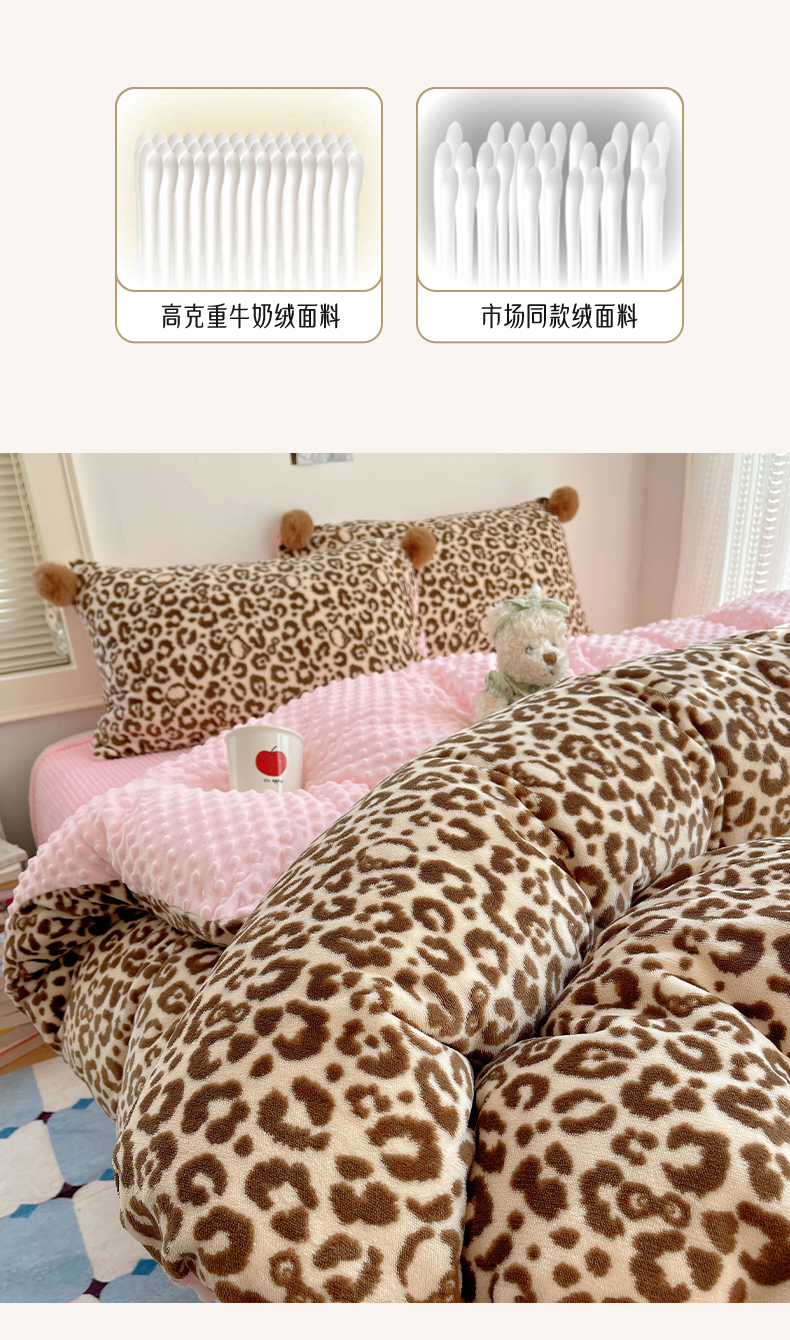 当前位置: 91家纺网 > 商品网购 > 床品套件 > 四件套 > 牛奶绒四件套 > 小叮当家纺仓储工厂店 买家秀 爆款花型2025新款高克重豆豆绒牛奶绒四件套泡芙感床盖套件直播热款 甜酷豹纹