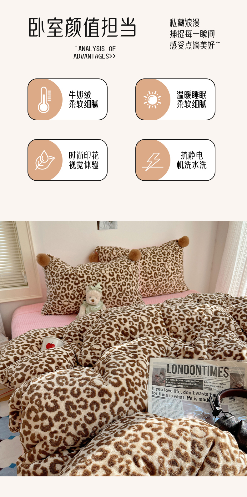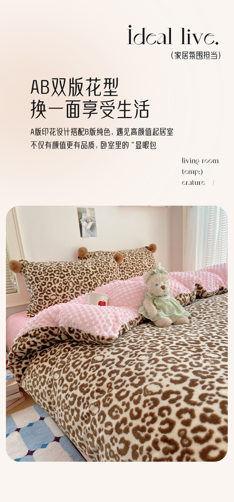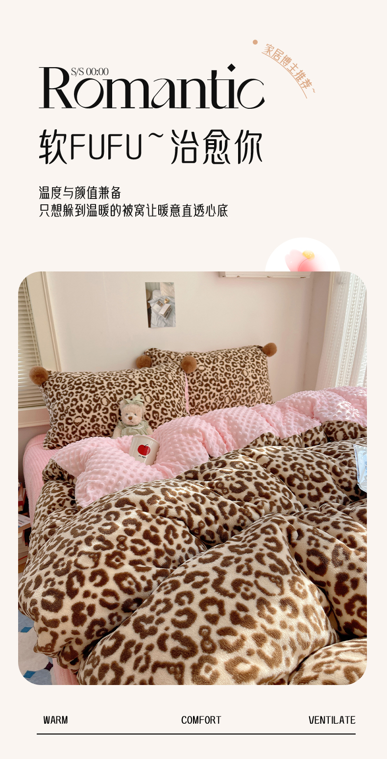 当前位置: 91家纺网 > 商品网购 > 床品套件 > 四件套 > 牛奶绒四件套 > 小叮当家纺仓储工厂店 买家秀 爆款花型2025新款高克重豆豆绒牛奶绒四件套泡芙感床盖套件直播热款 甜酷豹纹