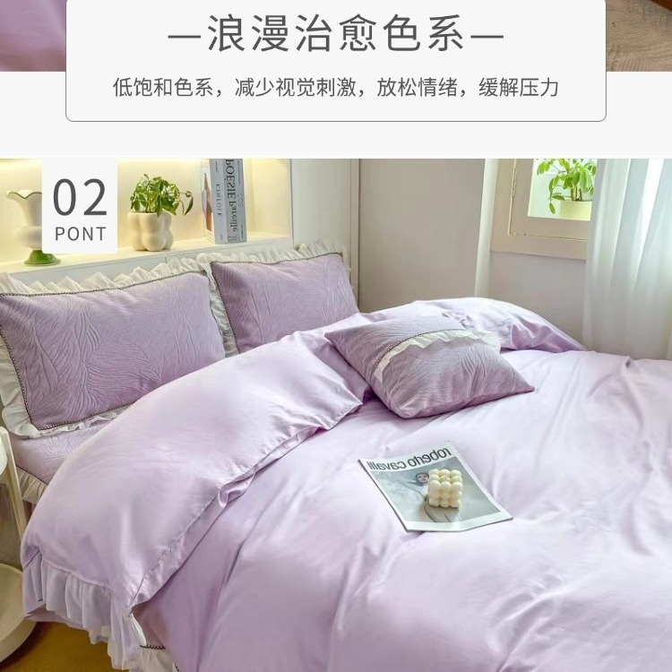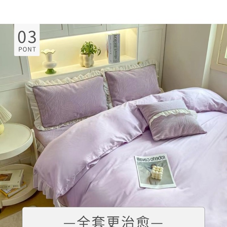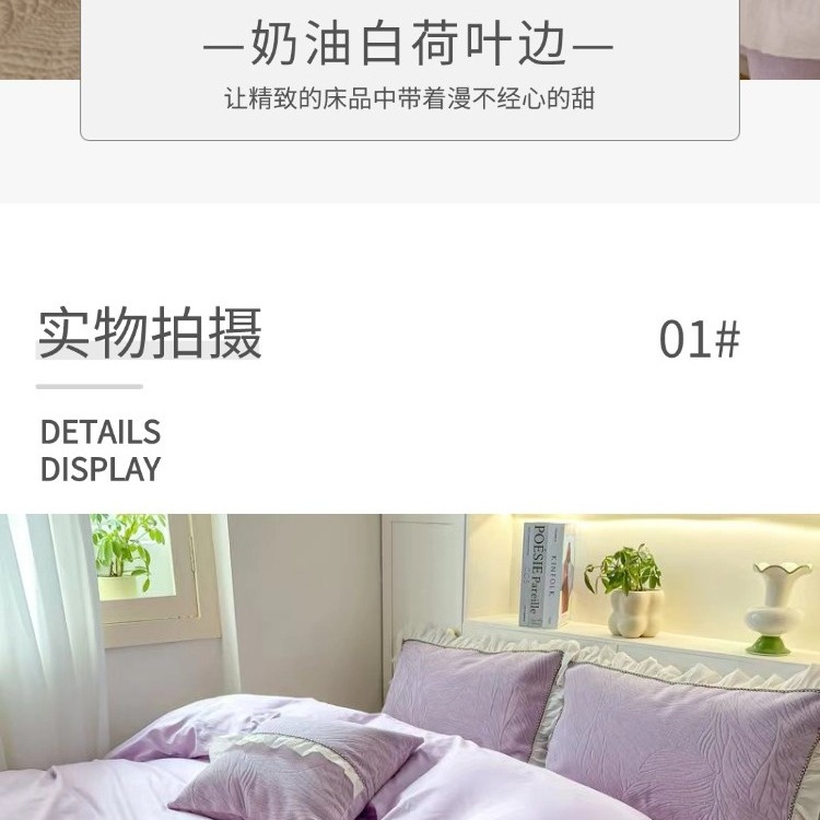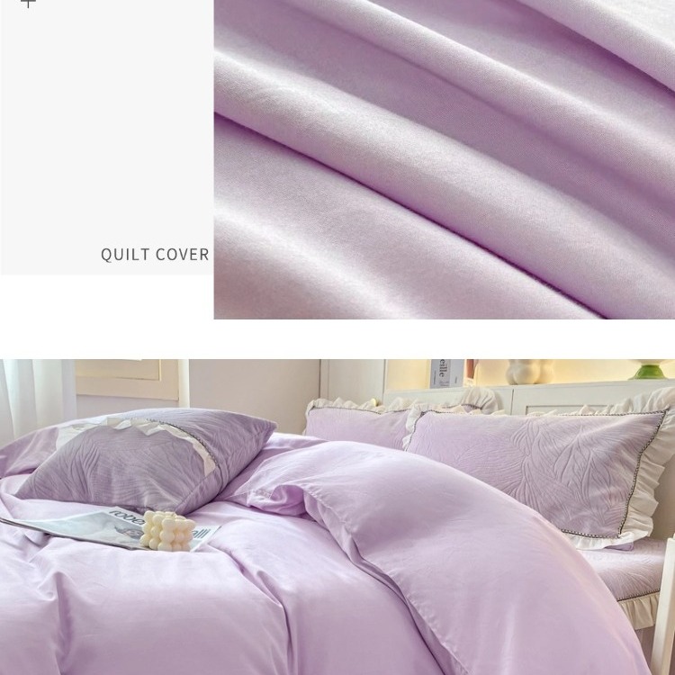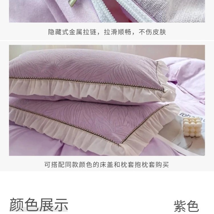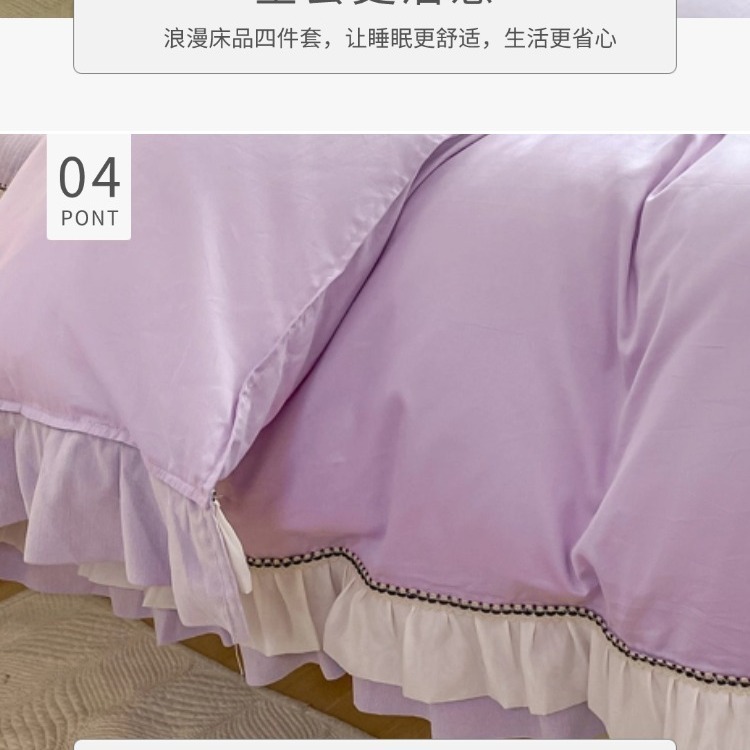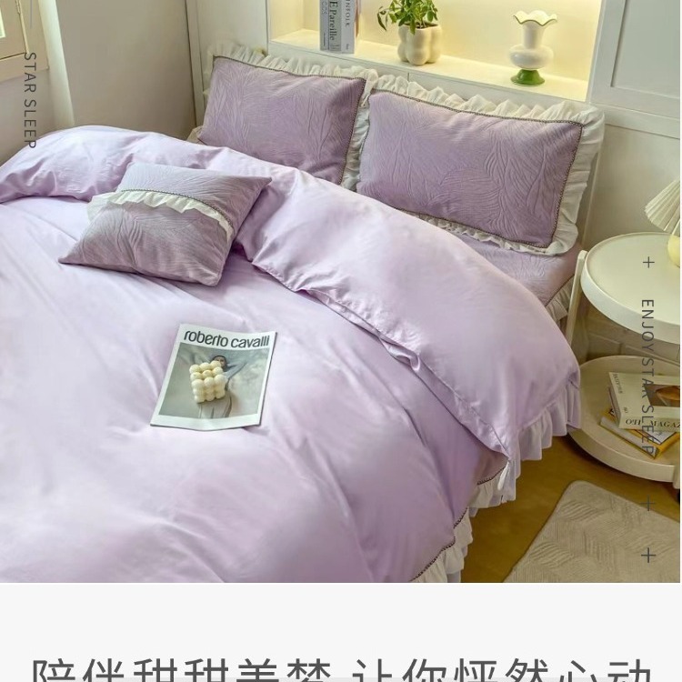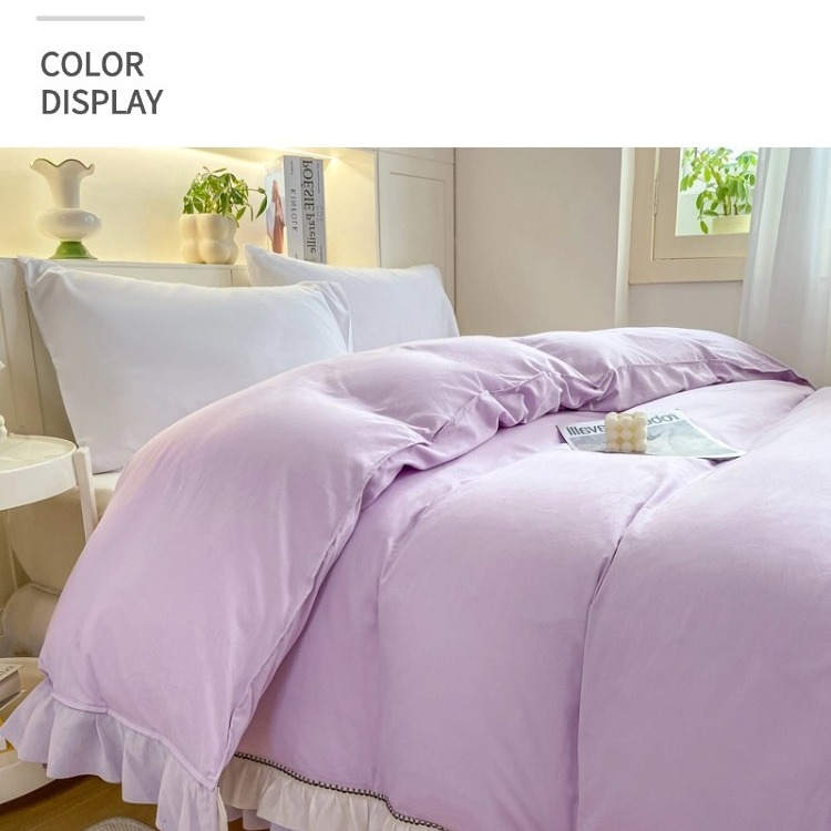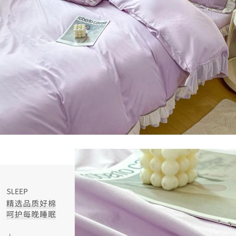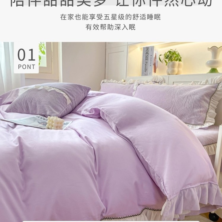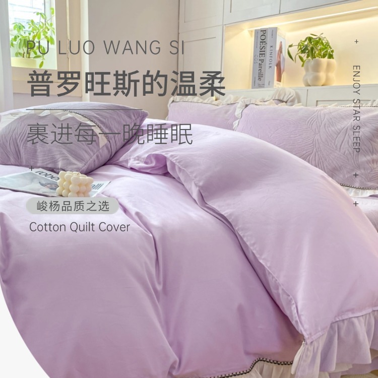商品名称:(总)峻杨 2025新款纯棉被罩亲肤裸睡简约风韩系公主风床上用品亲肤透气可搭配同款颜色床盖枕套-漫纱同款