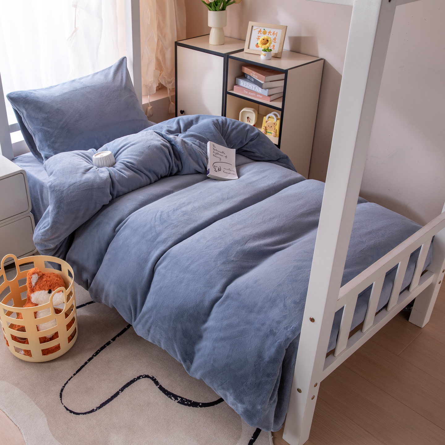 商品名称:凌云 2025新款A类230克加厚牛奶绒学生宿舍三件套床笠款床单款 星海蓝-绒