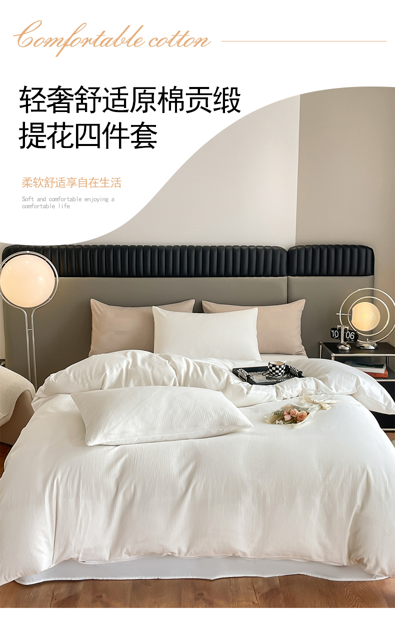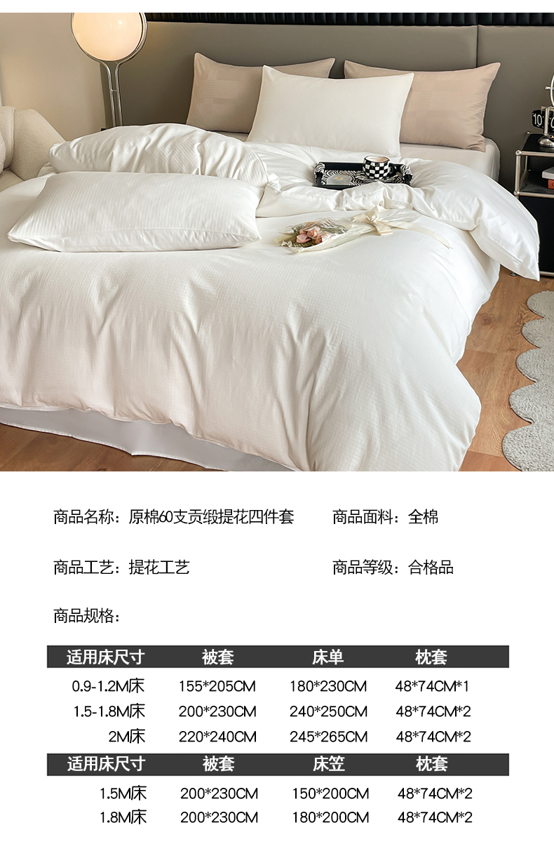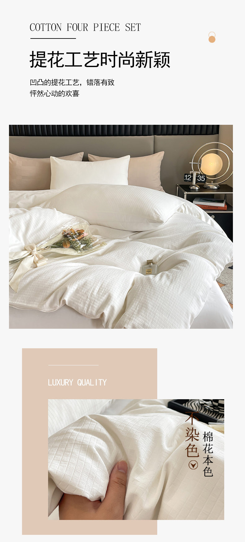 商品名称:琪格格纺织 2025新款纯棉轻奢大提花酒店名宿风家纺四件套 原棉小提花本白