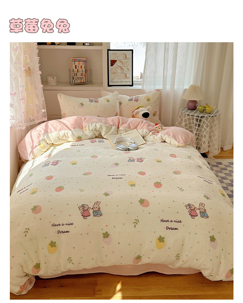 当前位置: 91家纺网 > 商品网购 > 床品套件 > 四件套 > 牛奶绒四件套 > 小叮当家纺仓储工厂店 买家秀 爆款花型2025新款200克牛奶绒小清新卡通复古风四件套 彩虹草莓